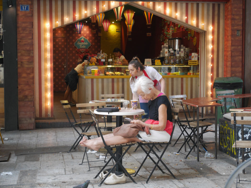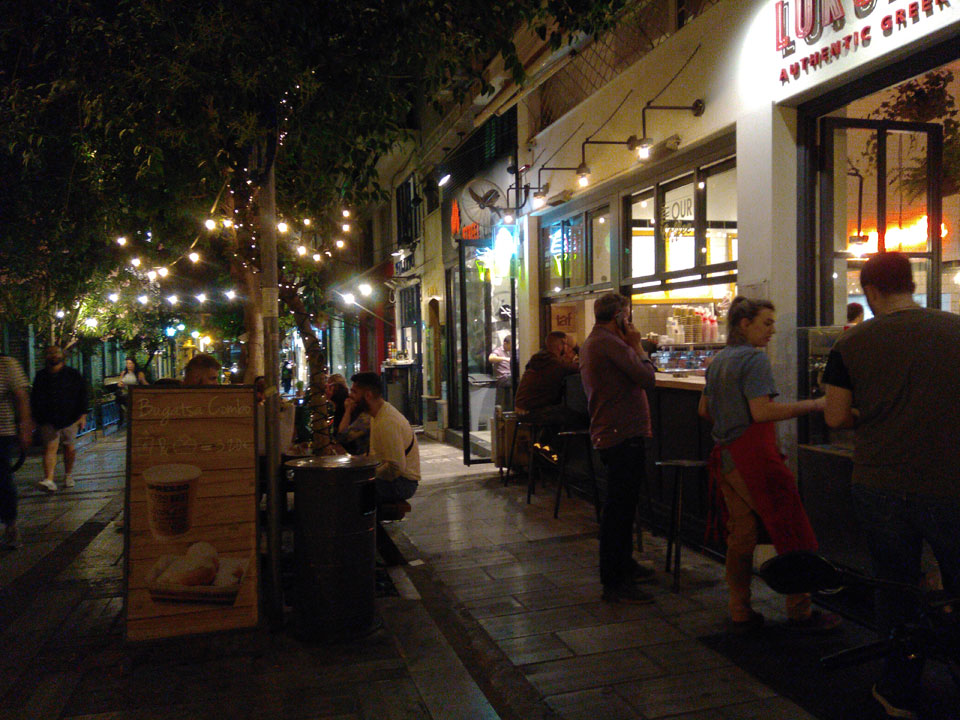Das Nachtleben zum Dienstag war zu ruhig. Ich hatte zwar keinen Hunger, aß dann aber doch im „Just Pita“ + Bier = €8. Im nahen „six d.o.g.s“ saßen Leute nur zu Drinks. Woanders schien es auch eher um Abendessen und Drinks im Sitzen zu gehen. Trotzdem ganz nett alles.