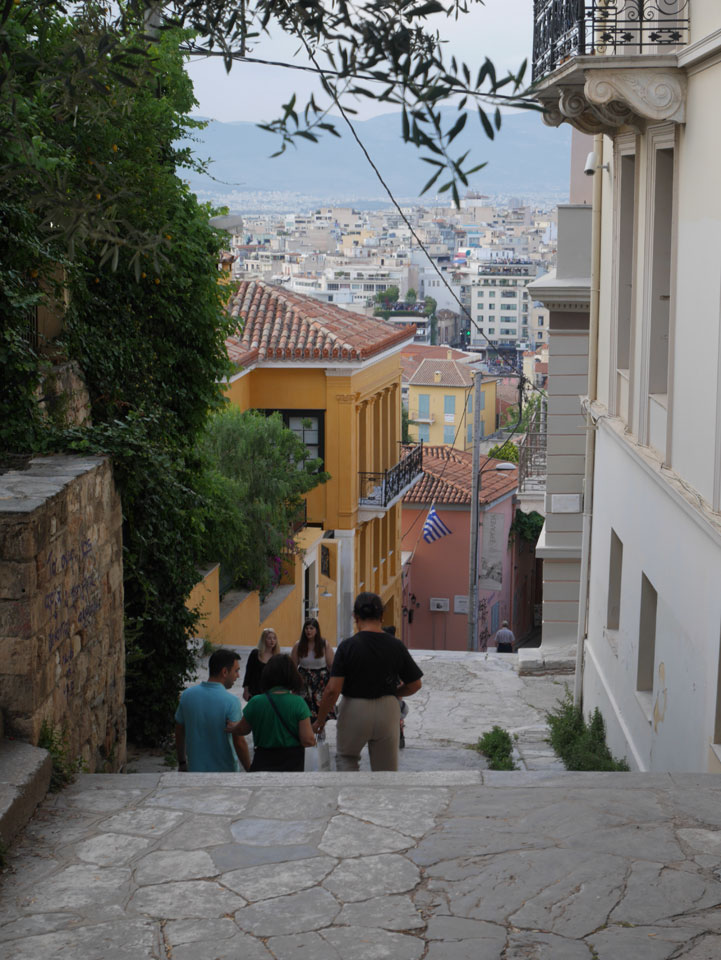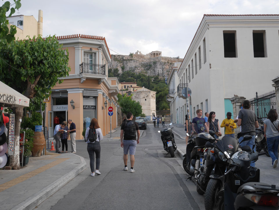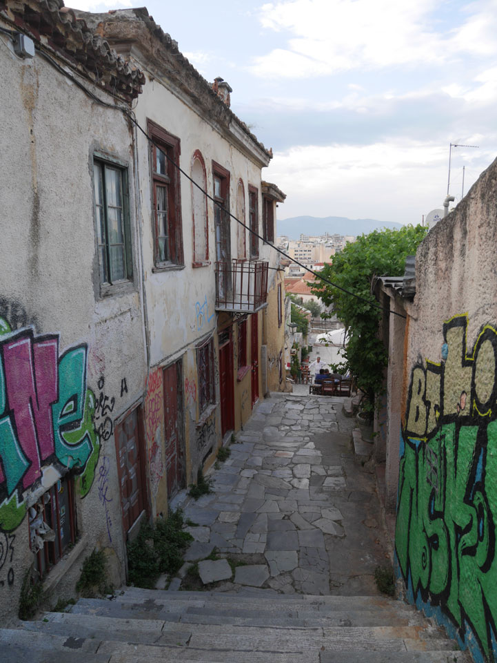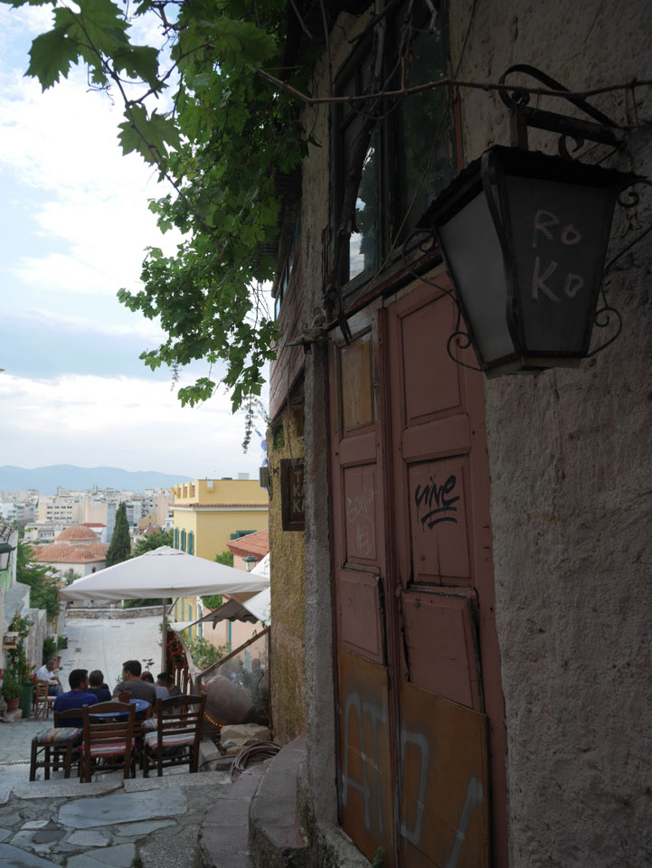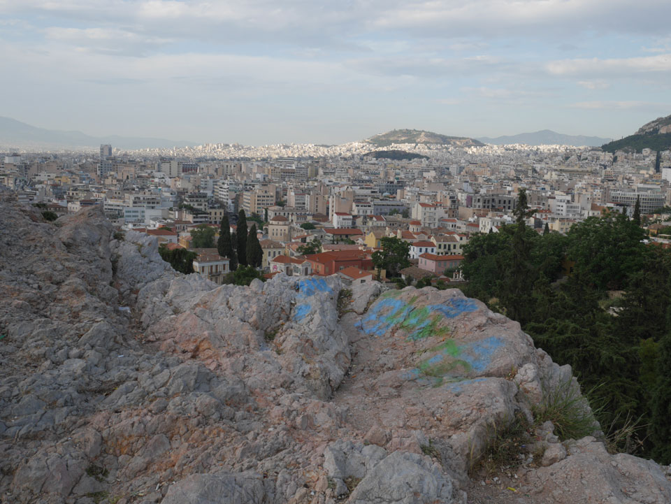 Bis ich wieder auf die Beine kam, war es fast Abends. Zufällige Abstecher in kleine Gassen brachten neue Eindrücke von Athen. Die Runde um die Akropolis endete wieder am Hügel. Man kann in Athen ganz gut spazieren.