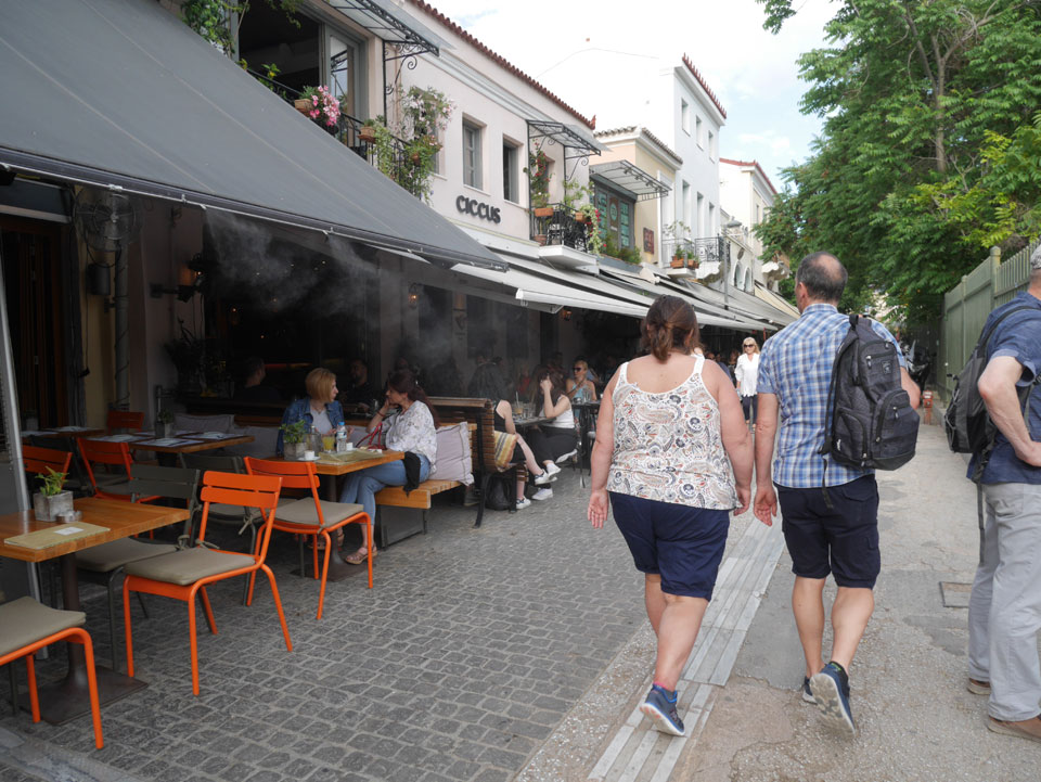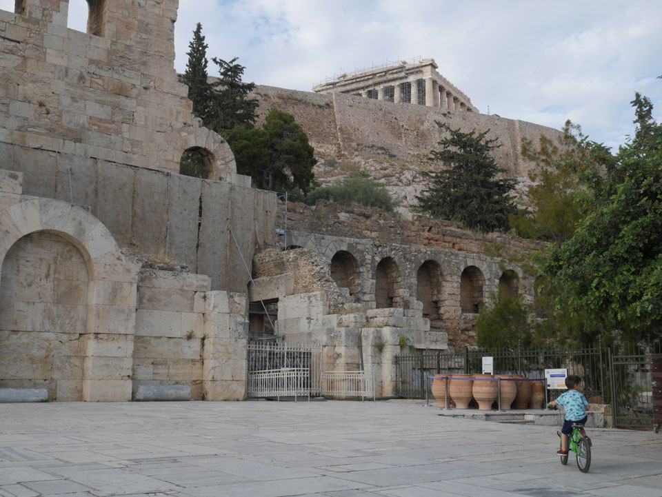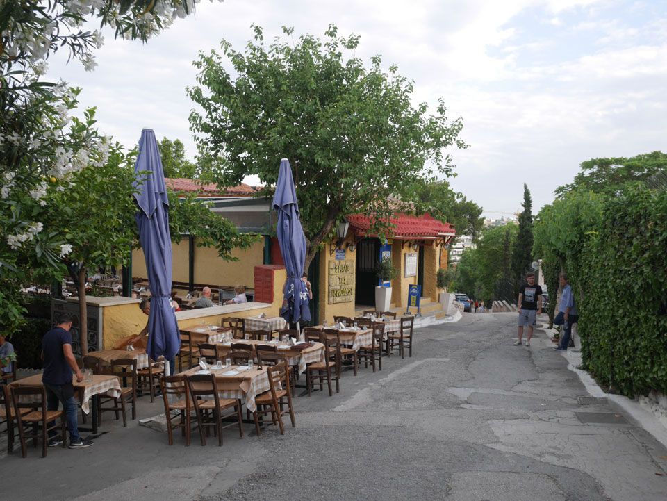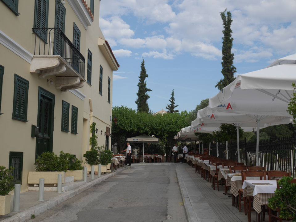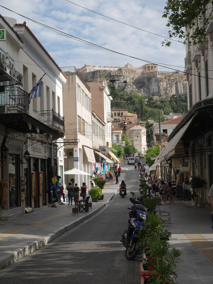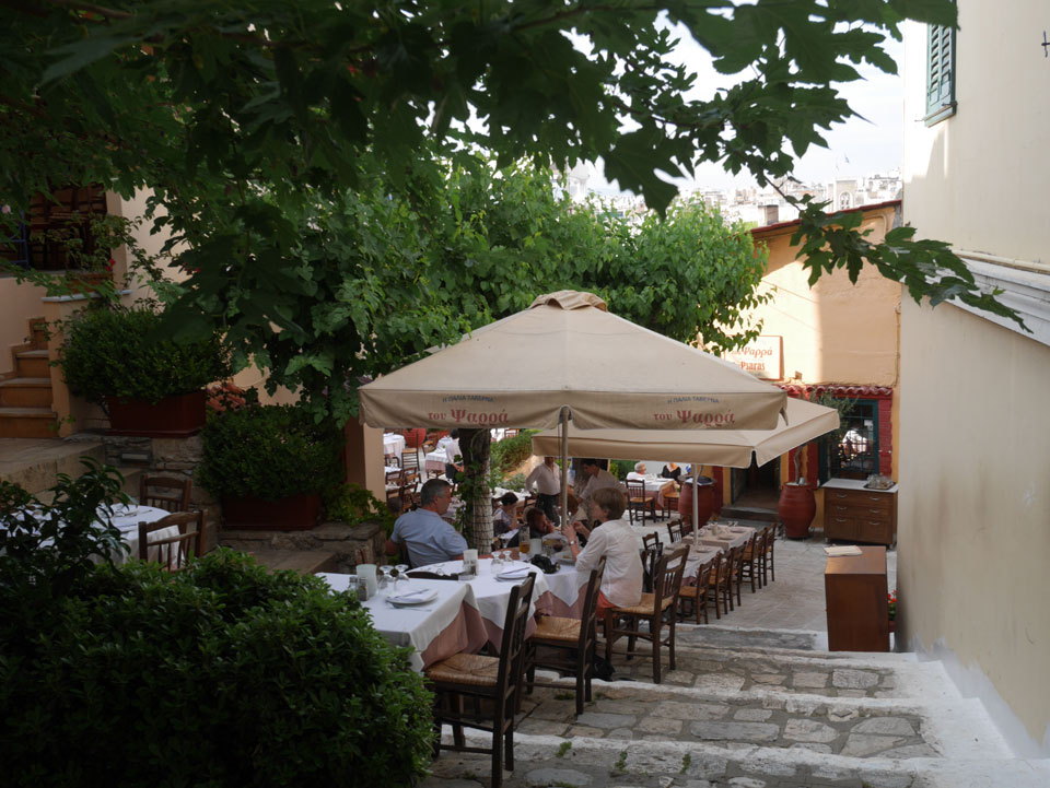 Bis ich wieder auf die Beine kam, war es fast Abends. Zufällige Abstecher in kleine Gassen brachten neue Eindrücke von Athen. Die Runde um die Akropolis endete wieder am Hügel. Man kann in Athen ganz gut spazieren.