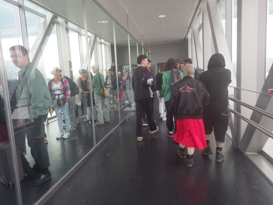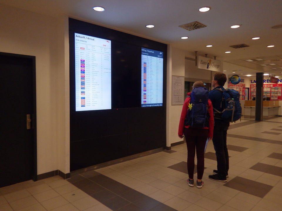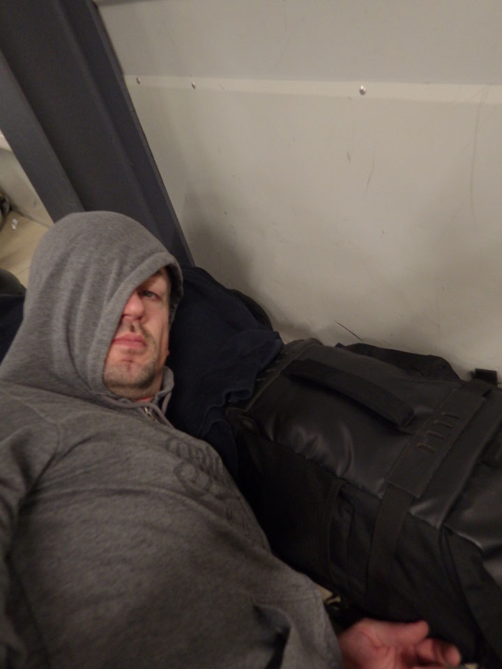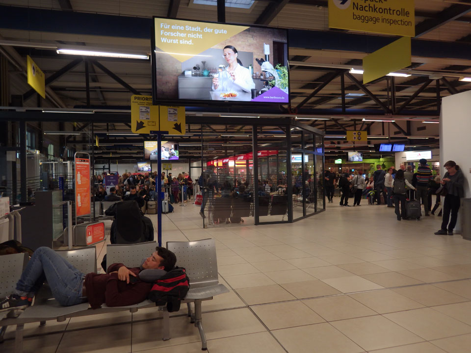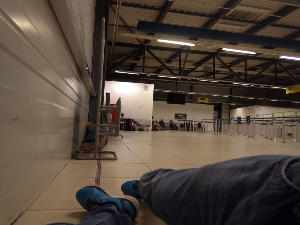 Nachts auf Schönefeld war wenigstens etwas Ruhe. Ich lag mit anderen Zombies herum, hatte mir mit meinem Gepäck einen halbwegs akzeptables Schlafplatz gebaut. Noch 3-4 Stunden im Slum-Modus.