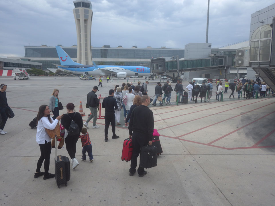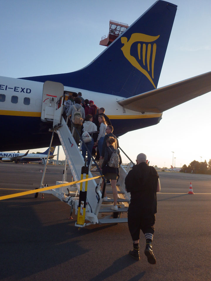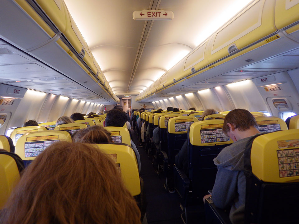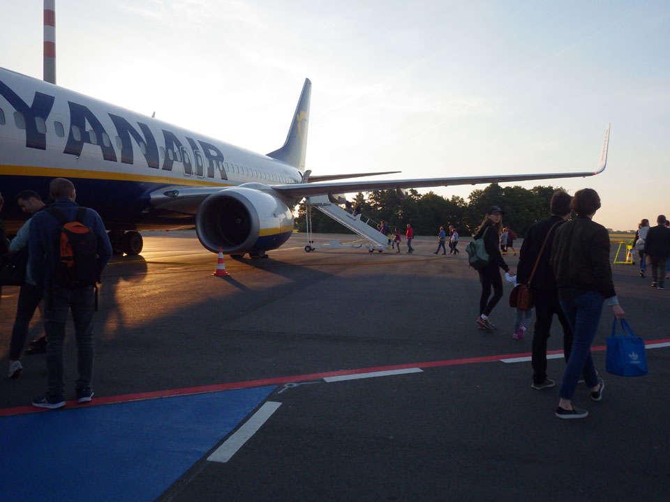 Ich wachte dann nach 4 langsam auf, alles andere als wach. Der Flughafen hatte sich inzwischen gefüllt. Viele Leute auch beim Boarding von Ryanair. Vor mir war ein Paar, wobei der Mann zwei Trollies + noch eine Handtasche hatte. Das wurde natürlich von einer Ryanair-Frau bemängelt aber er kam damit echt durch, statt €50 extra zu zahlen.
