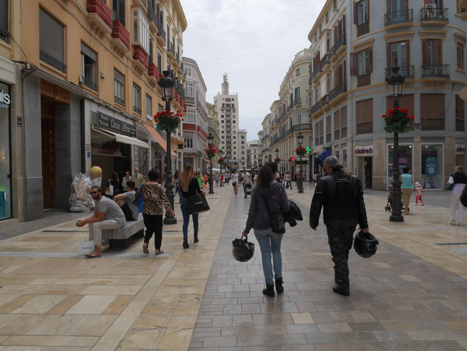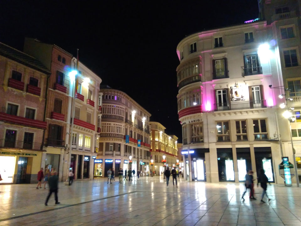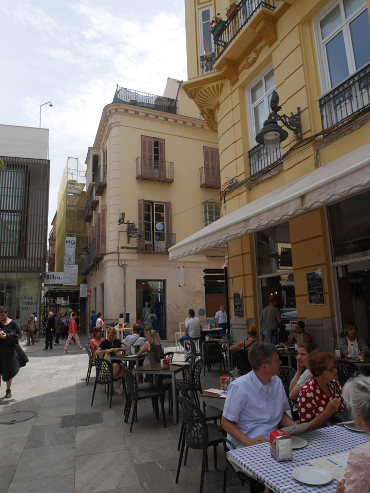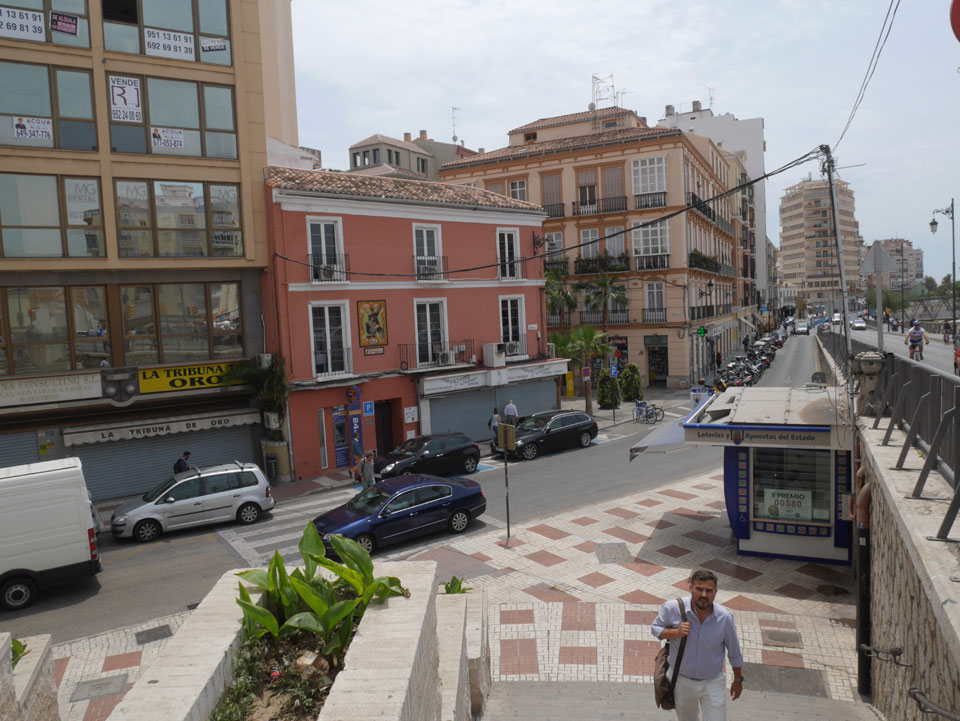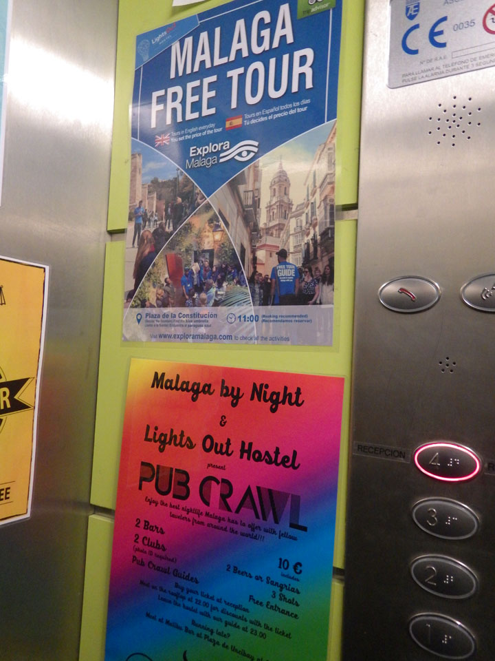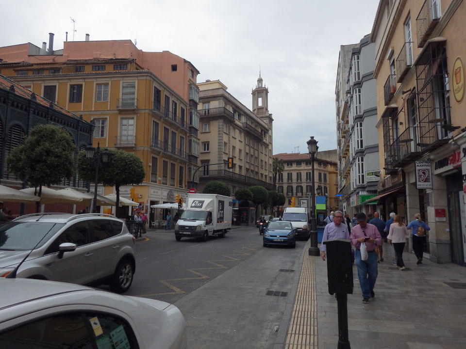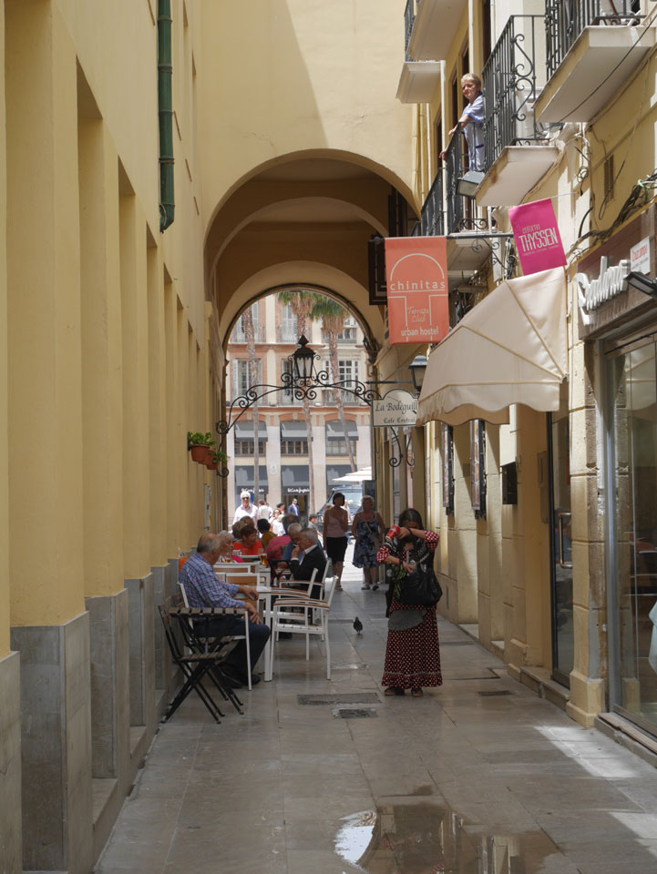 Lockerer Flug und dann in Malaga etwas von der Größe des Flughafens überrascht. Der Bus in die Stadt (€3) war auch schnell voll. Ich kam in die Nähe meines „The Lights“ Hostels, fand es schließlich und konnte sogar noch frühstücken (€1,50). Einchecken aber erst Nachmittags also drehte ich eine kleine Runde durch die Stadt.