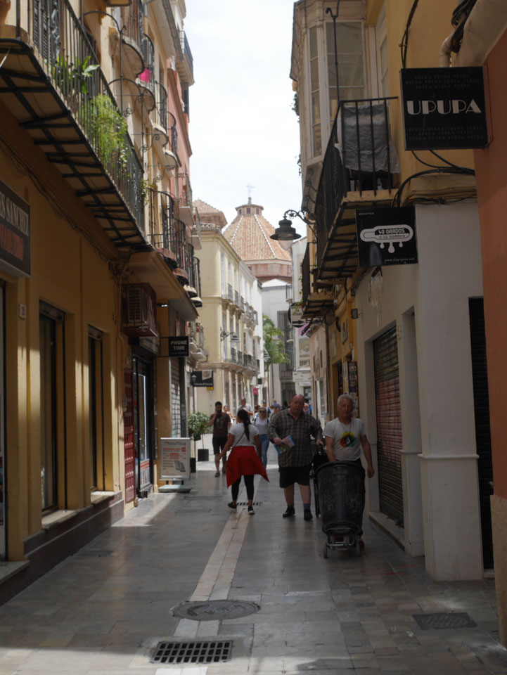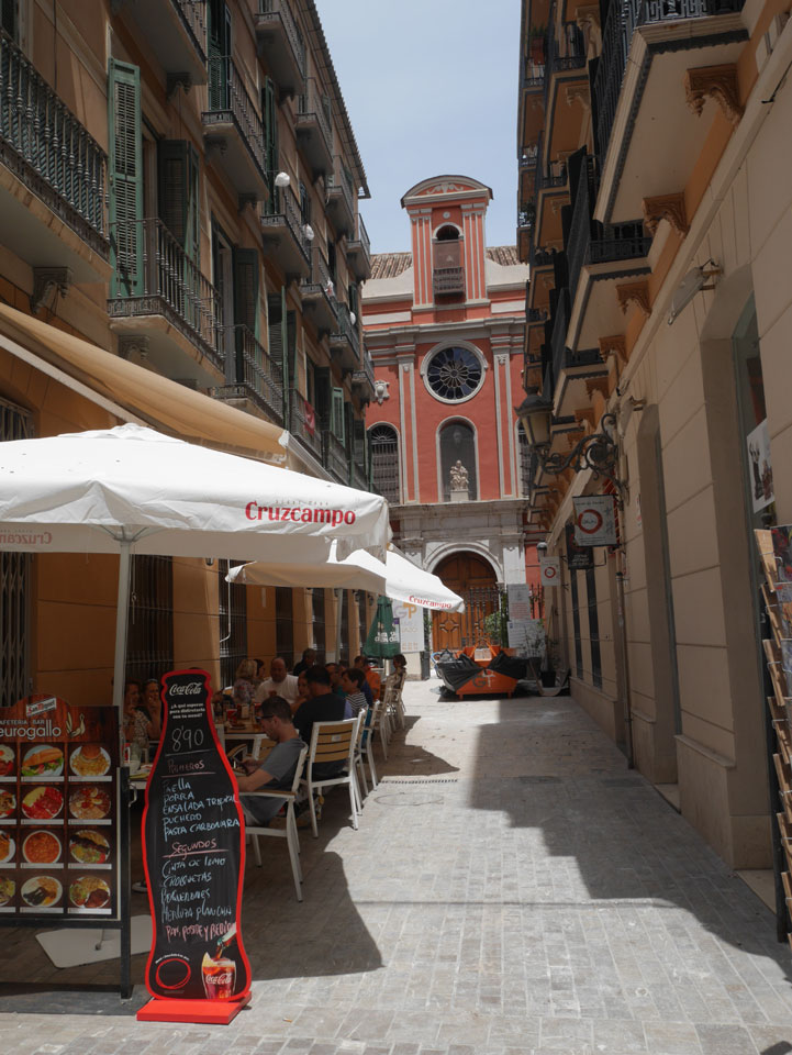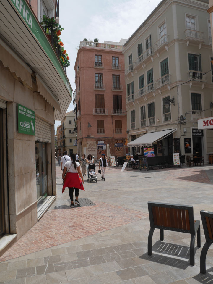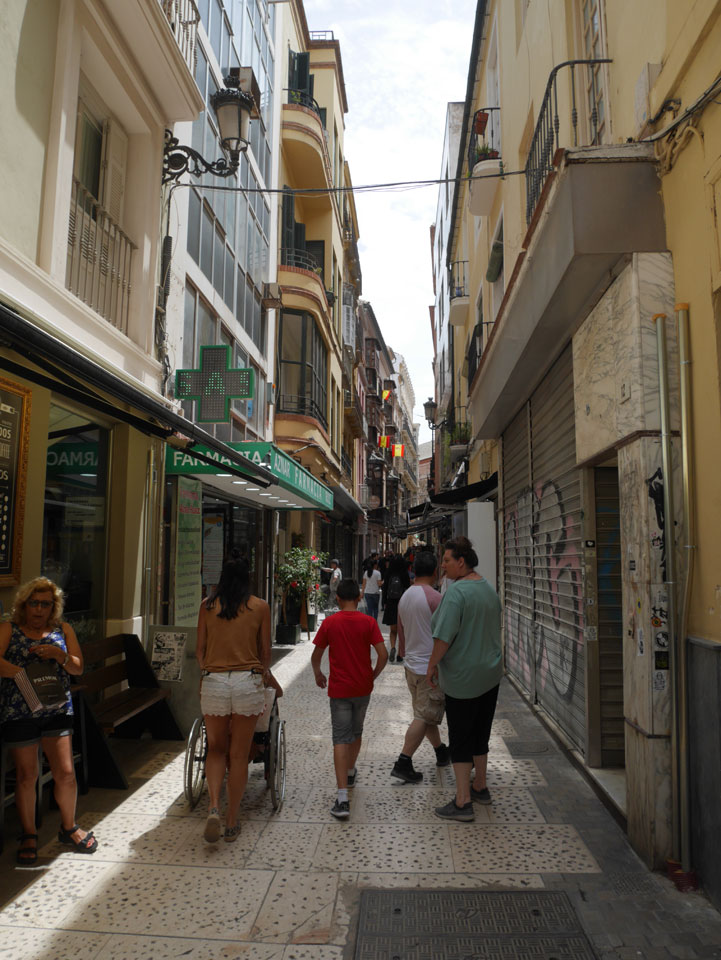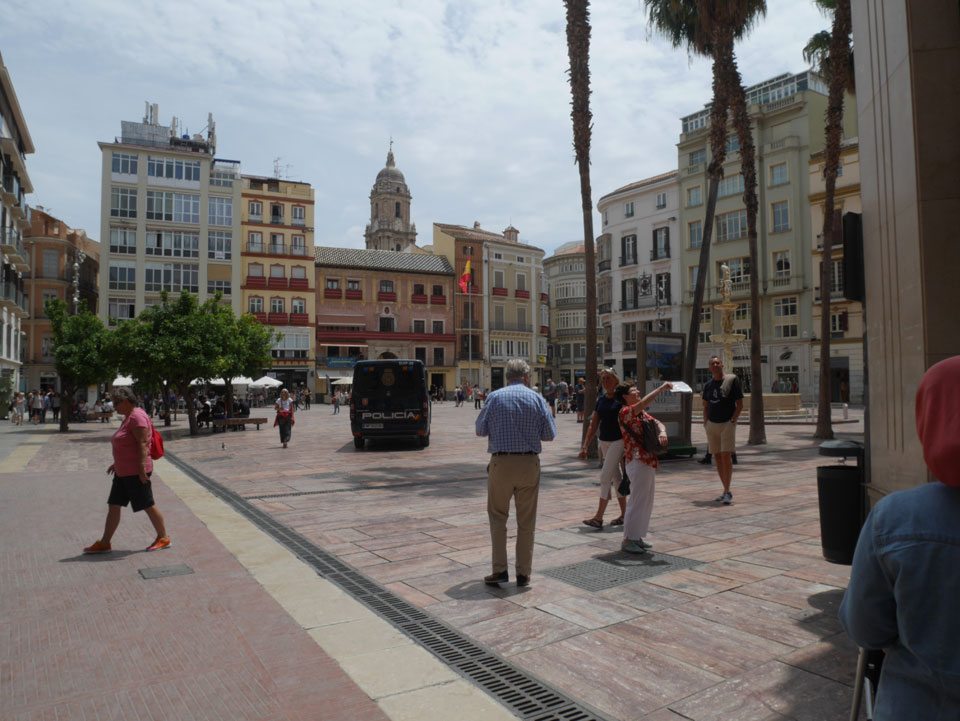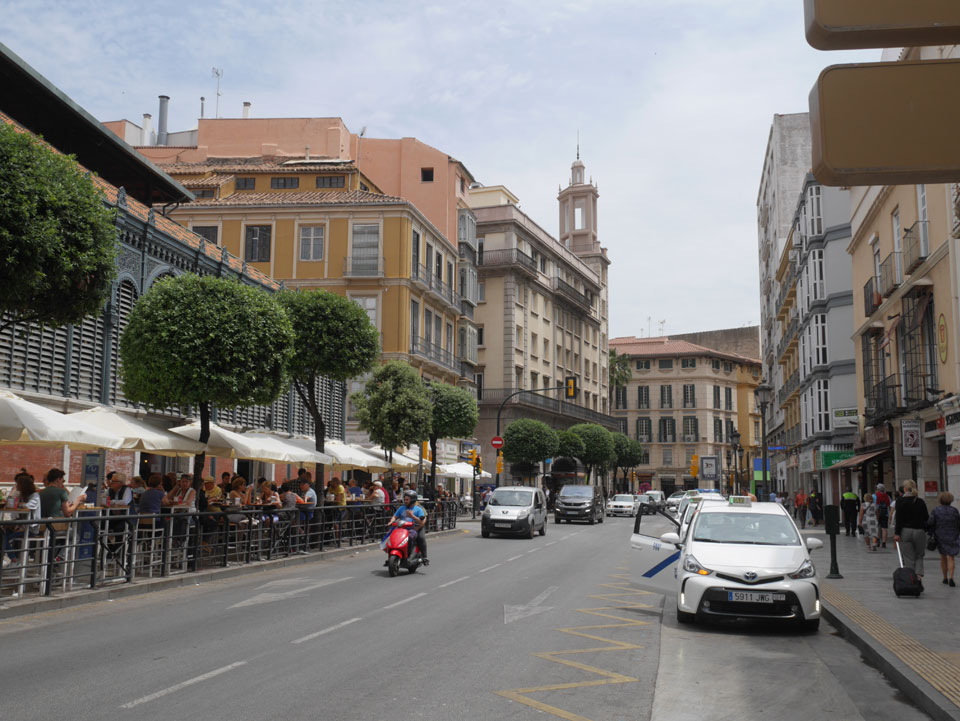 Lockerer Flug und dann in Malaga etwas von der Größe des Flughafens überrascht. Der Bus in die Stadt (€3) war auch schnell voll. Ich kam in die Nähe meines „The Lights“ Hostels, fand es schließlich und konnte sogar noch frühstücken (€1,50). Einchecken aber erst Nachmittags also drehte ich eine kleine Runde durch die Stadt.