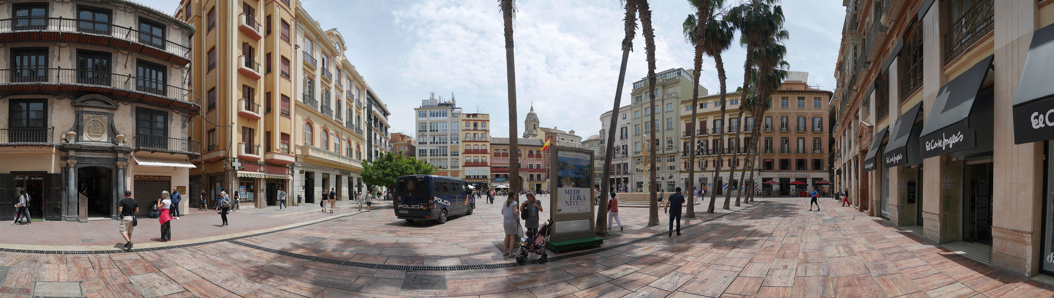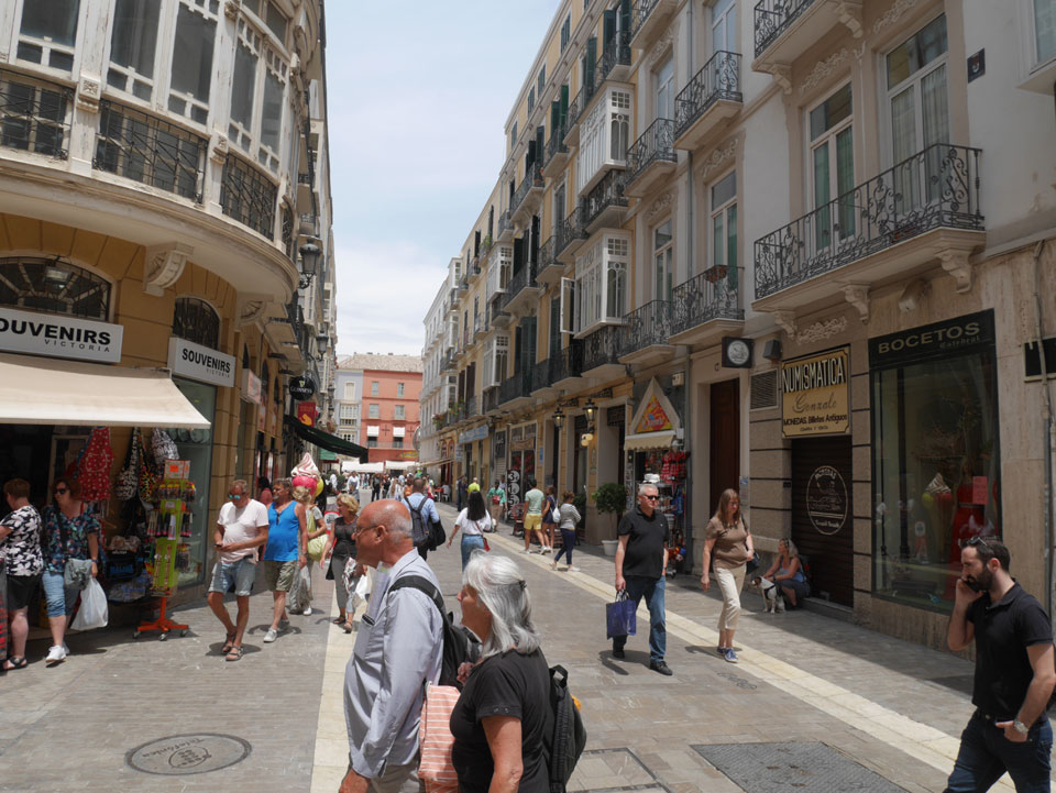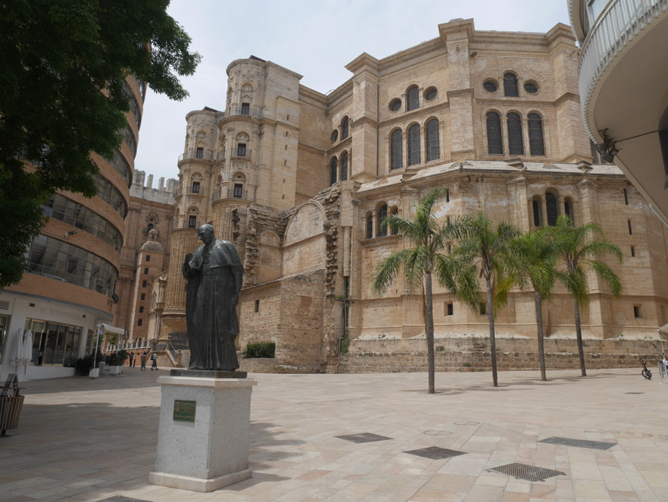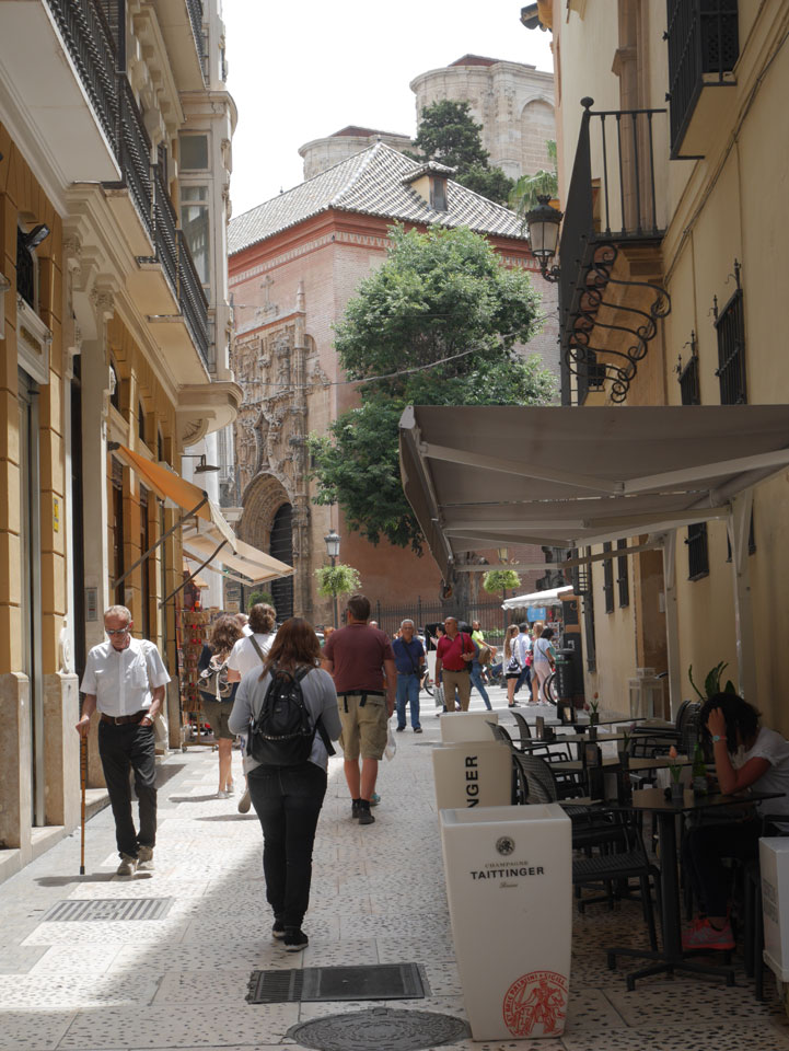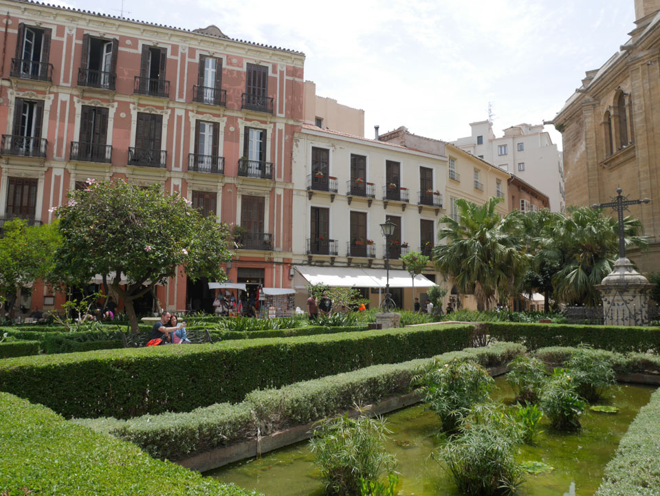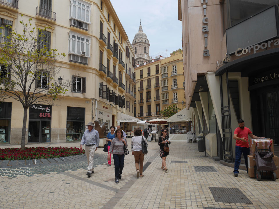 Lockerer Flug und dann in Malaga etwas von der Größe des Flughafens überrascht. Der Bus in die Stadt (€3) war auch schnell voll. Ich kam in die Nähe meines „The Lights“ Hostels, fand es schließlich und konnte sogar noch frühstücken (€1,50). Einchecken aber erst Nachmittags also drehte ich eine kleine Runde durch die Stadt.