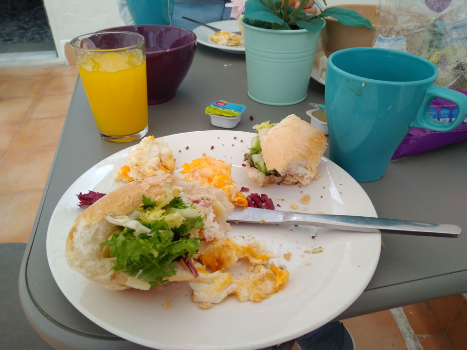 Im neuen Zimmer hier schien alles OK. Gut geschlafen und ähnliches Frühstück, wie gestern. Ich wollte eine Flasche mit Saft auffüllen, war dann zu spät. Wir hatten etwas Zeit bis zum Bus und gingen nach dem Auschecken sogar nochmal was im Papaya essen.