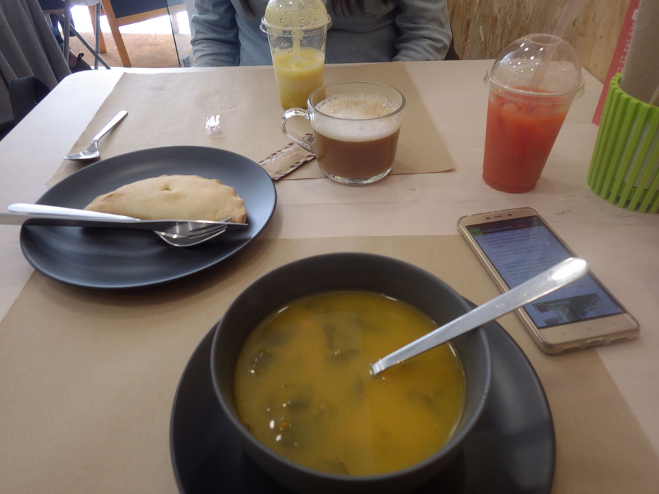 Ich nahm das Suppenmenü, jemand einen Saft. Alles super für um die €12. Dann auf dem Busbahnhof 10 nach 1 fuhr doch kein Bus um 13:30. Ich hatte auf dem Abfahrtszettel nicht gelesen, dass dieser Bus nur Juli bis September fährt. Der nächste Bus nach Lissabon war erst 14:30 – über eine Stunde Zeit.
