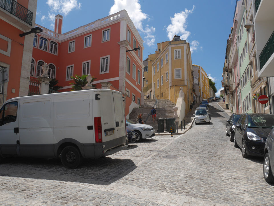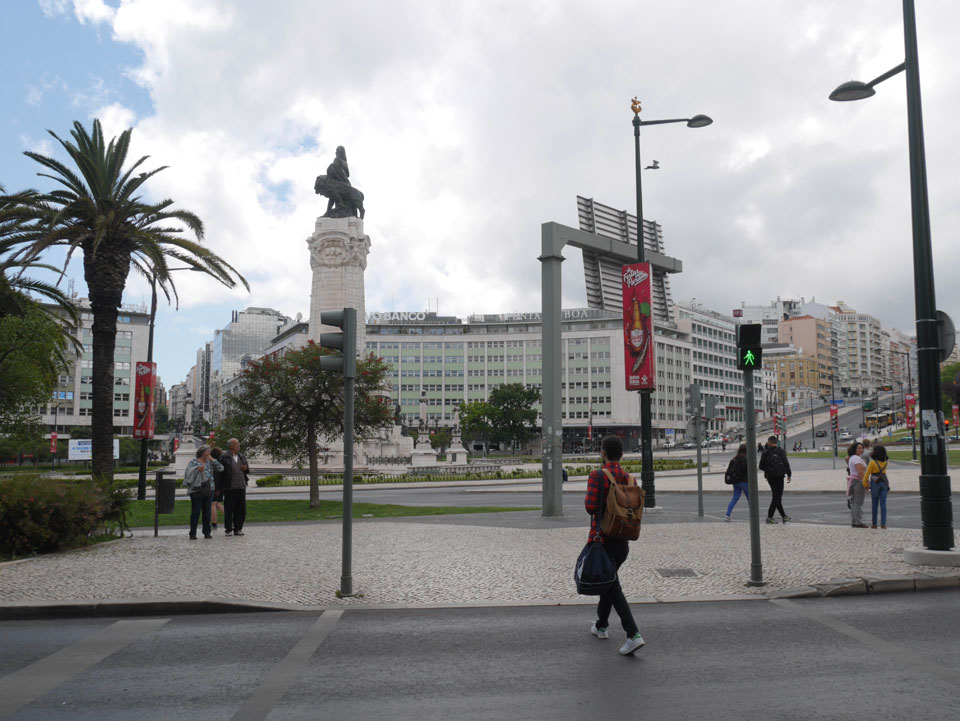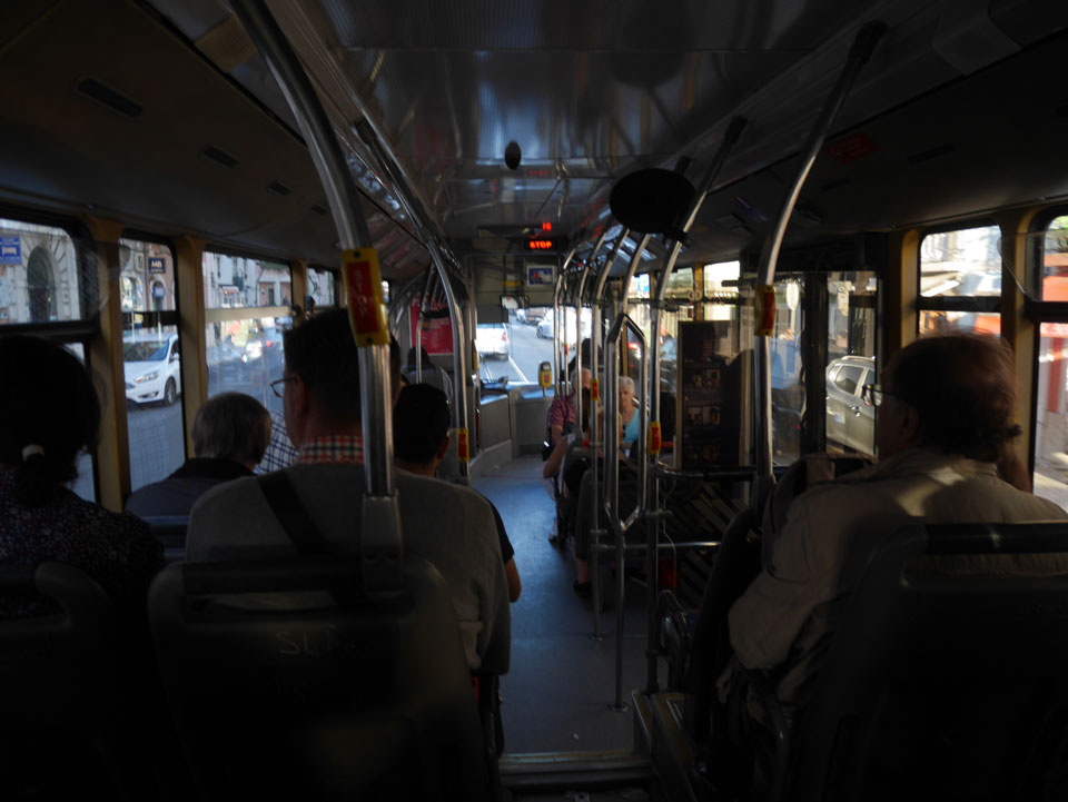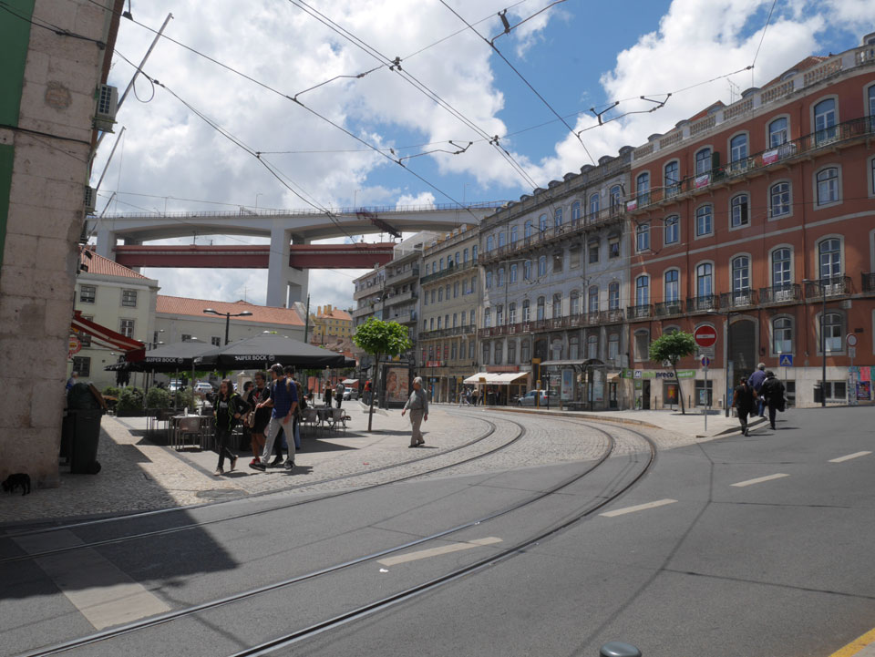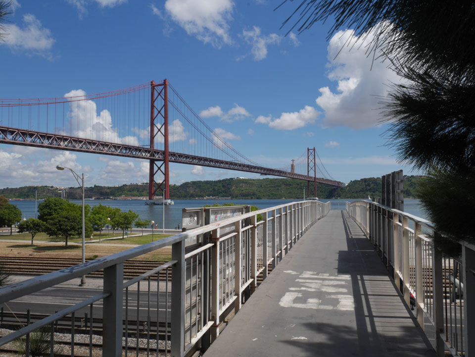 Ich suchte nach einer alternativen Verbindung mit Umsteigen und so gingen wir schwupps runter zur Marquis von Pombal Statue, wo eine Verbindung nach Alcantara auch OK war. Während der Fahrt gab’s mal Fahrschein-Kontrolle. Das ist ungewöhnlich, da man doch vorn beim Fahrer zahlen muss oder seine Chip Karte entwertet. Er schnappte doch einen. Ich fragte, ob man mit dem Ticket umsteigen kann – nein: ein Ticket – ein Bus.