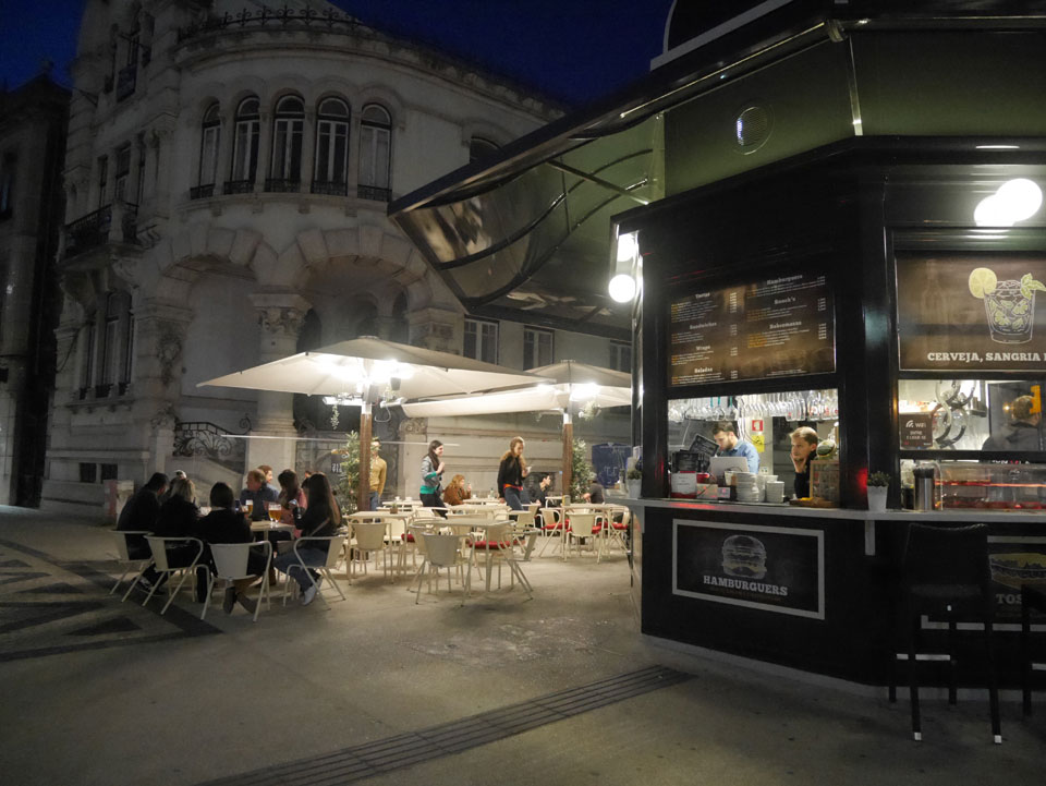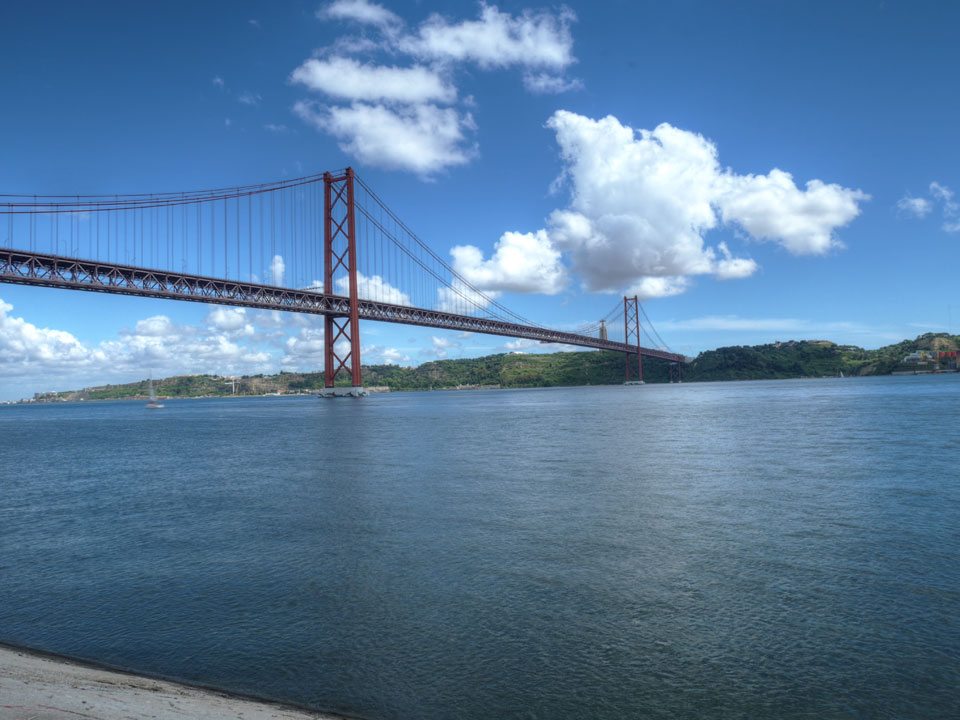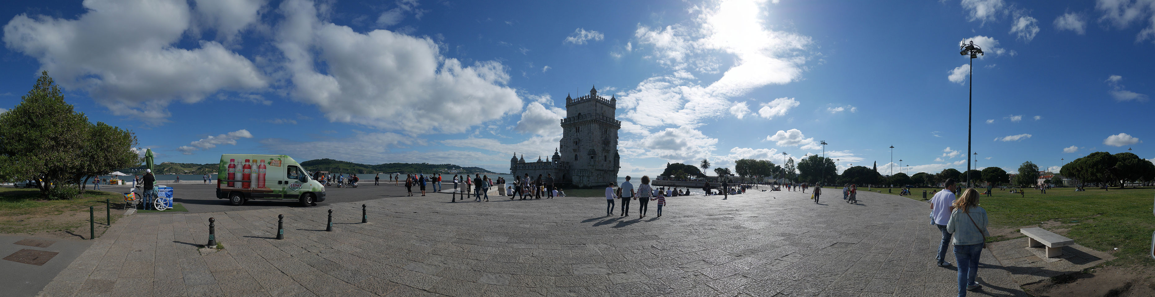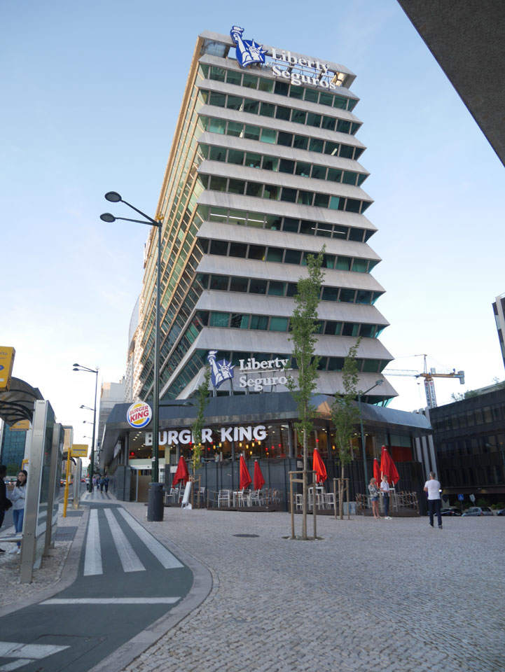 Wir stiegen an der Endhaltestelle aus, hatten noch gut 5km bis zum Torre de Belem. Das Wetter war schön aber schwierig. Mit Sonne zu warm für eine Jacke, mit Wolken zu frisch. Erst mal Mittagessen mit einem Burger, der kaum in das Brötchen passte.