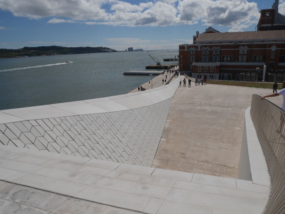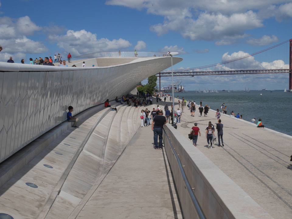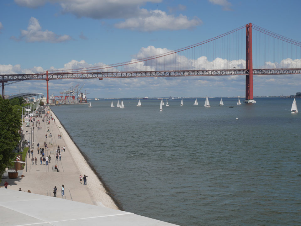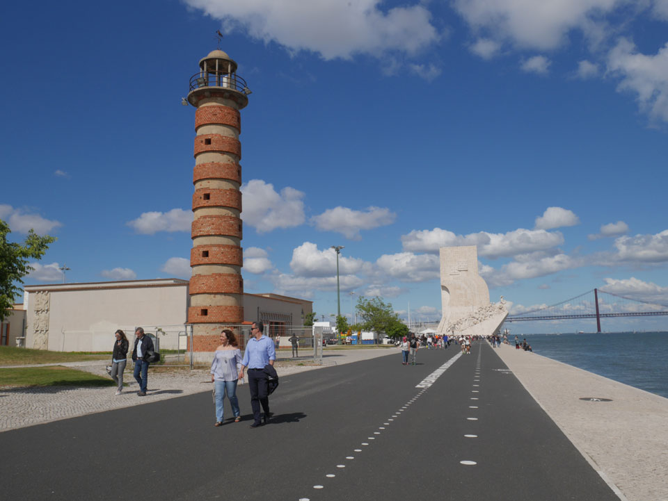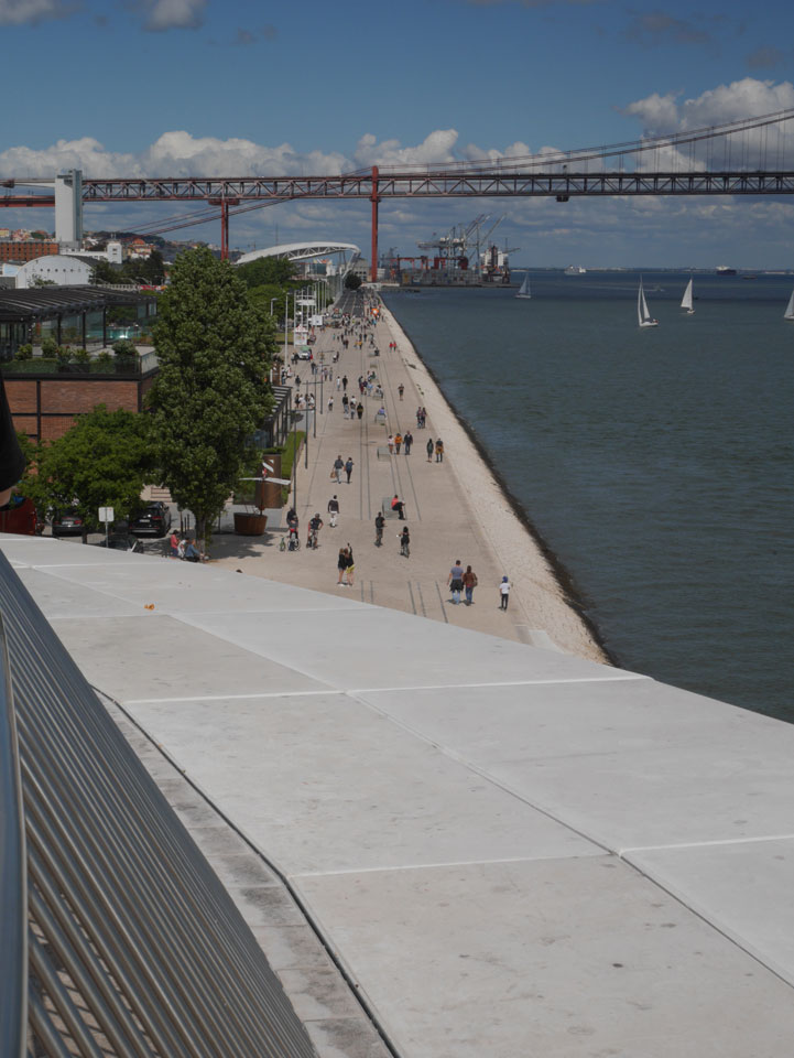 Dann runter am Wasser entlang war das ein schöner, langer Spaziergang mit ein paar Eis auf dem Weg. Vorbei an neuen Konstruktionen – auch das „maat“ (The Museum of Art, Architecture and Technology). Es waren erstaunlich viele Leute unterwegs. Heute war wohl ein Feiertag. Immer weiter nach Westen ging’s zum „Padrão dos Descobrimentos“ und schließlich „Torre de Belém“. Jemand war müde, ich auch. Wir saßen etwas da, genossen den Schatten und schauten uns gegen 18:00 dann um. Damals 2007 war ich noch drin, heute war der Eintritt um 17:00 geschlossen. Auch OK.