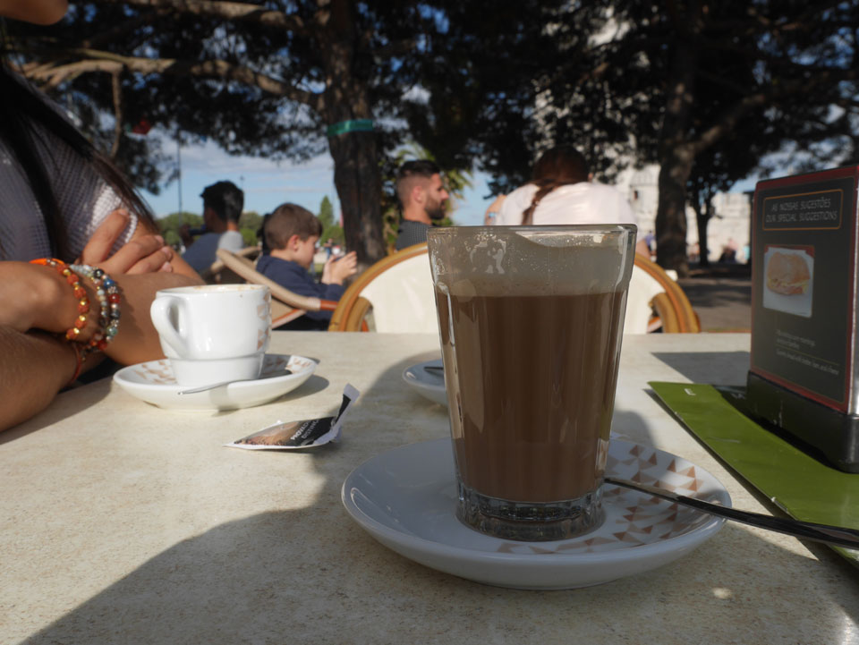 Ein Kaffee nebenan und dann weiter entspannen mit der hellen Sonne. Langsam zog ich mich in den Schatten zurück, hatte eine leicht rote Birne.