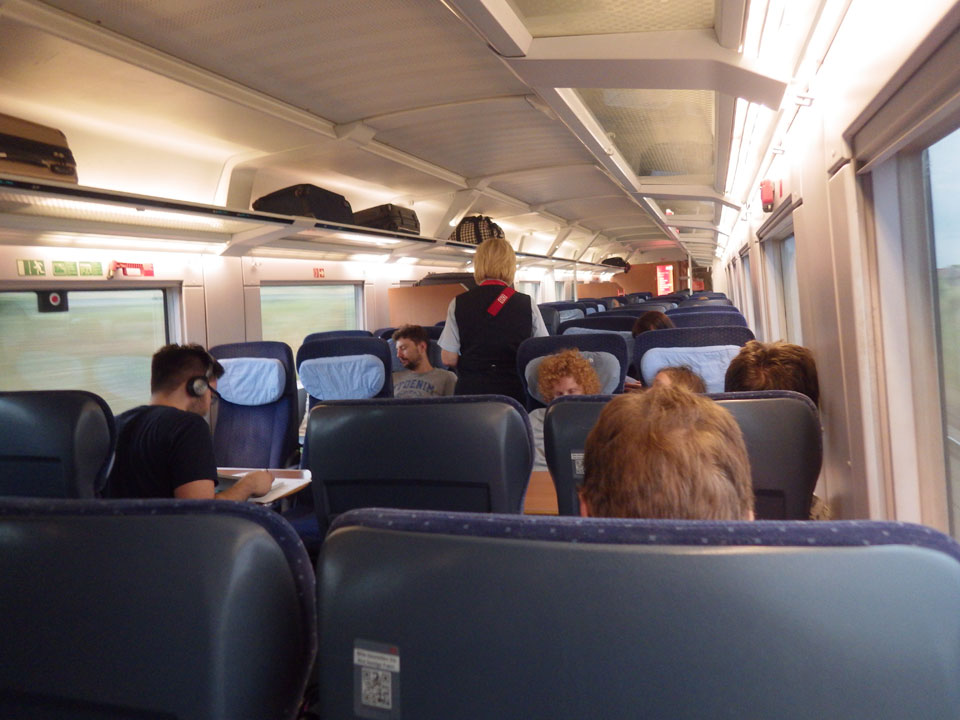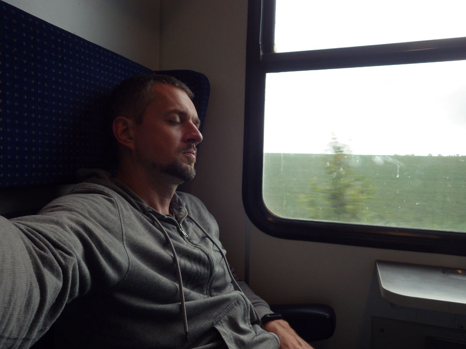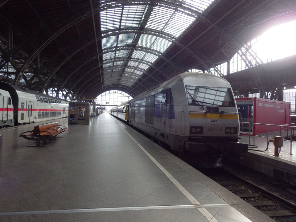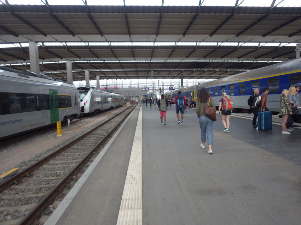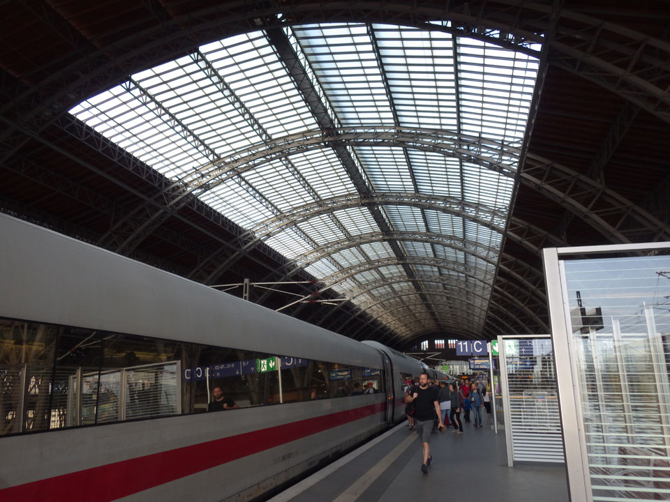Erst eine Bahn Richtung Dessau, Umsteigen Hauptbahnhof und dann weiter mit einem ICE Richtung München. Man kommt mit deutschen Zuggeschwindigkeiten doch gut und schnell voran.