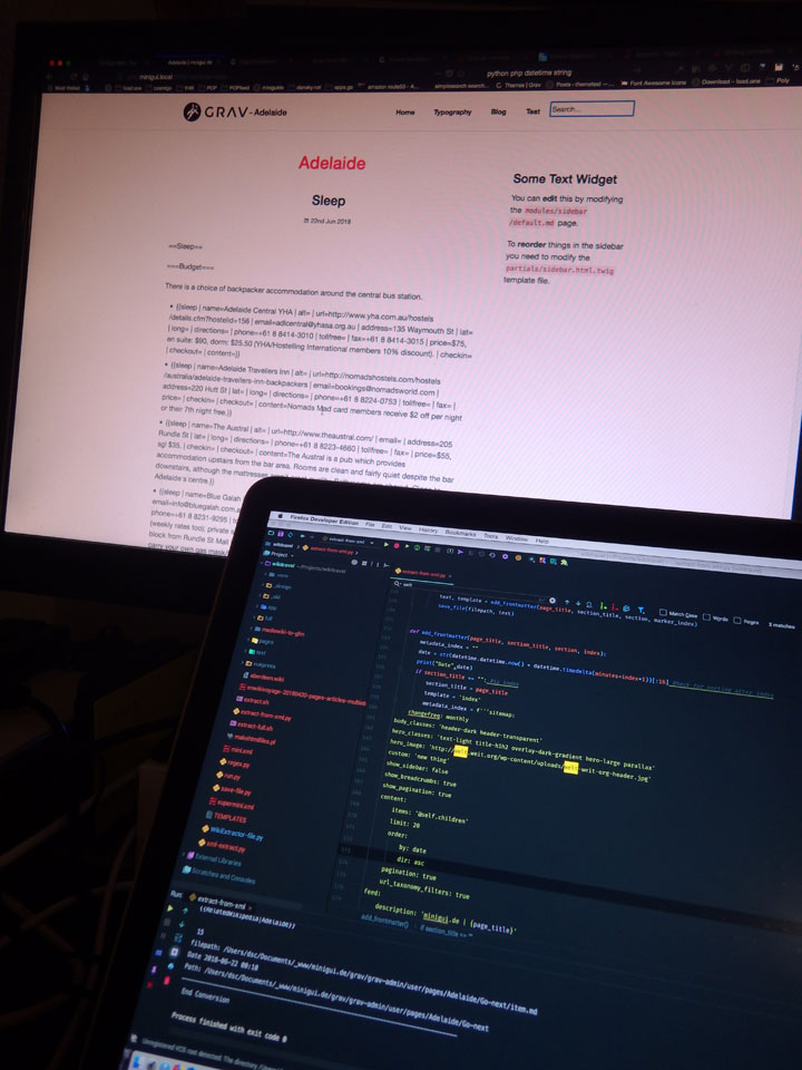 Damit sehen die Seiten schon mal annehmbar aus. Jetzt gibt’s aber noch extrem viele Templates und Sachen zu bearbeiten, bis ordentliches Markdown und damit HTML herauskommt. Schon jetzt, nach ein paar Tagen Arbeit an dem Problem, kommt wieder die Sinnfrage. Werde das Ding aber auch mit Sinnlosigkeit zu Ende bringen. Soweit muss ich mal kommen.