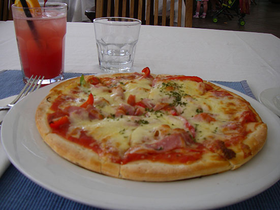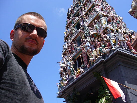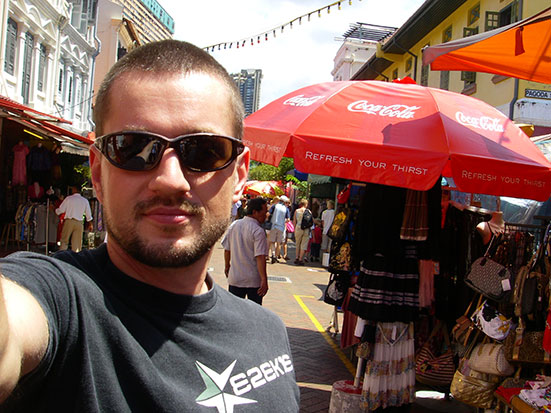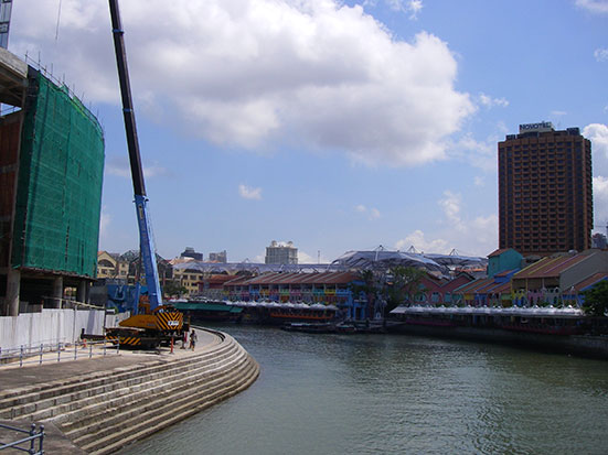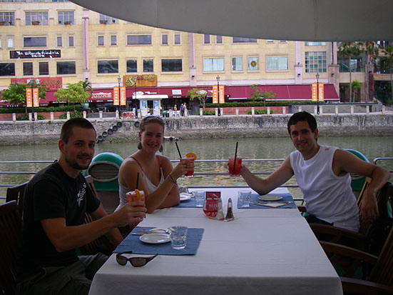 Wir fuhren nach Chinatown und schauten uns um. Nette Leute. Ich kannte mich noch ein wenig aus, wusste wo ein Tempel war, wo es normalerweise ’nen Haufen Essen gibt. Die Essensstraße war noch geschlossen. Wir spazierten zu Clarks Quay und hatten Mittag in einem piekfeinen Restaurant. Singapore Sling und eine Pizza für mich.