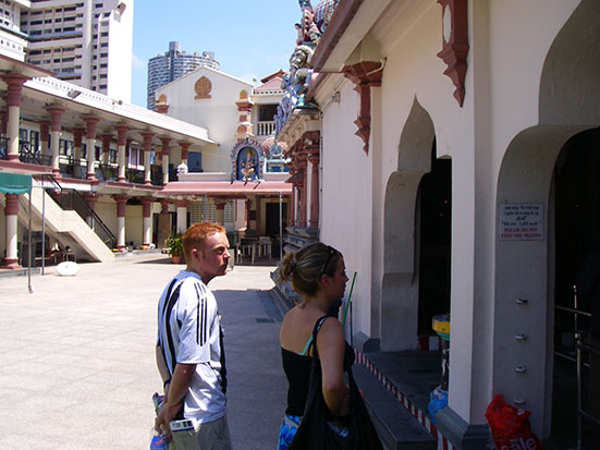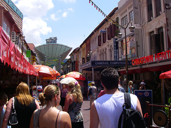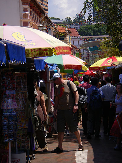 Gegen 10 stand ich mal auf und wollte etwas frühstücken. Eine Holländerin fragte, ob ich mit nach Chinatown käme. Eigentlich war mir zu nichts anderem als träumen zumute. Nach kurzer Überlegung und etwas im Magen holte ich dann doch mein Geld und los ging es. Wir mussten erst noch einen Dutch guy in Little India abholen. Wir hatten zwar die Bushaltestelle vor der Nase, einer fuhr gerade weg. Bei der Hitze nahmen wir ein Taxi. Kostet hier ja alles so wenig.