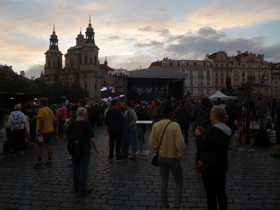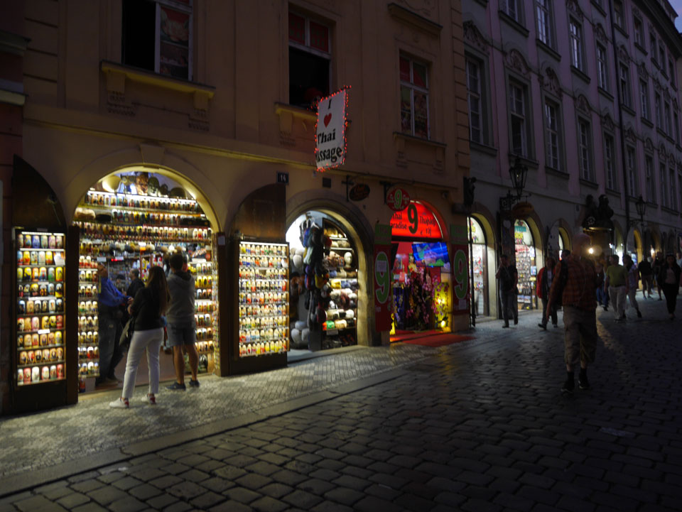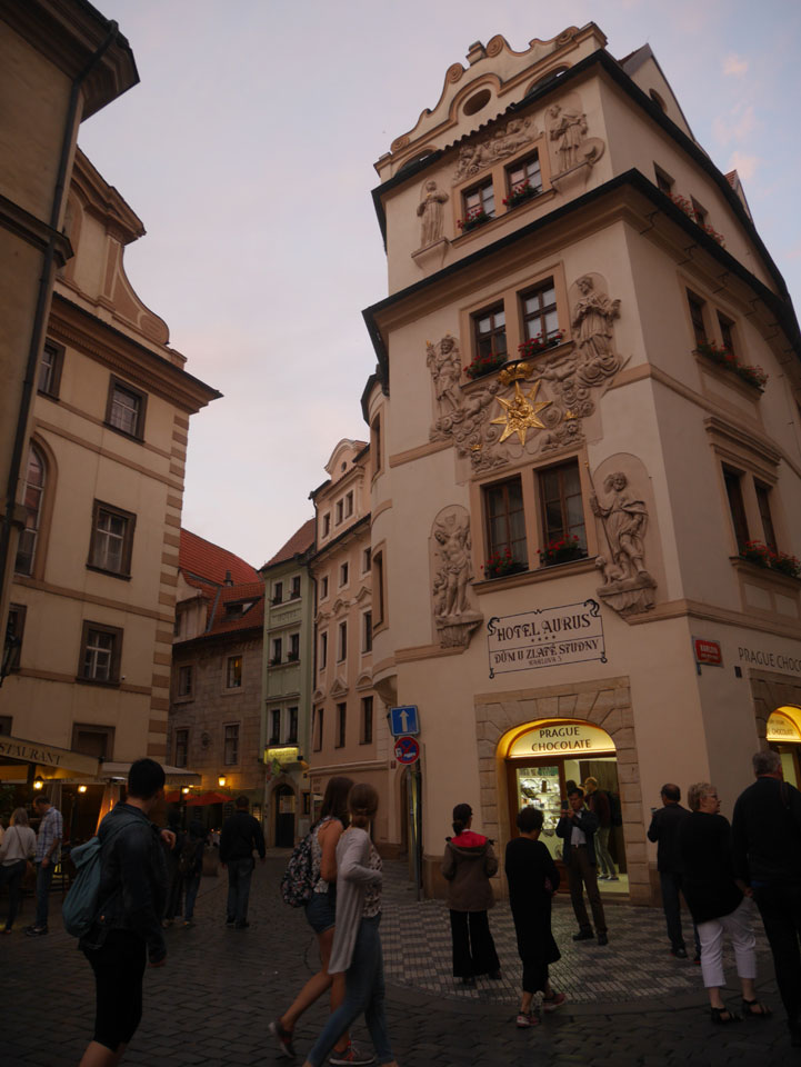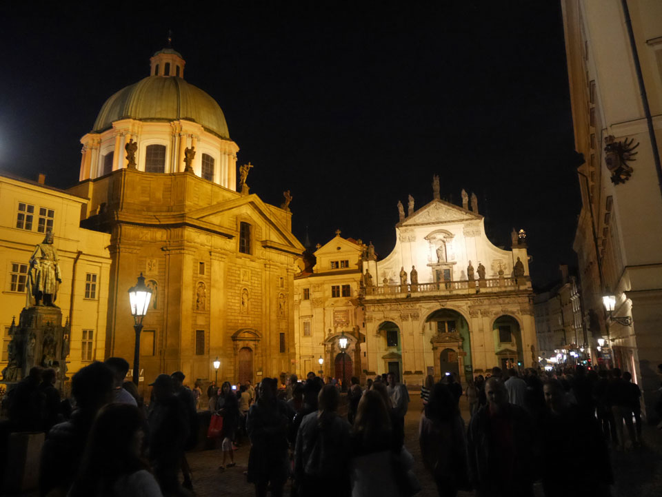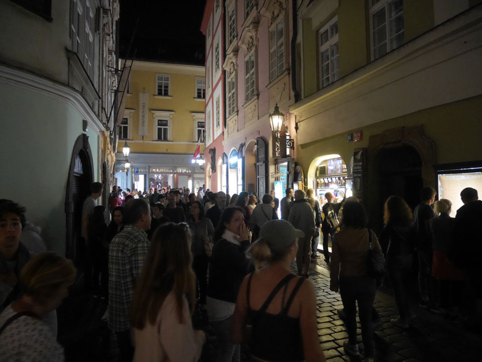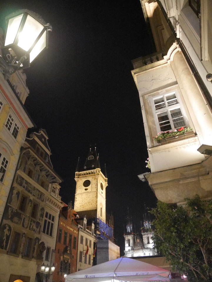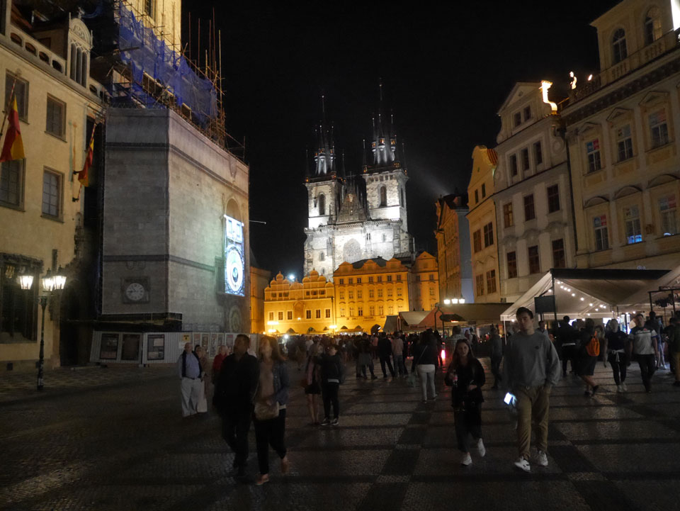 Abends dann ging ich knipsen. Die astronomische Uhr wird gerade renoviert und man hat da tatsächlich eine Videowand an diese Stelle gebaut, was auf Photos dann wenigstens ähnlich aussehen sollte. Bis zu einem Stundenschlag wartete ich aber nicht.