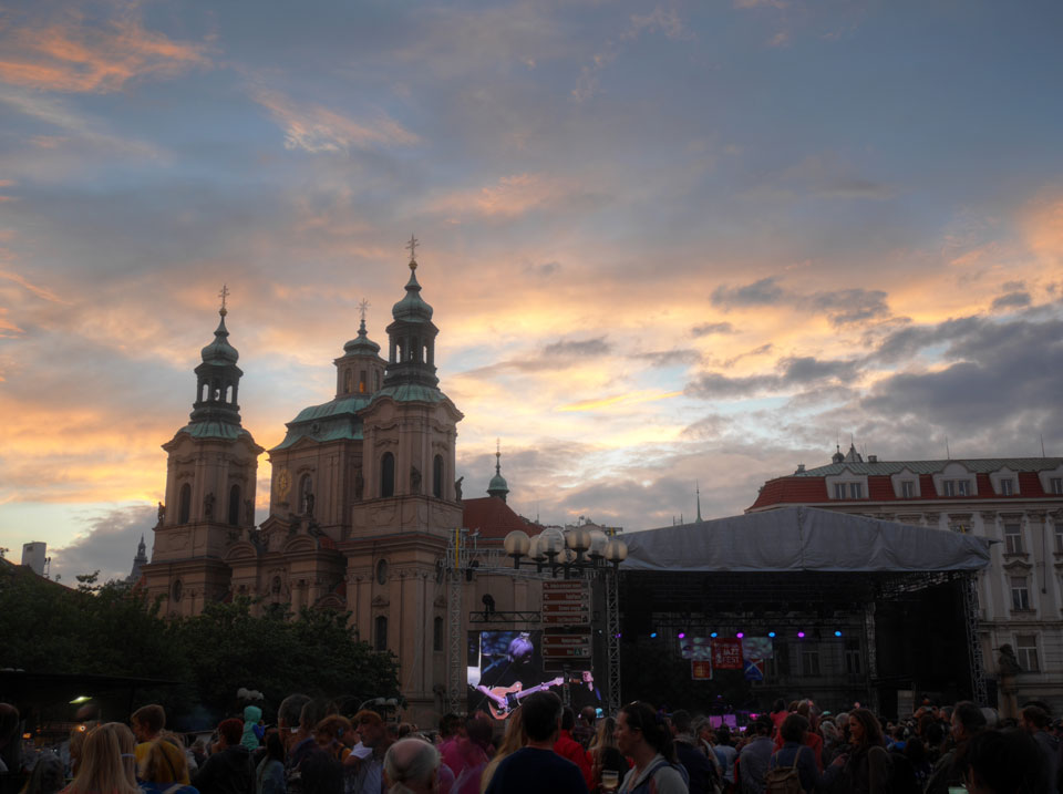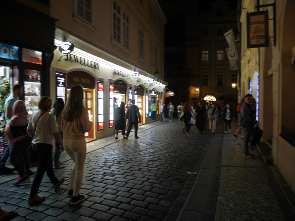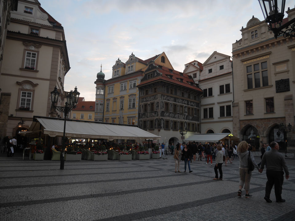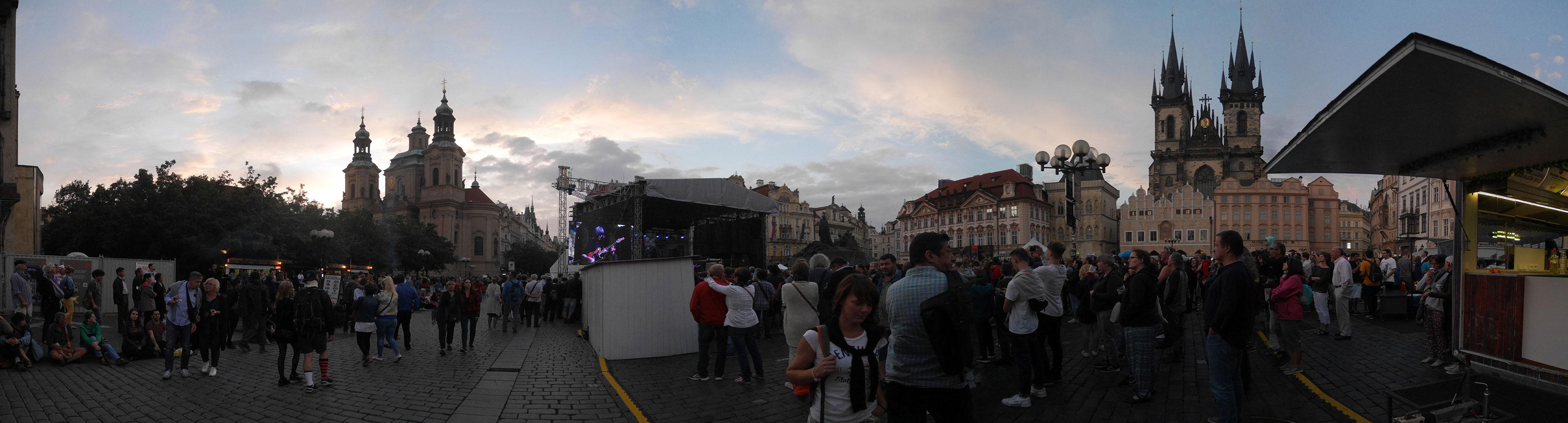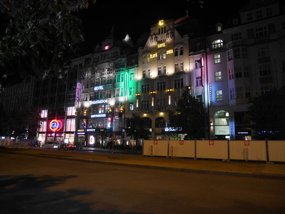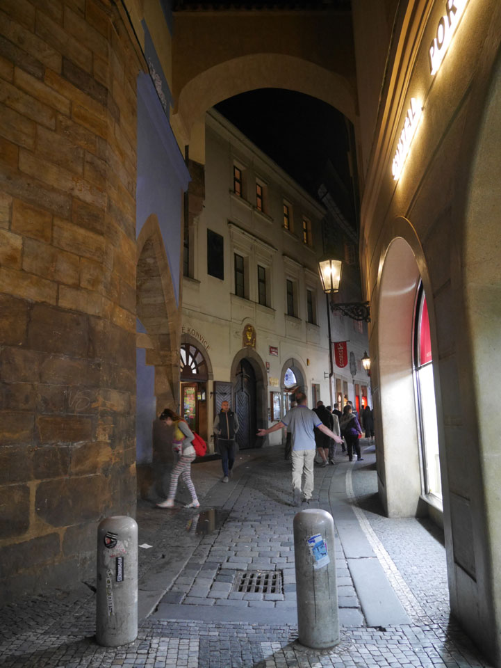Abends dann ging ich knipsen. Die astronomische Uhr wird gerade renoviert und man hat da tatsächlich eine Videowand an diese Stelle gebaut, was auf Photos dann wenigstens ähnlich aussehen sollte. Bis zu einem Stundenschlag wartete ich aber nicht.