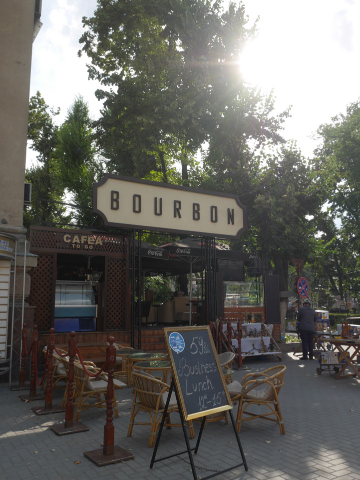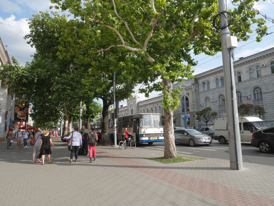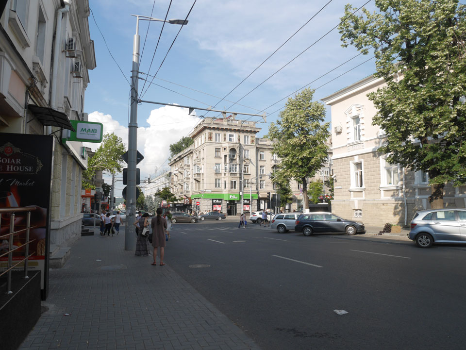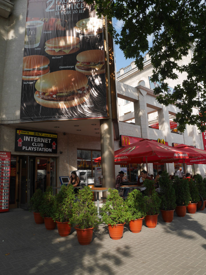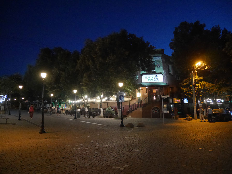 Mit dem Sonnenuntergang machte ich mich von dannen, ging die Treppen hoch Richtung Stadt. Da war auch die US-Botschaft, noch größer. In einem Pub bestellte ich ’nen Burger und Bier. Mit 136 MDL (150 = €7,90) incl kleinem Bier war das Ding nicht ganz so günstig. Witzig war, als ich den 200er Schein gab und „Sto-pidesjat“ sagte, die 150 zurückbekam. Ich klärte auf, dass ich nur 50 zurück will, ha.