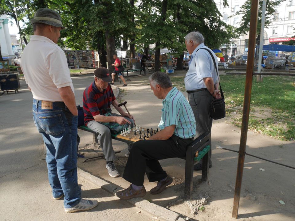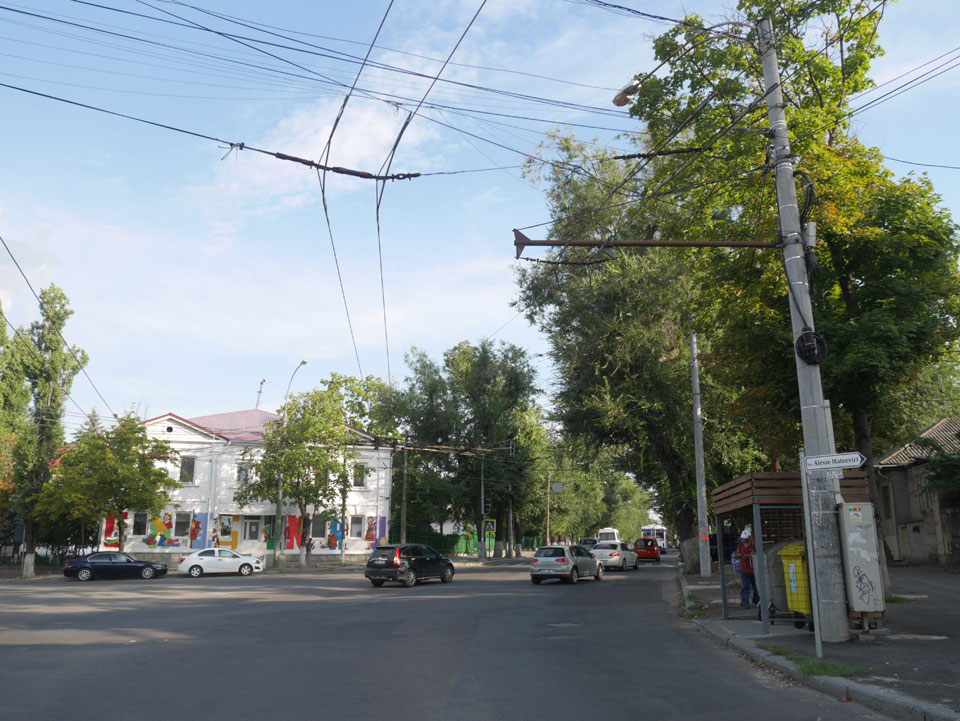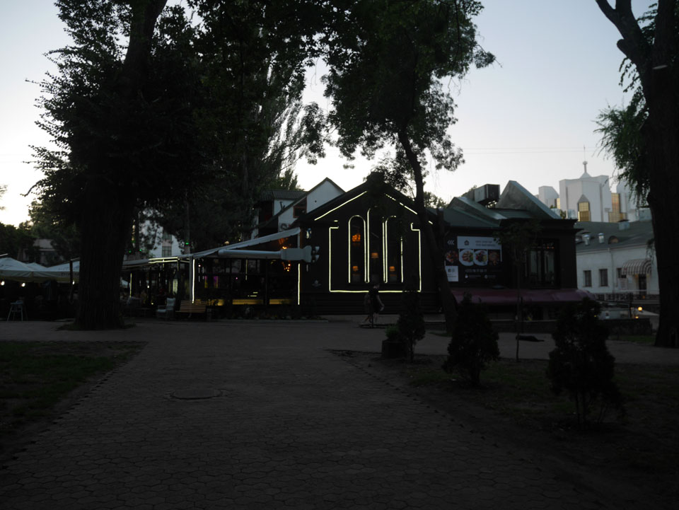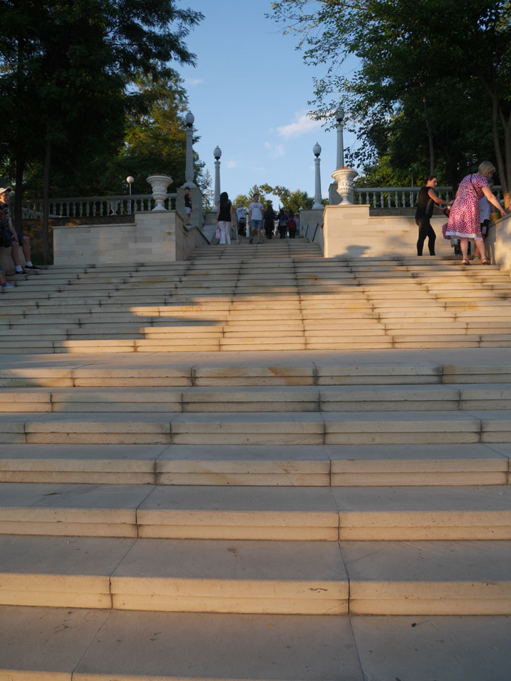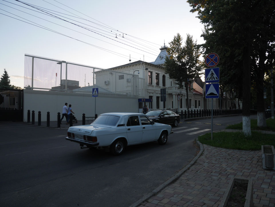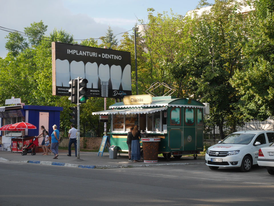 Mit dem Sonnenuntergang machte ich mich von dannen, ging die Treppen hoch Richtung Stadt. Da war auch die US-Botschaft, noch größer. In einem Pub bestellte ich ’nen Burger und Bier. Mit 136 MDL (150 = €7,90) incl kleinem Bier war das Ding nicht ganz so günstig. Witzig war, als ich den 200er Schein gab und „Sto-pidesjat“ sagte, die 150 zurückbekam. Ich klärte auf, dass ich nur 50 zurück will, ha.