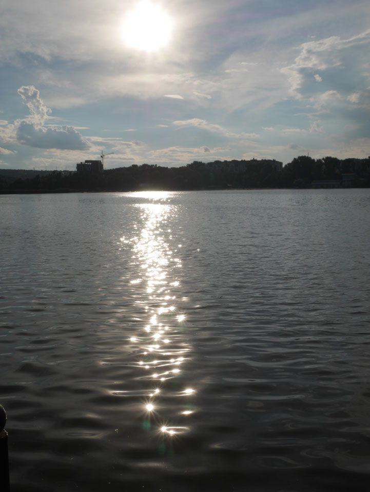 Das war doch ganz nett da. Mit langer Hose war ich zu warm angezogen. Die Sonne prasselte heute auch bis in den Abend. Einige Leute waren zum Dienstag hier unterwegs – mit besserer Gesundheit ohne Kratzhals wäre ich gern gejoggt. Der See hatte sogar einen kleinen Strand, Leute gingen baden – Stauseestimmung. Ich hörte weiter Peterson, setzte mich hin und knipste herum.