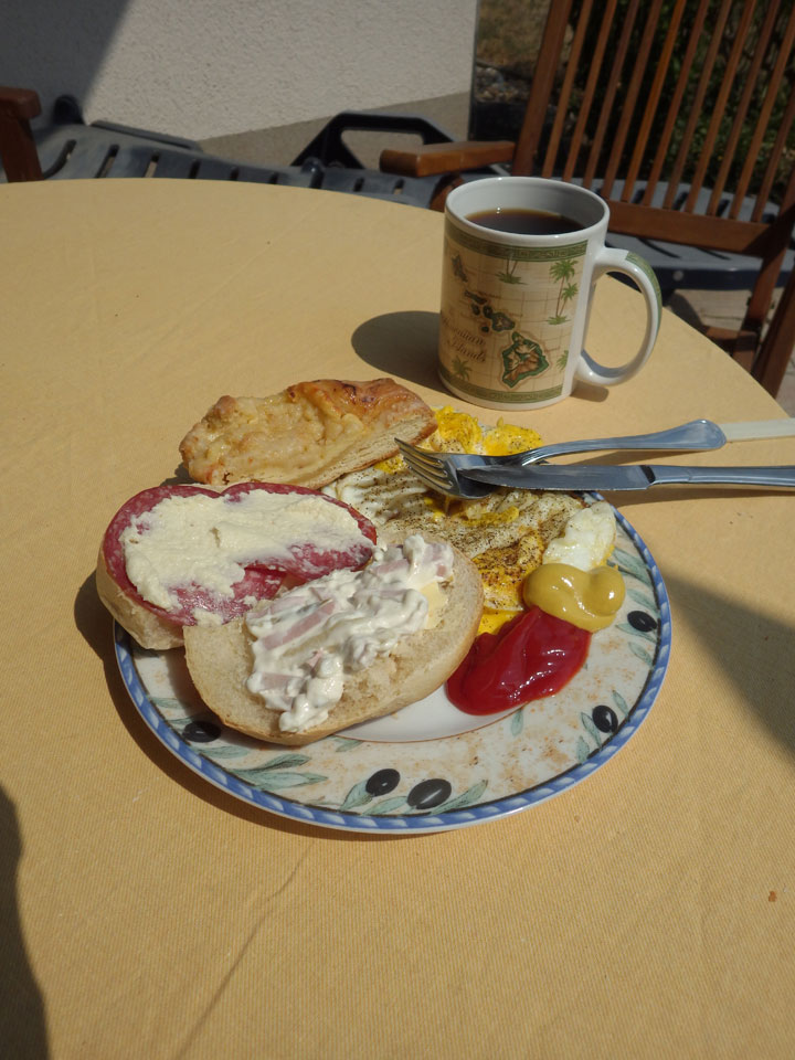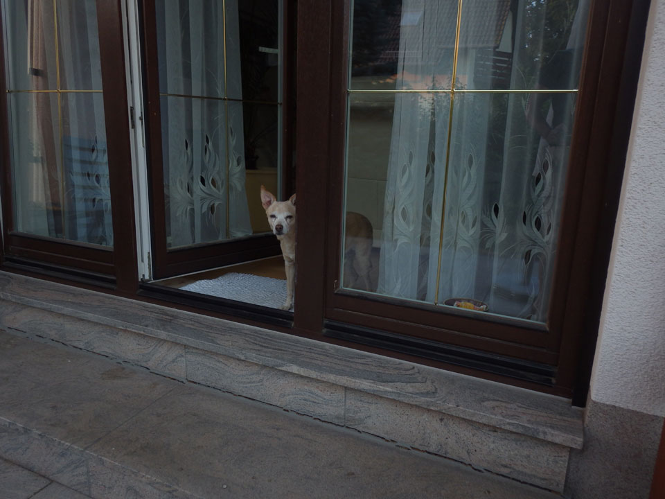Nach der anstrengenden Reise und Erkältung schlief ich lange und recht gut. Es geht langsam bergauf. Der Hund hechelt heute in der Hitze.