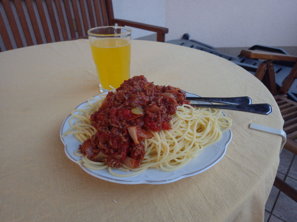 Die Spaghetti schmeckten anscheinend gut. Kochen macht Spaß.