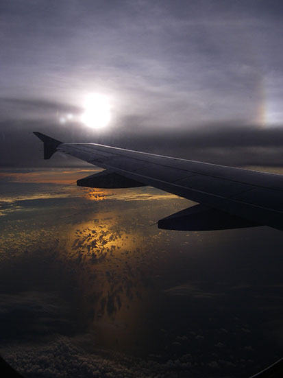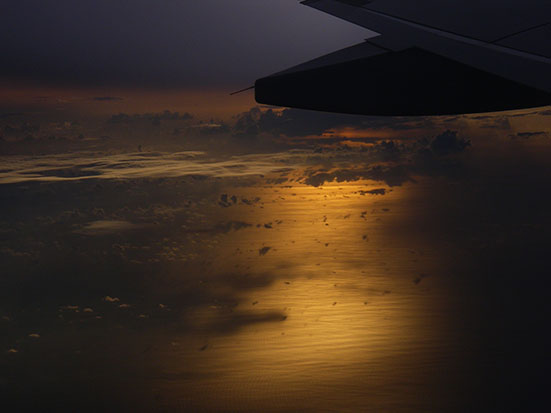Halb zwei schulterte ich meinen Rucksack. Kurzer talk mit einem deutschen Pärchen. Dann ein Taxi genommen, Plauderei und schon am Flughafen. Ich war zeitig dran und konnte mir einen Fensterplatz aussuchen.
