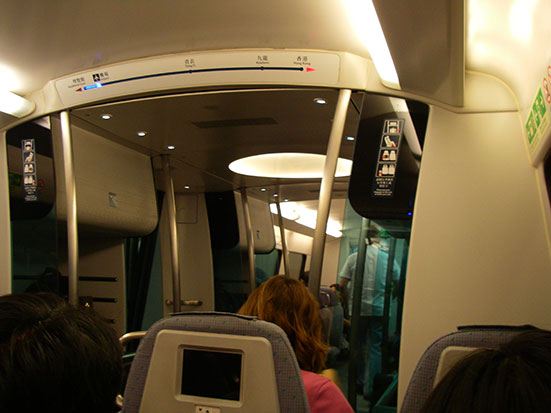 Bevor es auf die Rolltreppe zur Passkontrolle ging, wurde jeder Passagier mit einer Art Laserpistole am Kopf abgeknipst. Merkwürdiger Willkommensgruß. Passkontrolle und Gepäck gingen locker über die Bühne. Ich kaufte mir ein Express-Ticket nach Kowloon für HK$ 90, Aussie und Singapur Geld tauschen, dann noch eine Octopus Card für HK$ 150. Damit wird wenigstens die Rückfahrt billiger.