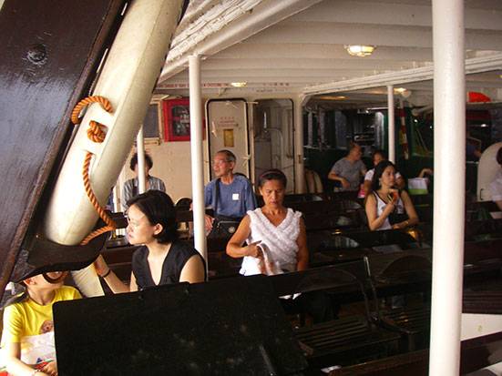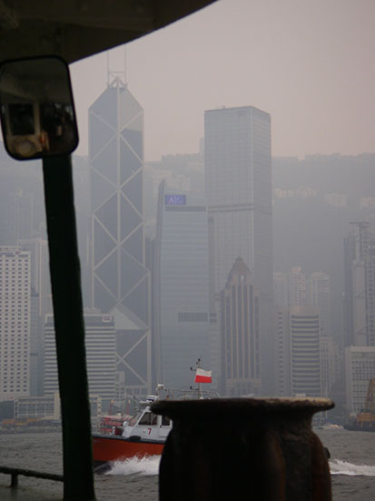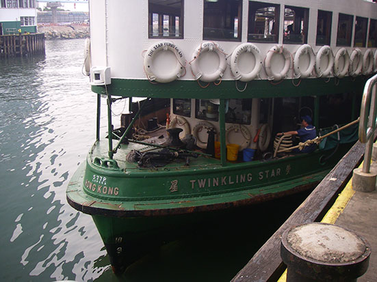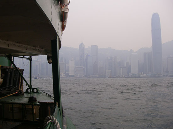 Für HK$ 1,70 von der Octopus Card war ich fix auf einer Fähre. Die „Twinkling Star“ tuckerte vor sich hin, die Skyline kam näher und wurde besser erkennbar. Eine schöne Fahrt. Viel spektakulärer als mit der Metro.