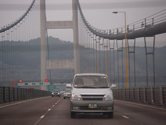 Um 5 wieder ins Hostel, FlipFlops in den rucksack, festes Schhwerk an. Taxi an der Tür geschnappt. Zum Express Zug in Kowloon bitte. De Fahrer schwatzte mir eine Taxifahrt für HK$200 direkt zum Flughafen auf. Ich hatte noch so viel Cash, warum nicht. Nette Fahrt durch die diesige Stadt. Ganz schöne Verschmutzng hier. 40 Minuten über Brücken und Highway.