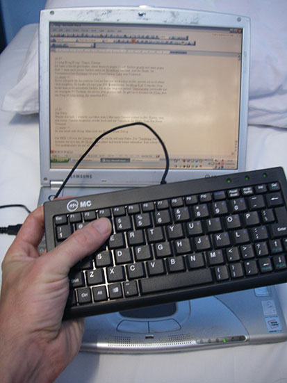 Bevor ich mich für die restliche Zeit ins Internet verdrücken wollte, musste ich noch etwas Geld ausgeben. So kaufte ich eine paar Kontaktlinsen. Im Mong Kok Computer Shop findet man recht preiswerte Sachen. Ich wollte weg von meiner Gmmitastatur und kaufte mir die winzigste PC Tastatur, die ich bis jetzt gesehen hab. Es gibt noch kleinere für PDAs aber das Ding ist schon witzig..für immerhin ernste €12.