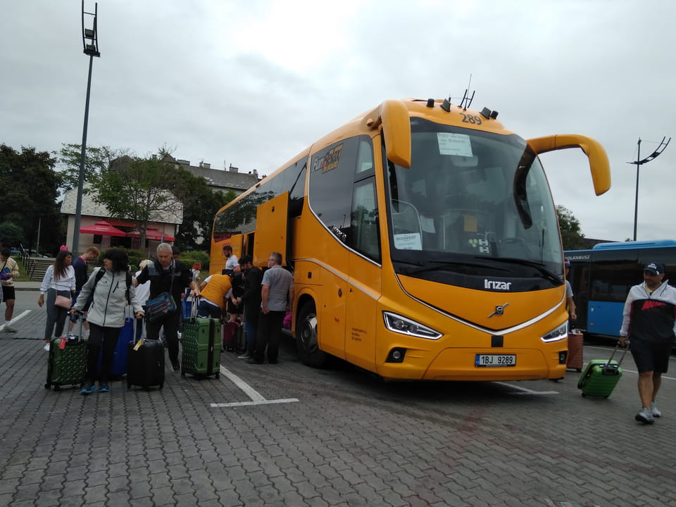 Gut in der Zeit morgens und rechtzeitig an der Bushaltestelle. Der Regiojet Bus kam etwas spät, war komplett voll – wohl auch wegen der preiswerten €14,90 für die Fahrt.