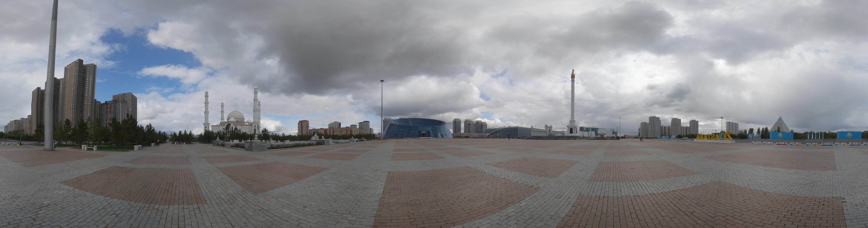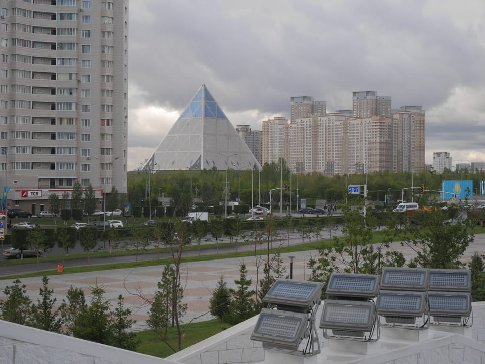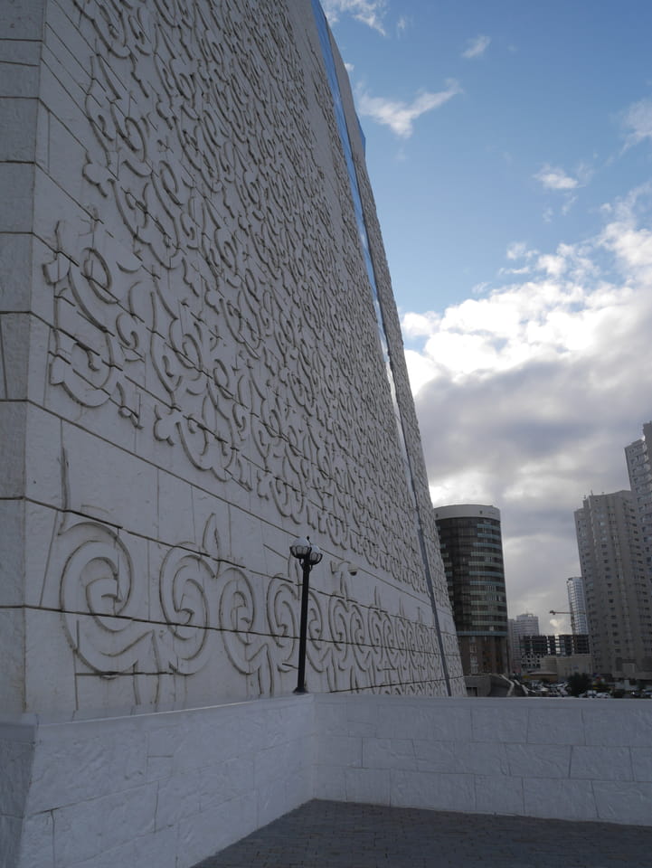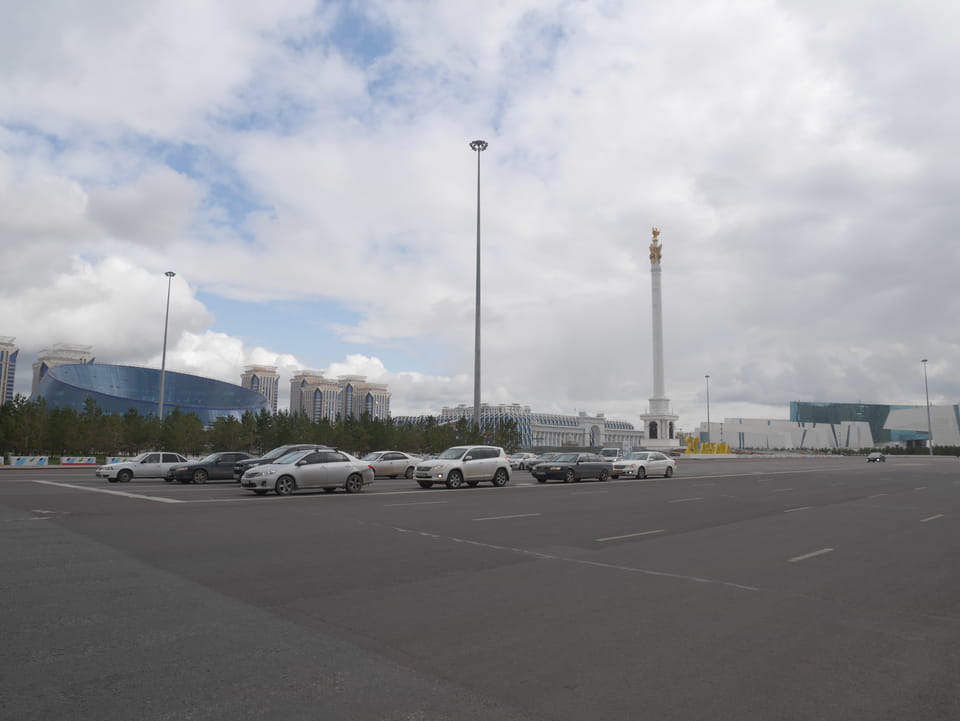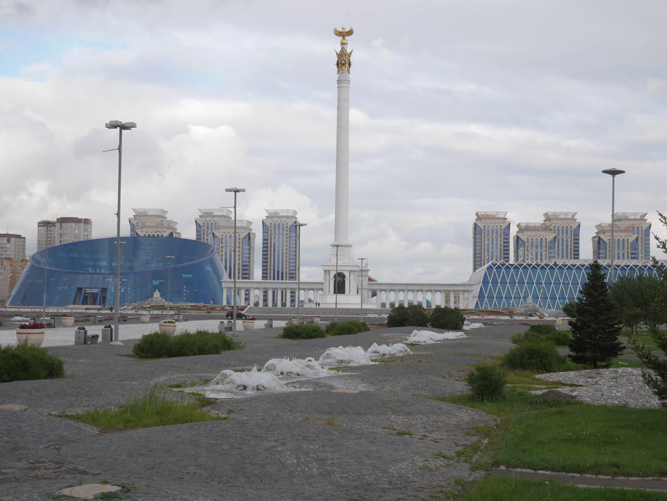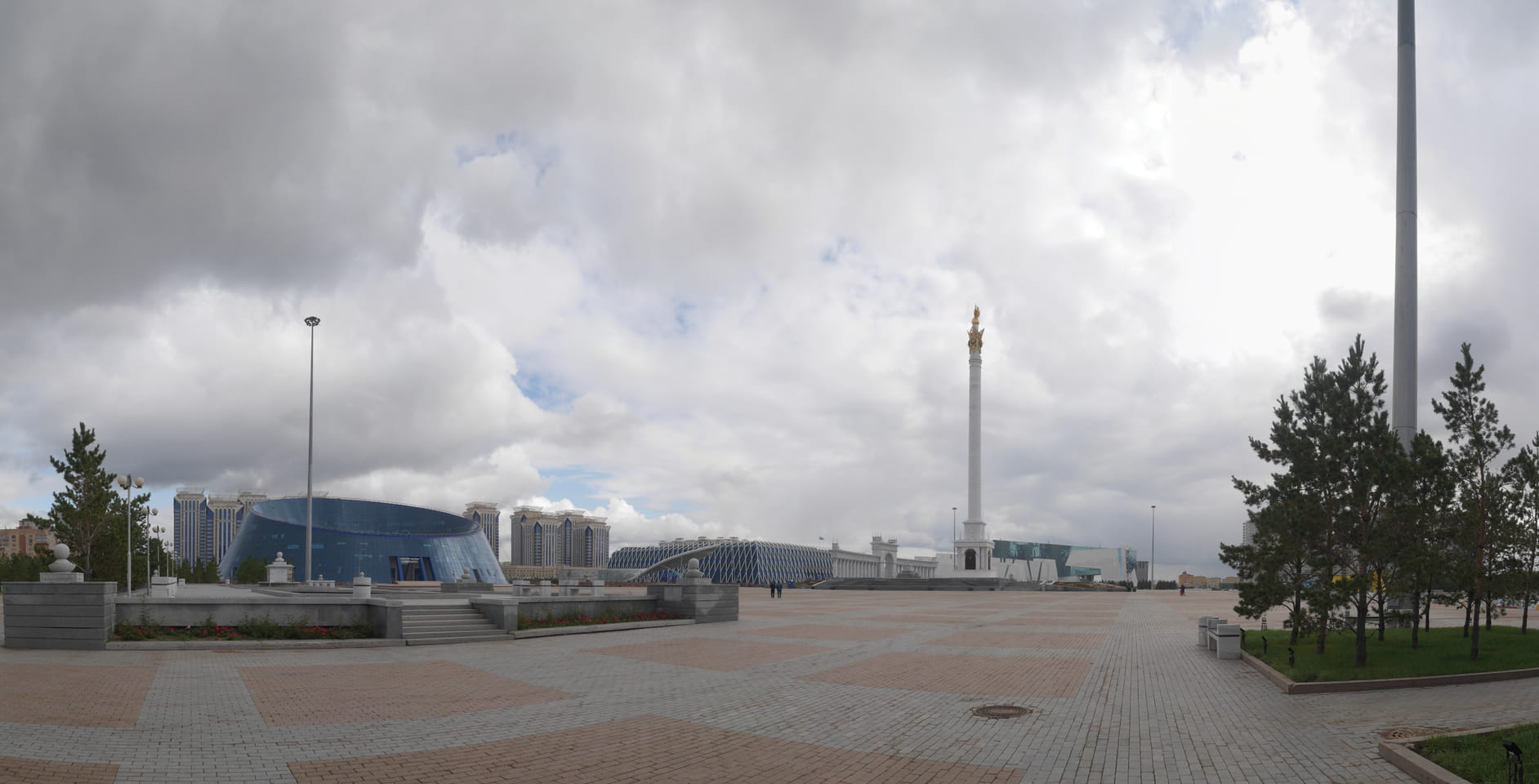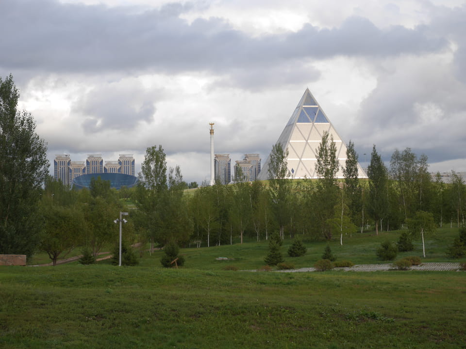 In der Nähe der Pyramide stieg ich aus. Da waren auch gleich eine Moschee und weiter zum Museum futuristische Bauwerke zu sehen. Kustakademie oder so. Wenig Leute waren heute unterwegs, obwohl hier einige Apartmenthäuser gebaut wurden. Astana macht eben einen zu modernen Eindruck, ist eben bisher nur eine politische Hauptstadt.