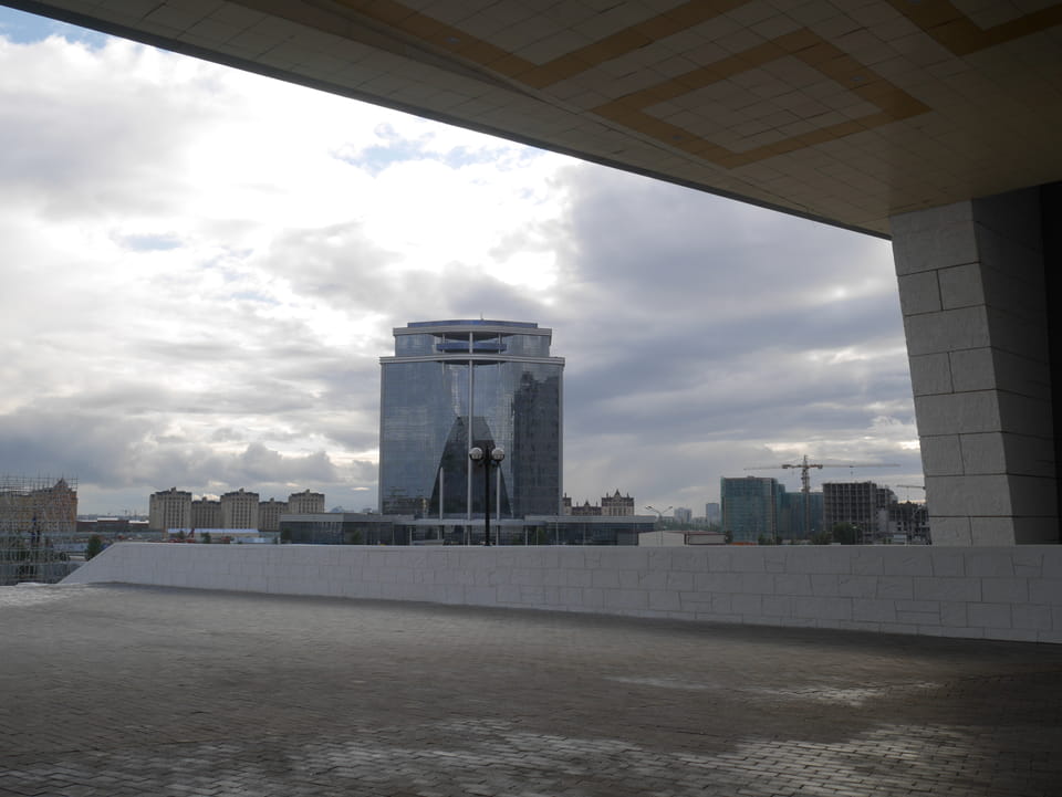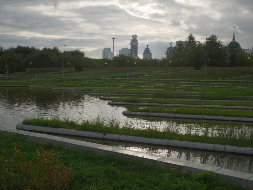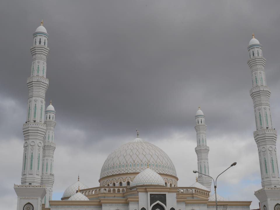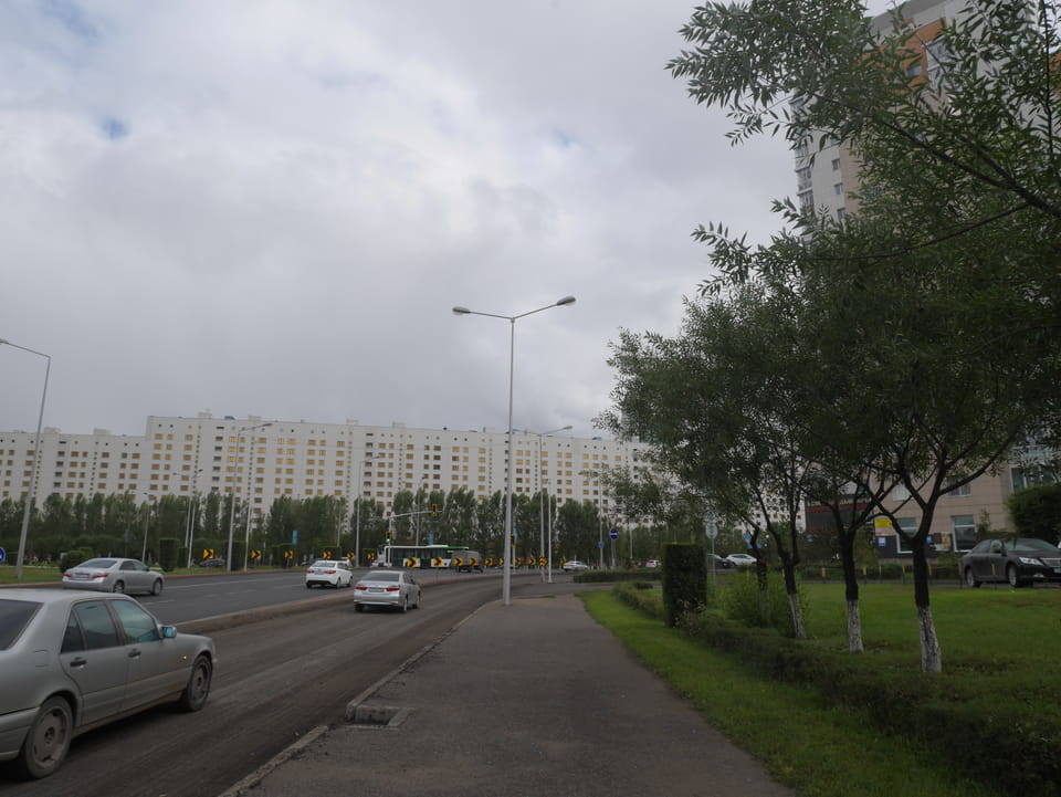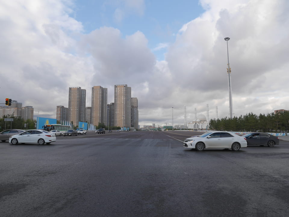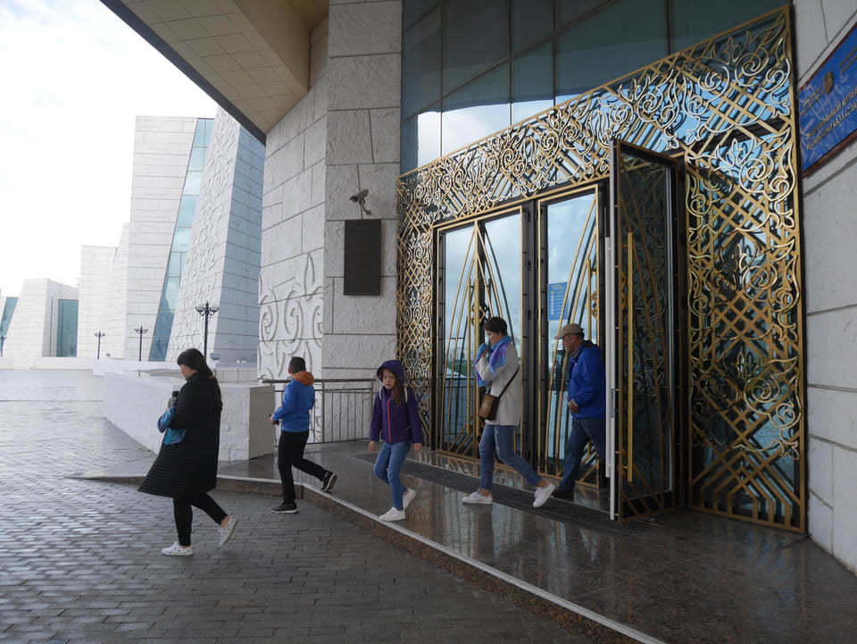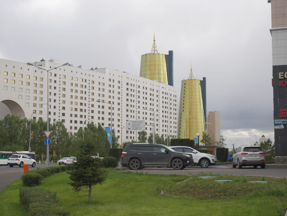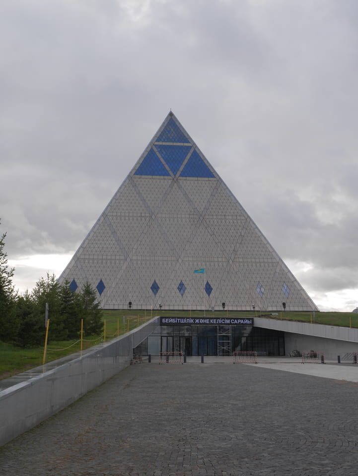 In der Nähe der Pyramide stieg ich aus. Da waren auch gleich eine Moschee und weiter zum Museum futuristische Bauwerke zu sehen. Kustakademie oder so. Wenig Leute waren heute unterwegs, obwohl hier einige Apartmenthäuser gebaut wurden. Astana macht eben einen zu modernen Eindruck, ist eben bisher nur eine politische Hauptstadt.