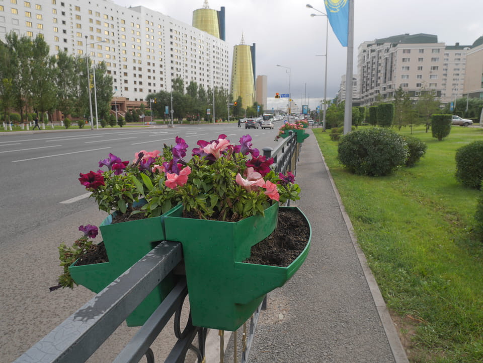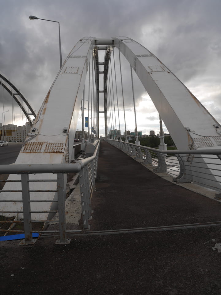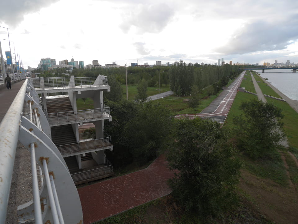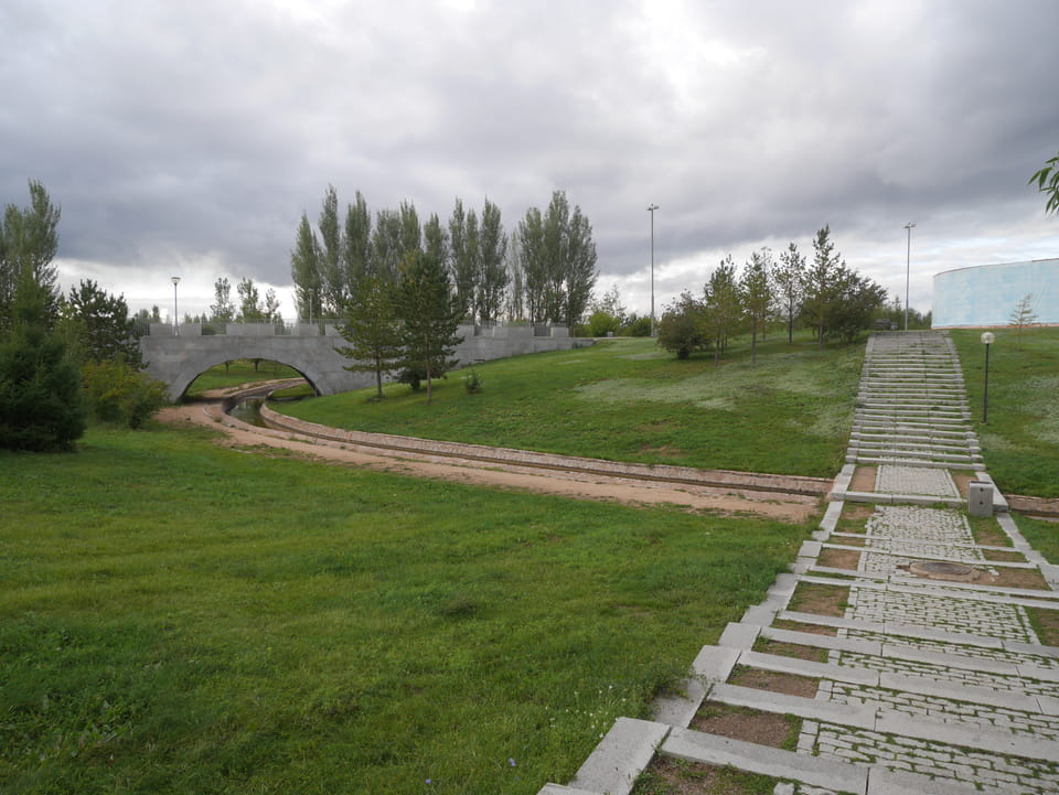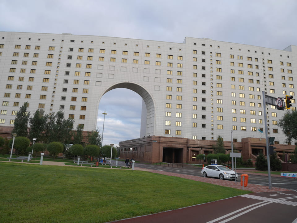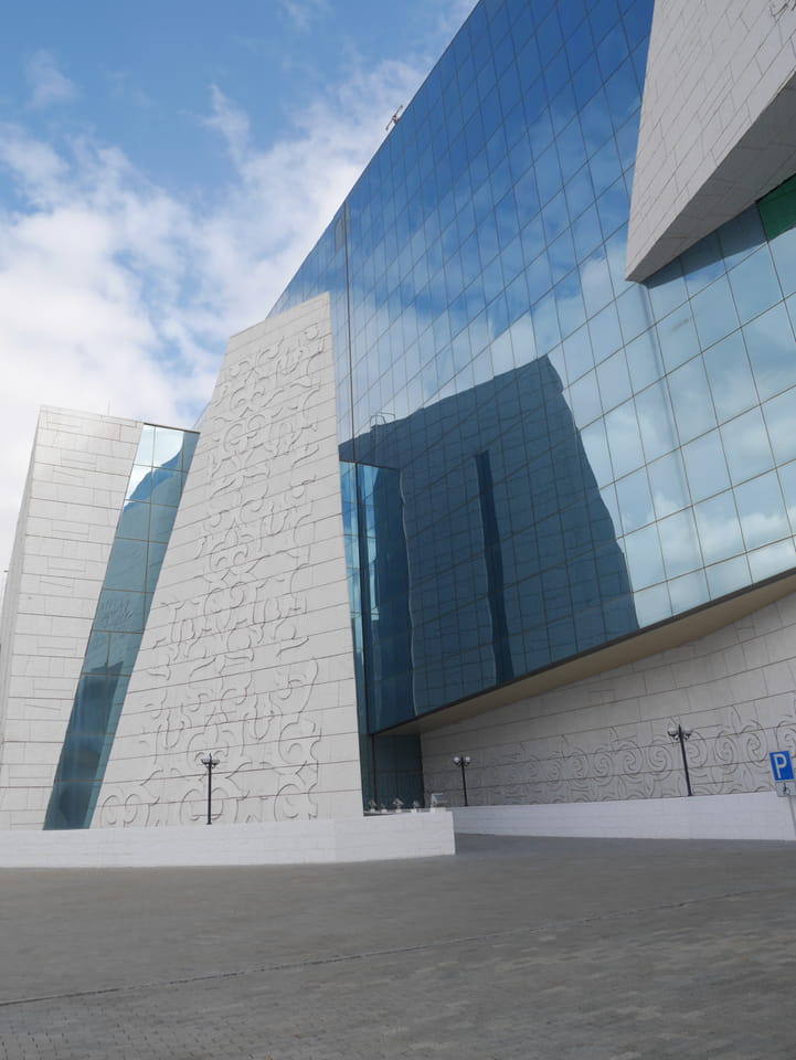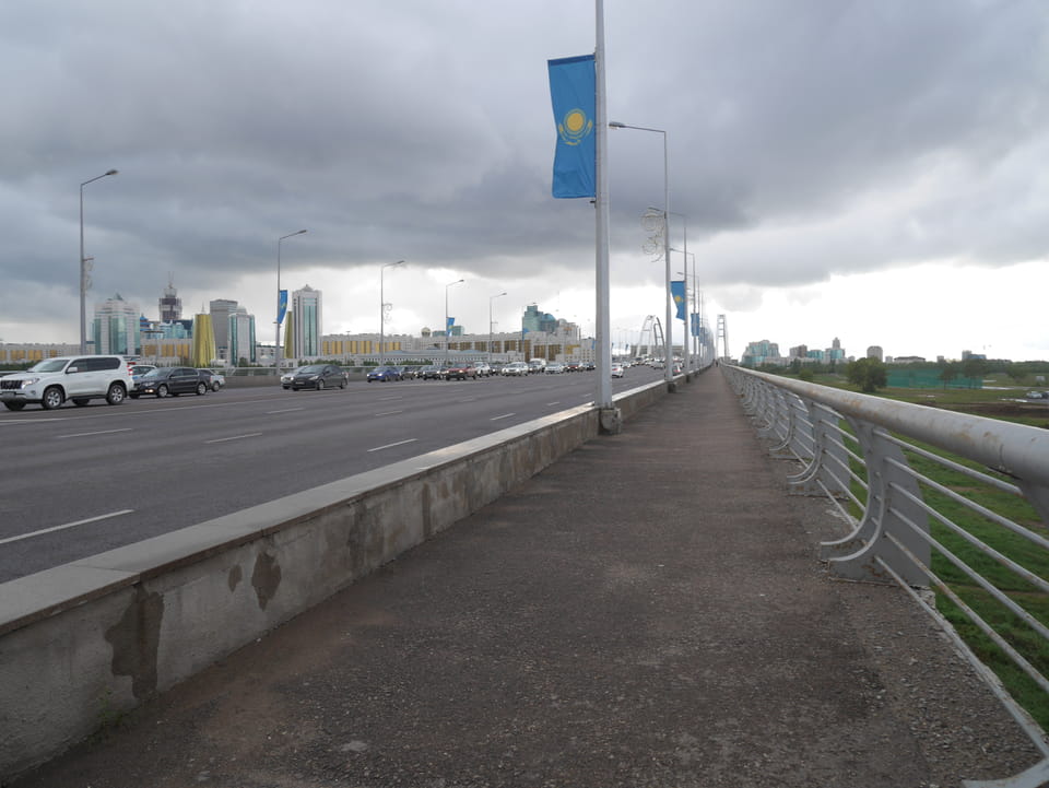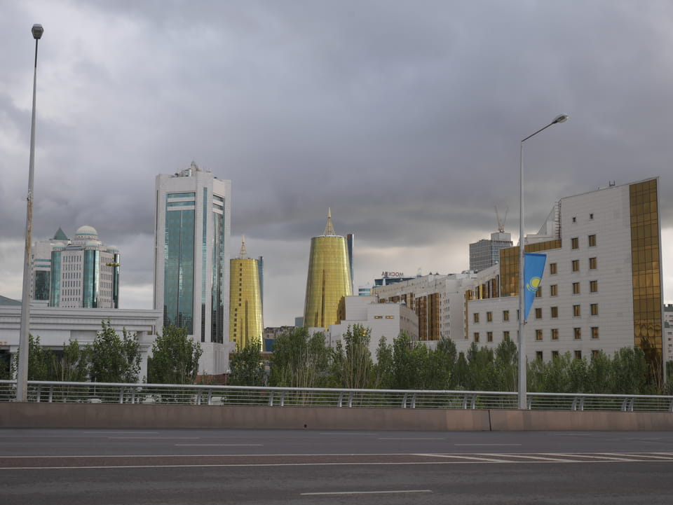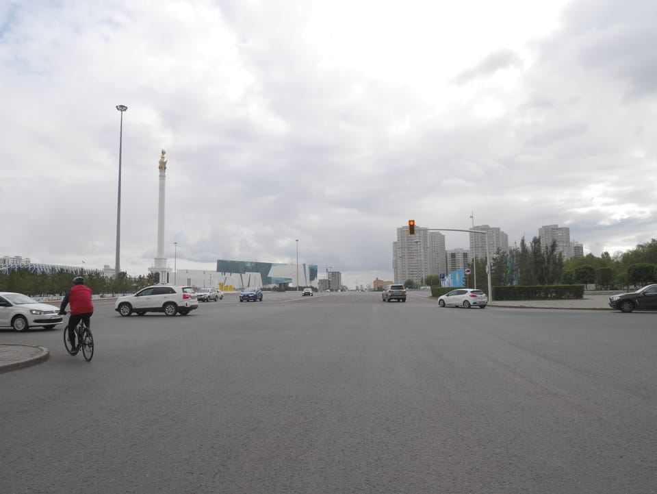 In der Nähe der Pyramide stieg ich aus. Da waren auch gleich eine Moschee und weiter zum Museum futuristische Bauwerke zu sehen. Kustakademie oder so. Wenig Leute waren heute unterwegs, obwohl hier einige Apartmenthäuser gebaut wurden. Astana macht eben einen zu modernen Eindruck, ist eben bisher nur eine politische Hauptstadt.