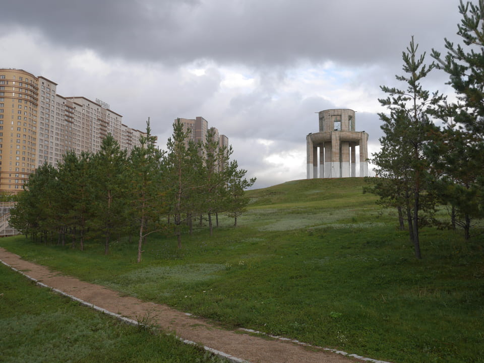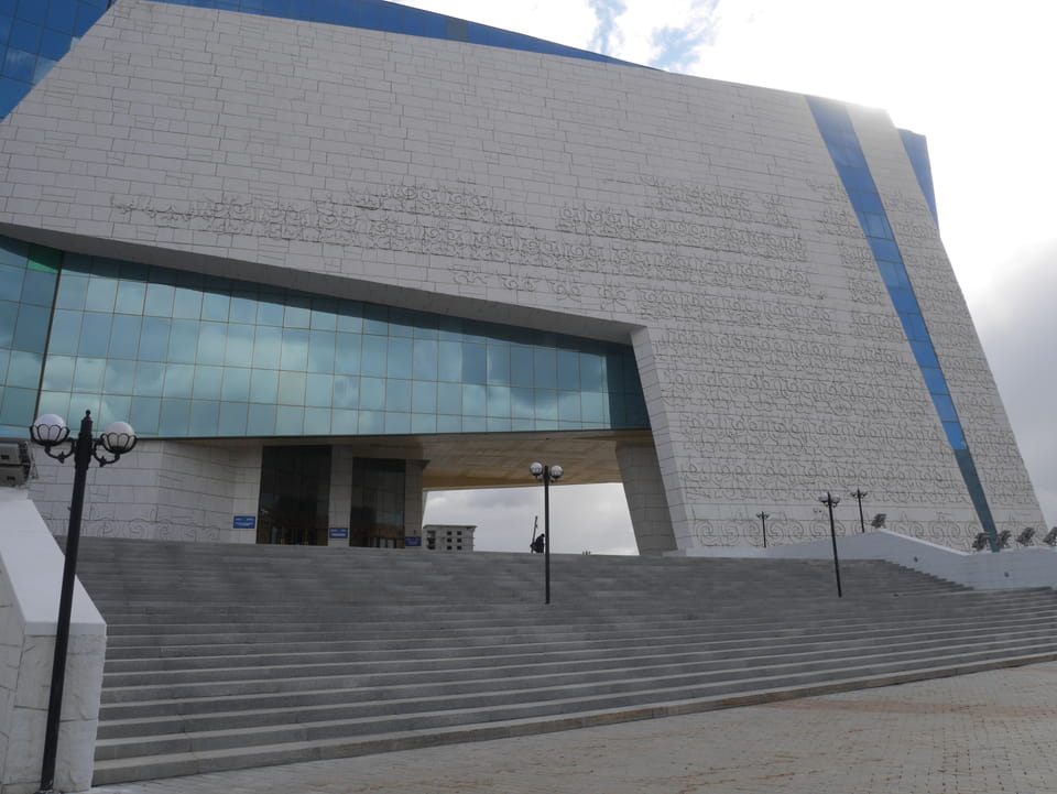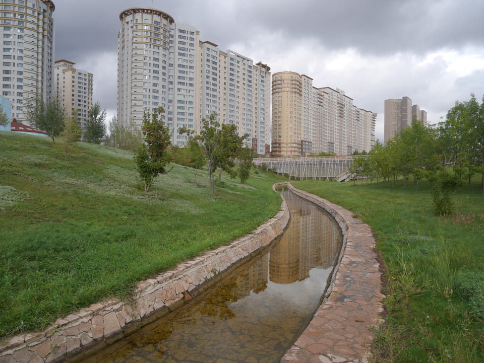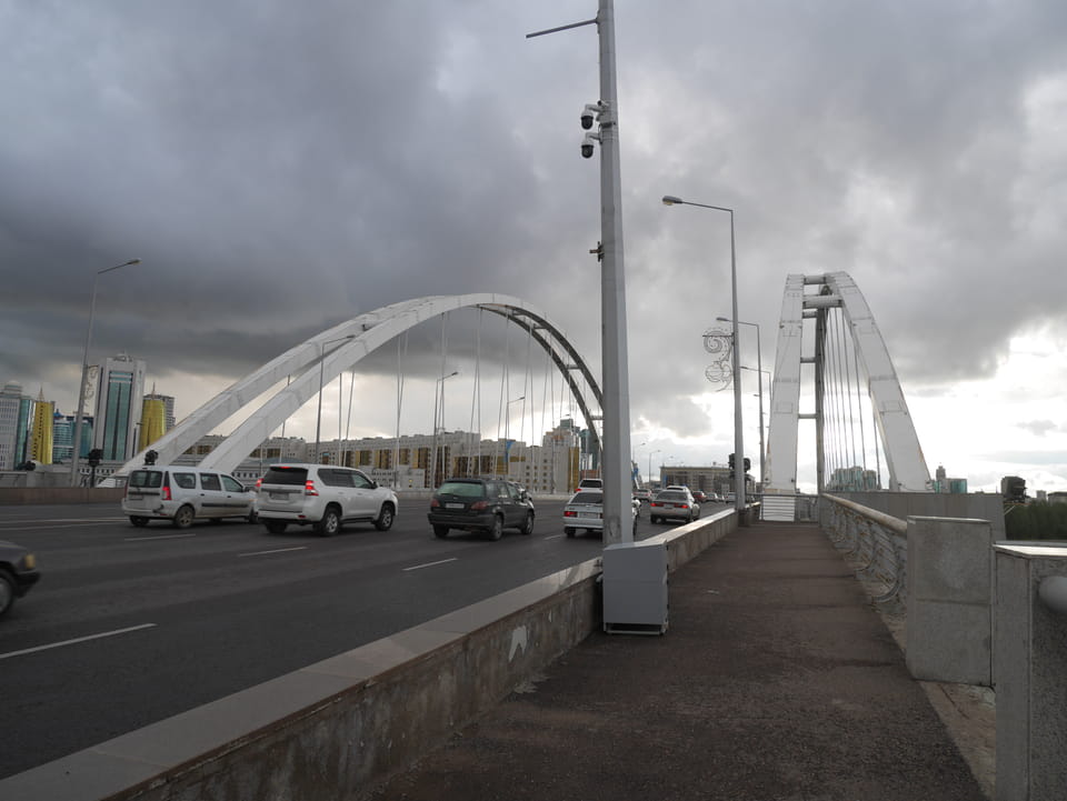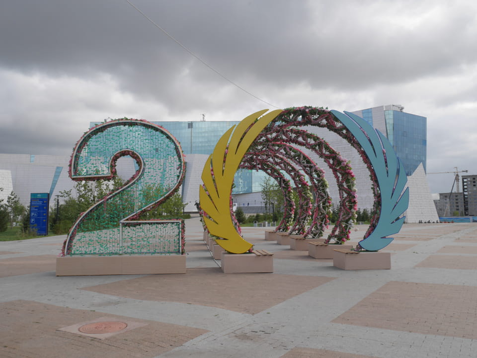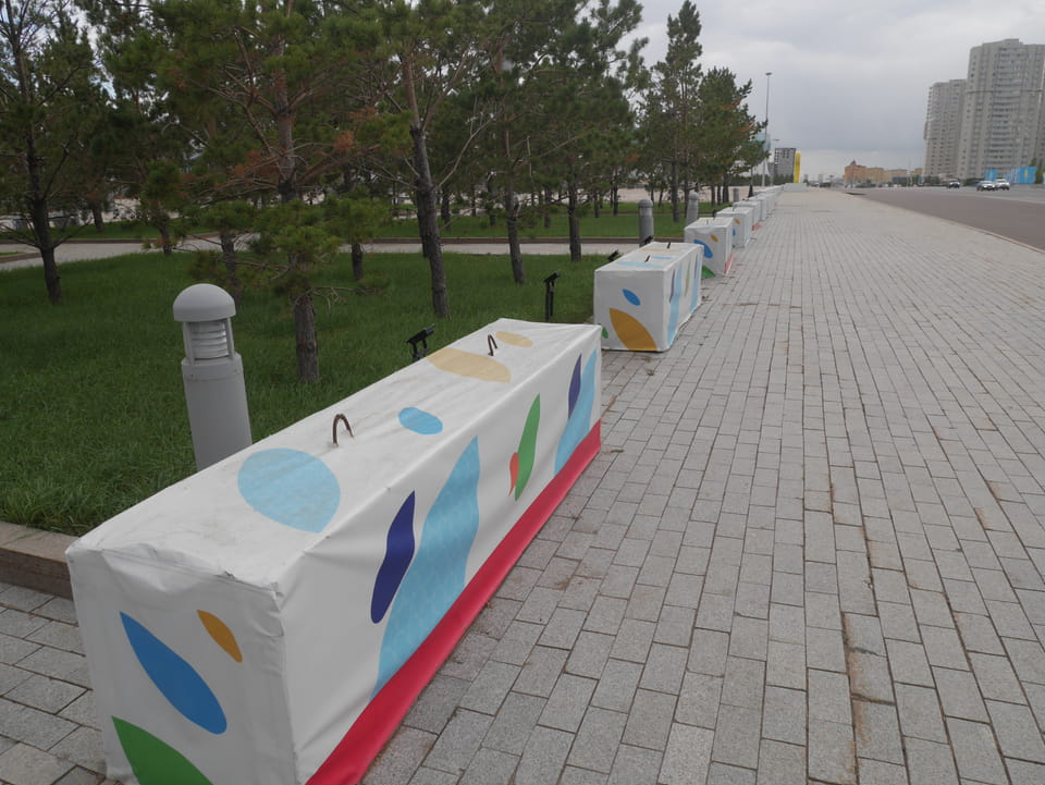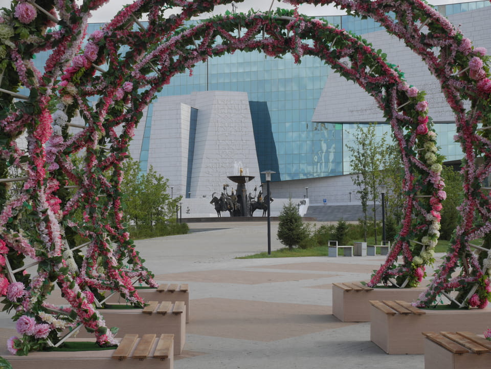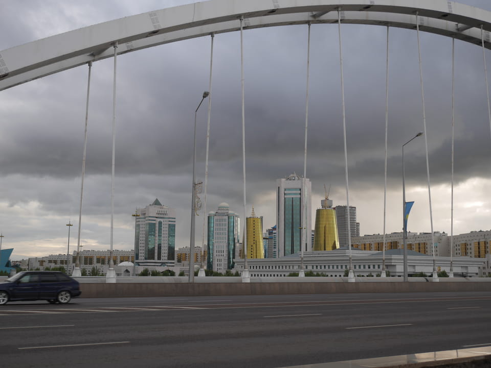 In der Nähe der Pyramide stieg ich aus. Da waren auch gleich eine Moschee und weiter zum Museum futuristische Bauwerke zu sehen. Kustakademie oder so. Wenig Leute waren heute unterwegs, obwohl hier einige Apartmenthäuser gebaut wurden. Astana macht eben einen zu modernen Eindruck, ist eben bisher nur eine politische Hauptstadt.
