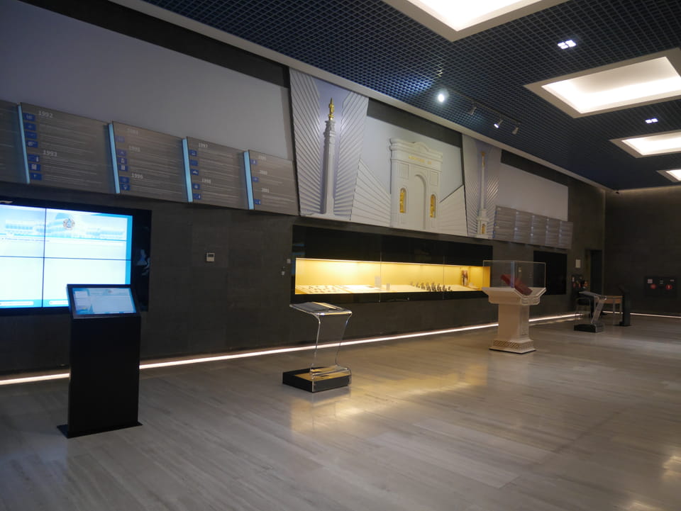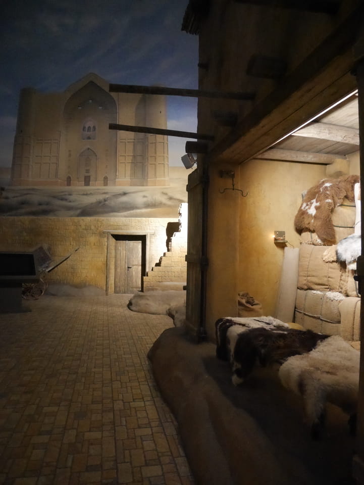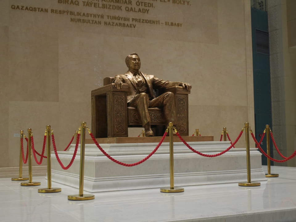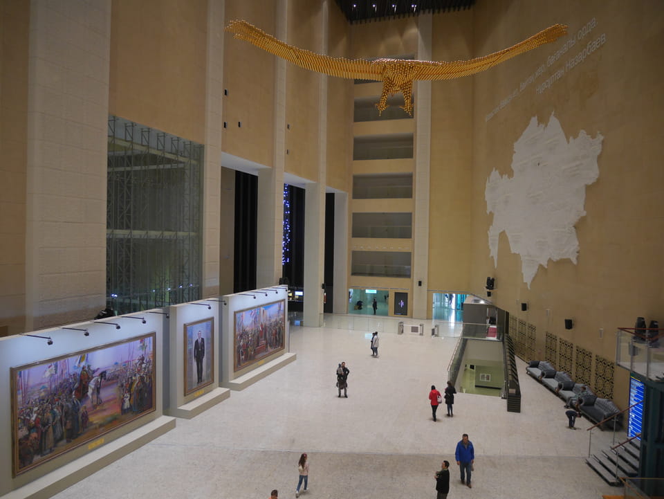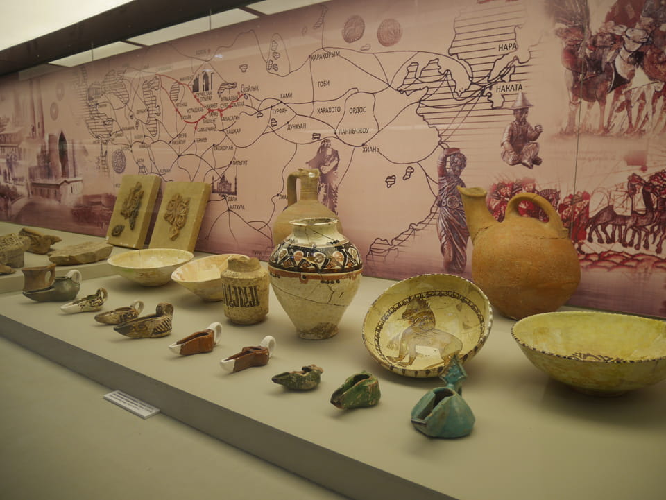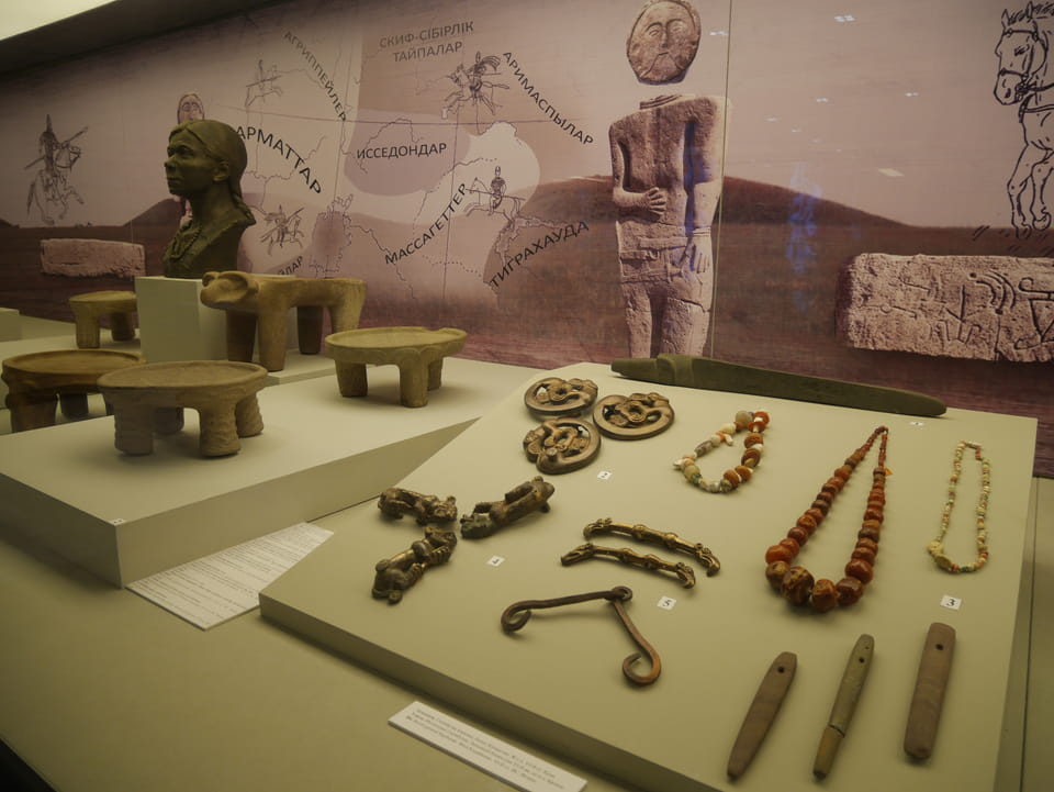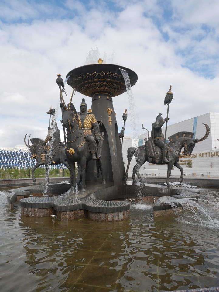 Ich schaute mir alles an. Das Volk der Kasachen mit den ganzen Stämmen wurde seit Stein oder Bronzezeit gut dargestellt. Das weite Land hatte auch einige „Horden“, die mal mehr und weniger Macht hatten. Die Türken waren auch hier und am Ende die Russen halt. Dann flog alles auseinander und so weiter und so fort. Ich fand das alles ganz nett und kam gerade so zum Ende der ganzen Sache. Die Goldzimmer sah ich nicht, eben auch mangels Zeit und Tickets. Ich hatte genug gesehen, so richtig bleib in Museen bei mir nichts hängen. Das wichtigste Stück war wohl der pupurne Mantel des Khan, der über Generationen weitergegeben wurde. Ansonsten waren es hier eben Nomaden, sodass größere Siedlungen spärlich die Zeit überstanden.
