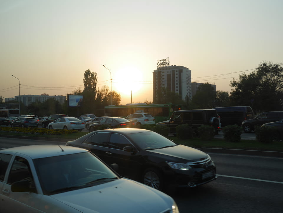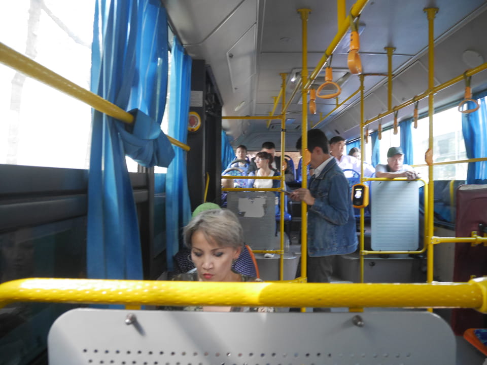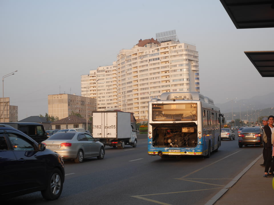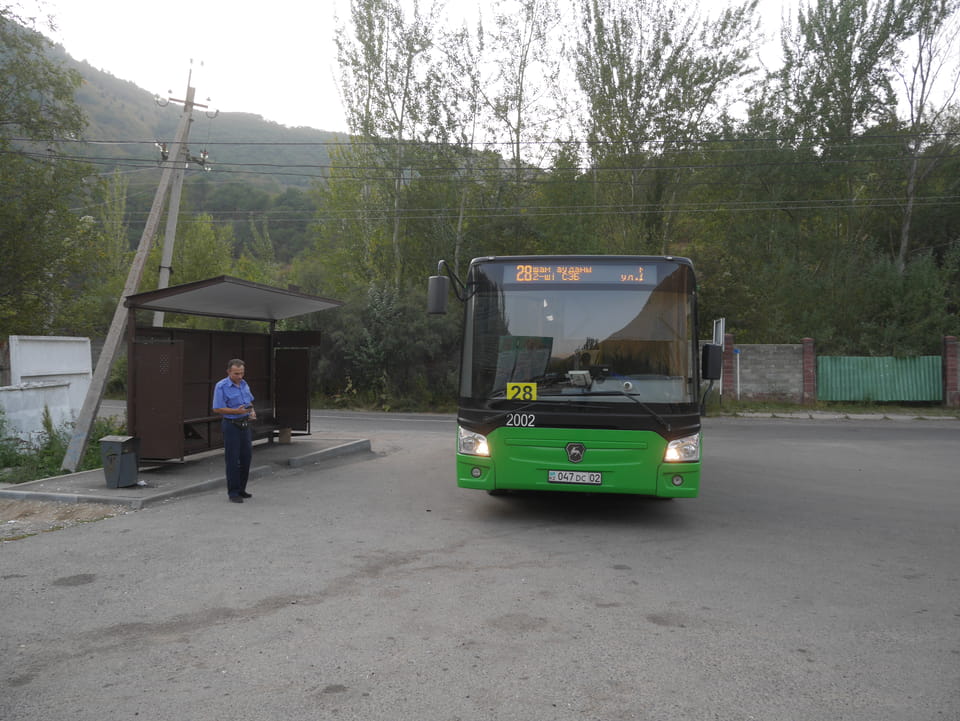 Trotzdem musste es los gehen. Meine Wäsche war trocken und die Hostelfrau empfahl, zum großen Almaty See zu fahren. Das wäre auch jetzt auch gegen 3 gut zu schaffen. Mit der 63 bis zur Endhaltestelle und ein junger Typ, der englisch sprach, zeigte mir wo ich hin solle.