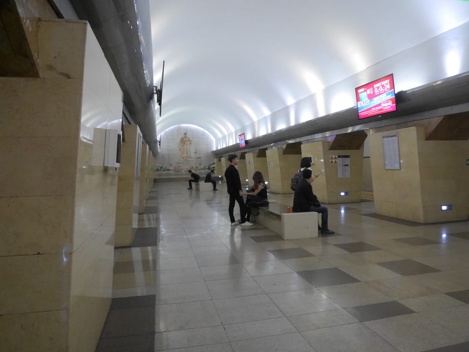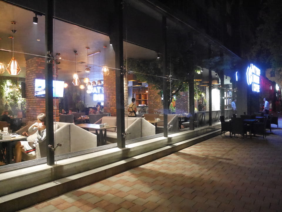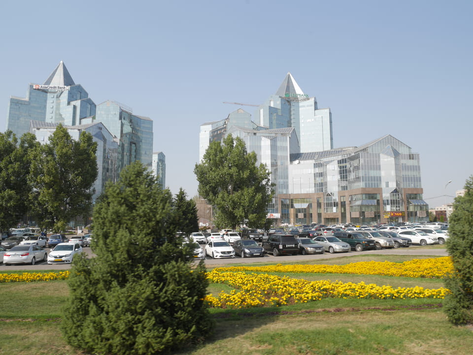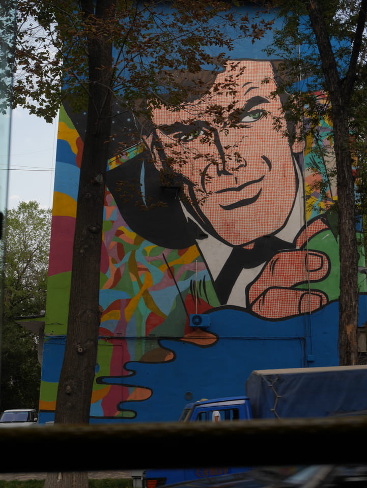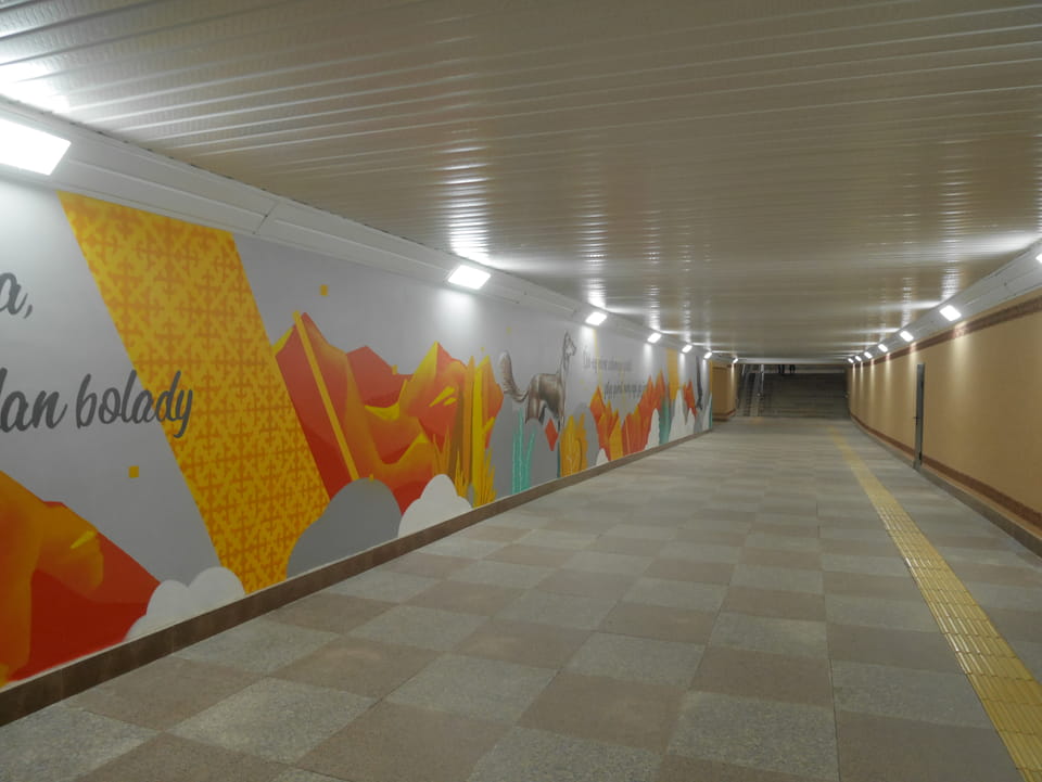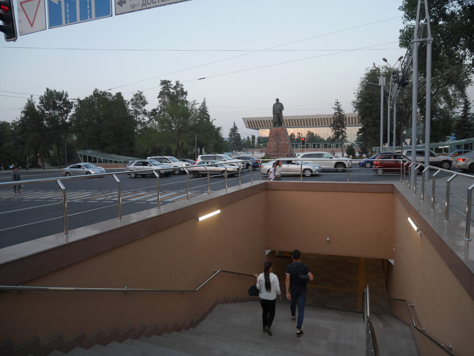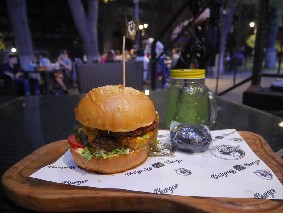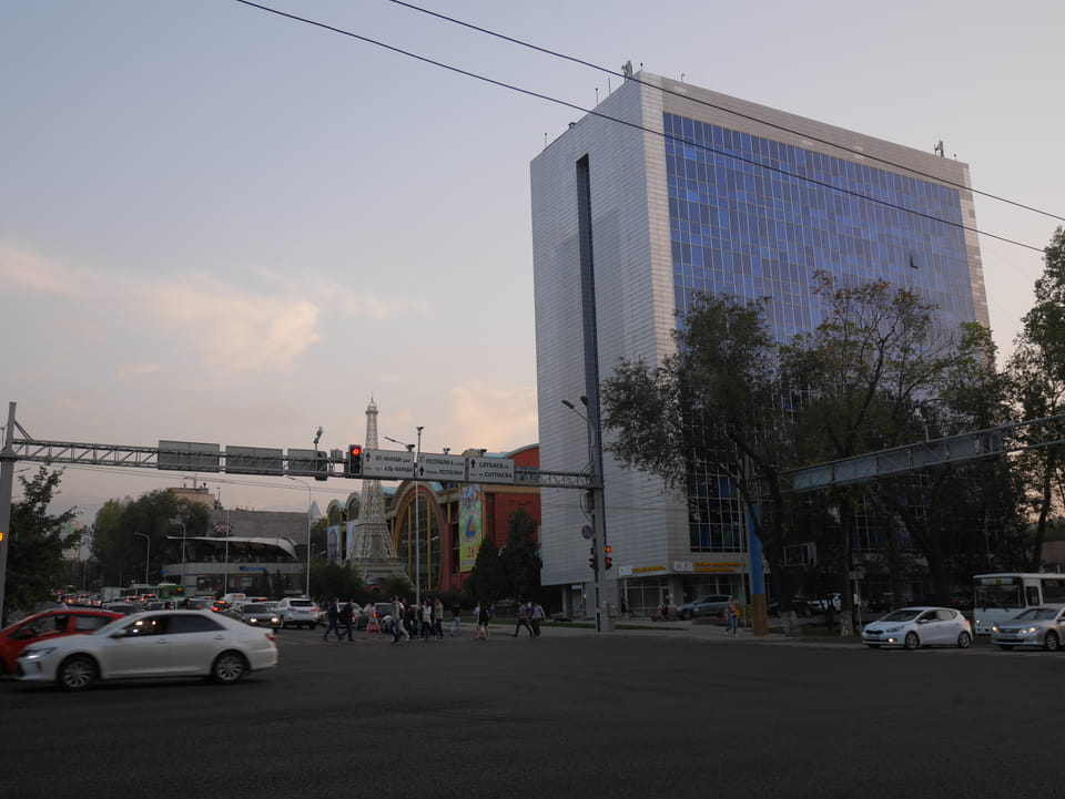 So fuhr ich dann auch wieder zurück, sah auf dem Weg zur Metro die ganz ordentliche Restaurantdichte hier in Almaty. Mal zwei Stationen zu einer neuen Haltestelle und dann auch wieder essen – den Big Burger bei Batyroff Burger mit ’ner Kiwki Limo. Mit den 10% 3380 Tenge – also fast €8. Ich werde sehen, ob ich auch weiter südlich noch so gutes Essen bekomme.