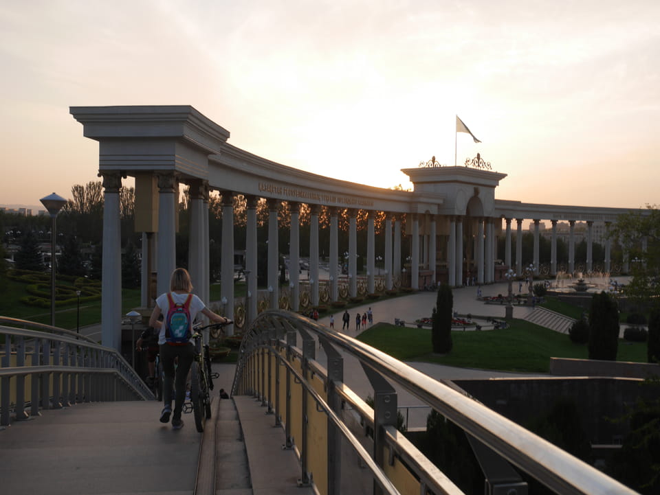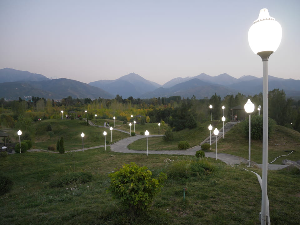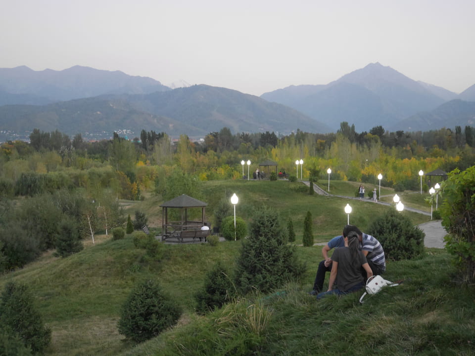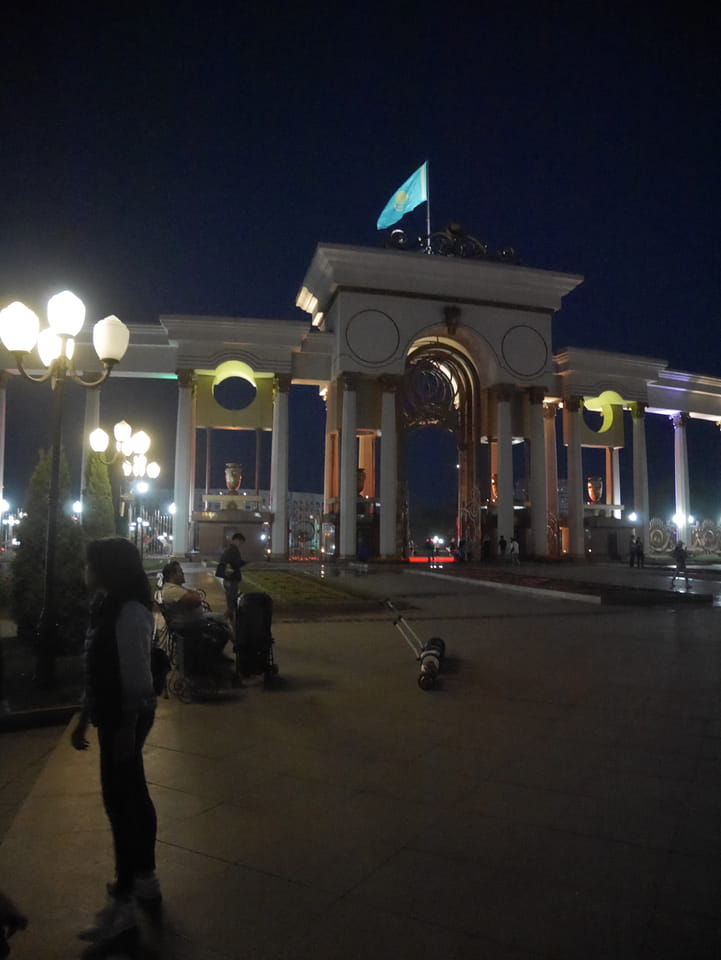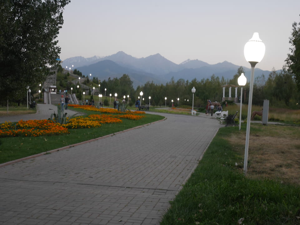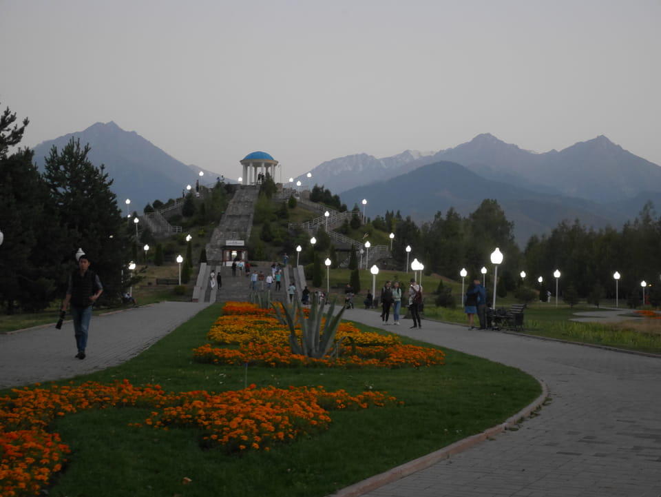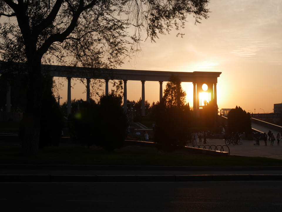 Es stand gerade ein Bus bereit, ich zahlte fix die 3000T und wir kamen mit der 28 zurück zum Präsident-Park. Ich konnte mit der einen Kasachin einiges Bereden, Instagramm und Länder. Sie studierte in Spanien und kannte auch Deutsche, war schon etwas in Europa unterwegs. Sie luden mich ein, noch eine Runde im Park zu laufen. Jetzt zum Sonnenuntergang hatte ich nicht besseres vor.