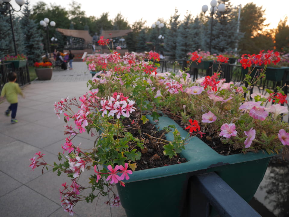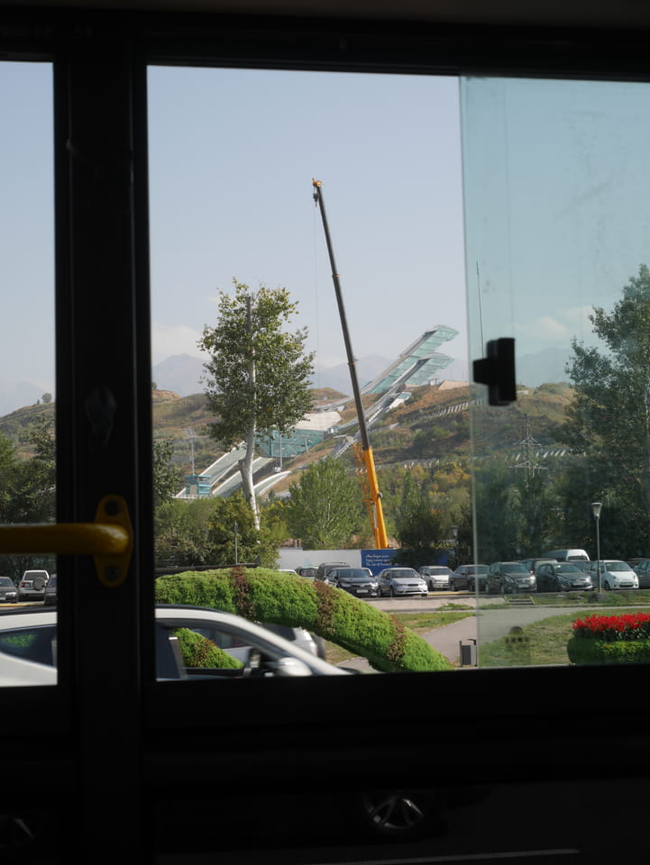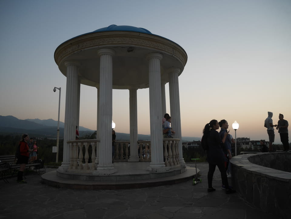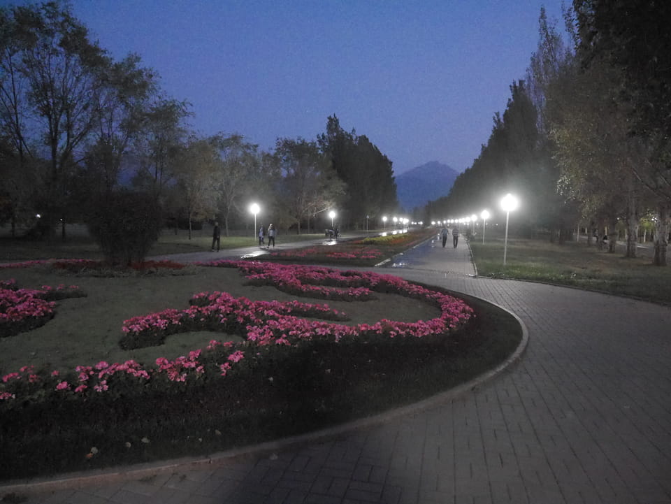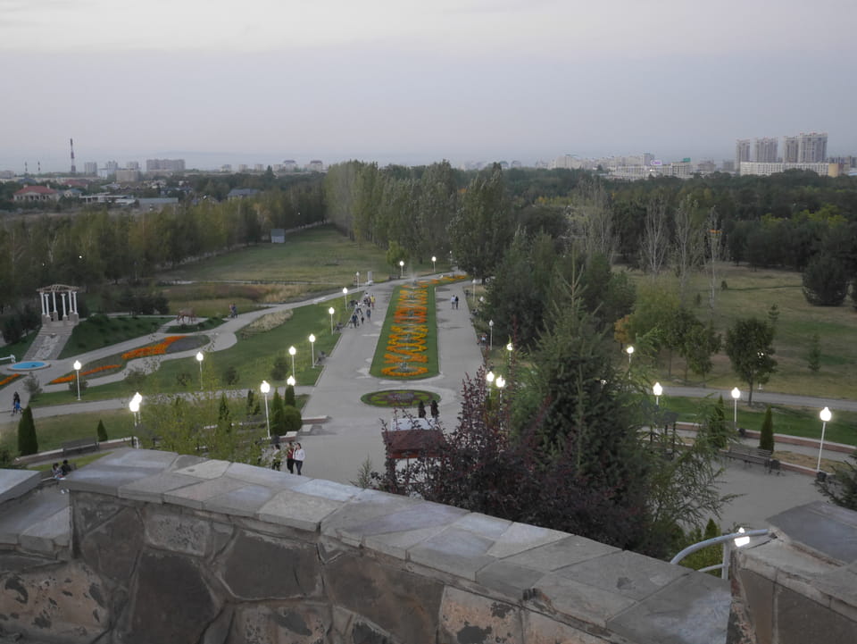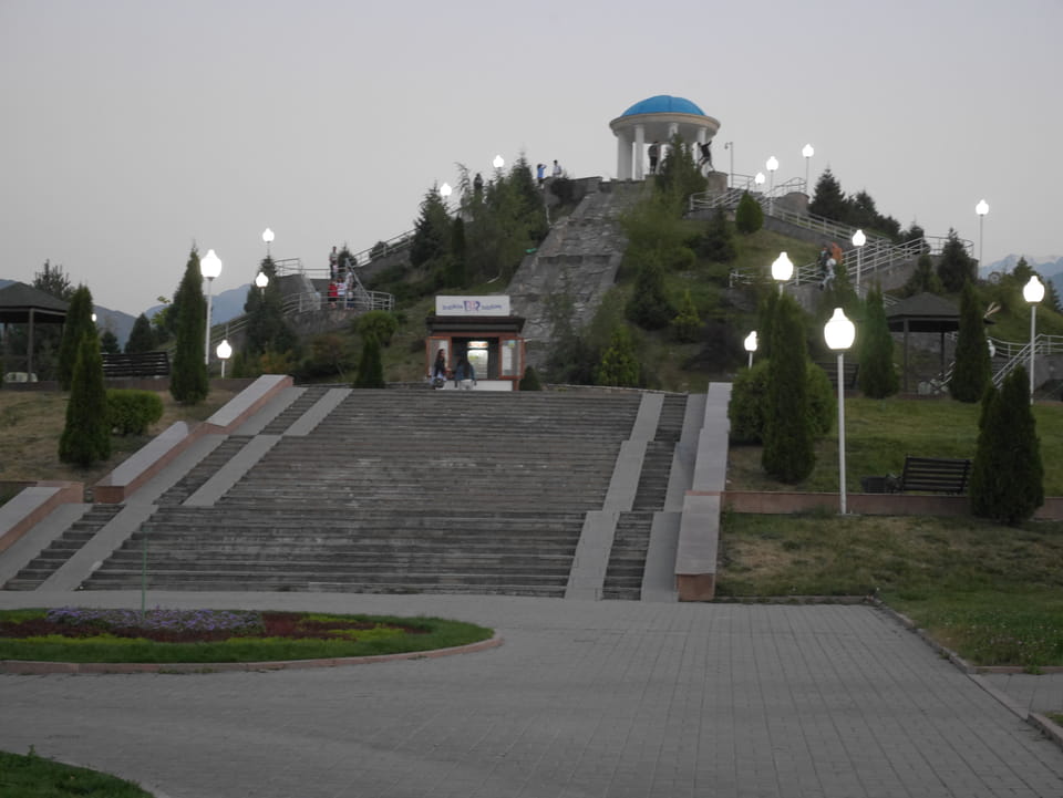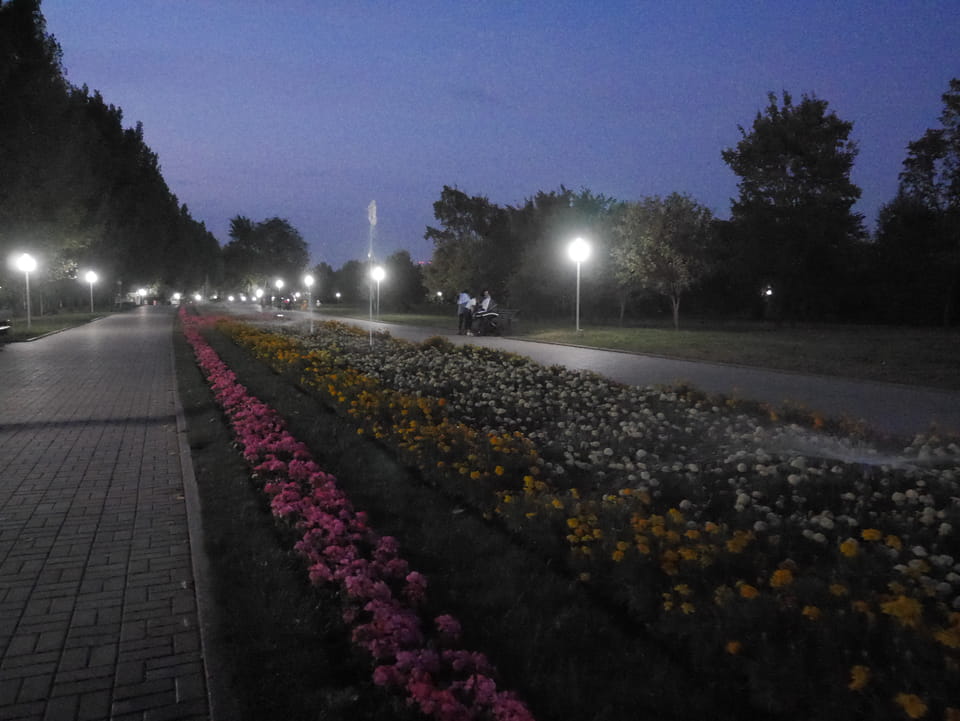 Es stand gerade ein Bus bereit, ich zahlte fix die 3000T und wir kamen mit der 28 zurück zum Präsident-Park. Ich konnte mit der einen Kasachin einiges Bereden, Instagramm und Länder. Sie studierte in Spanien und kannte auch Deutsche, war schon etwas in Europa unterwegs. Sie luden mich ein, noch eine Runde im Park zu laufen. Jetzt zum Sonnenuntergang hatte ich nicht besseres vor.