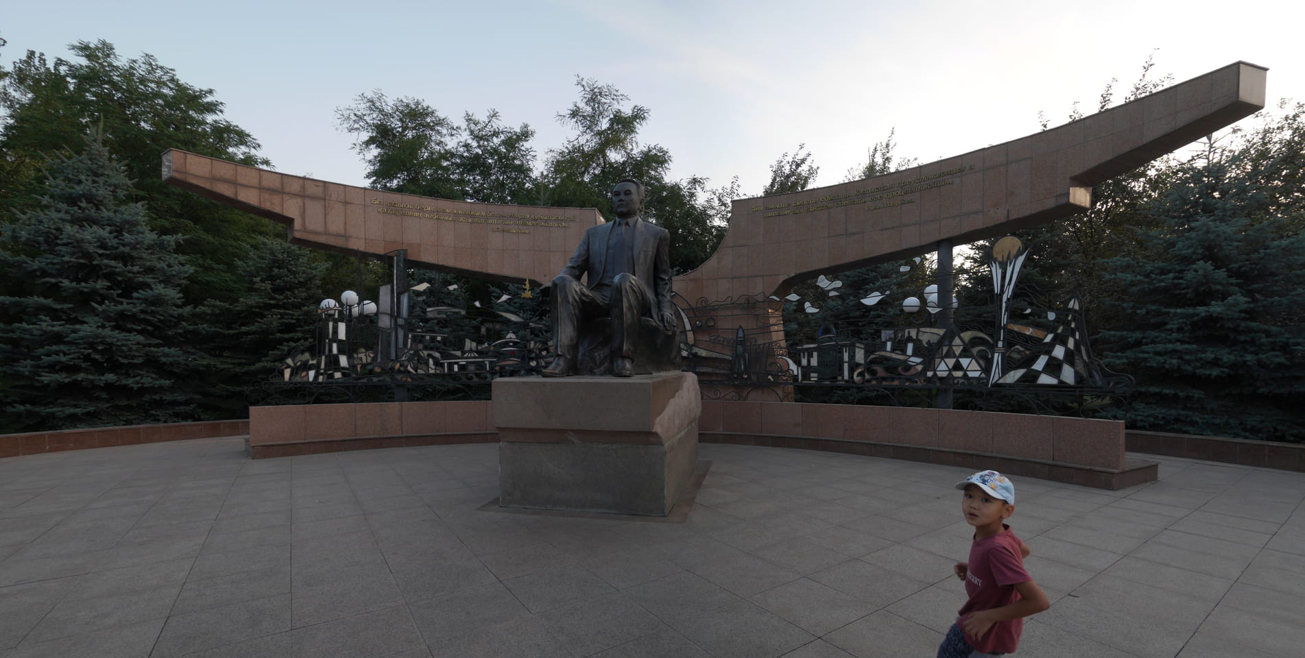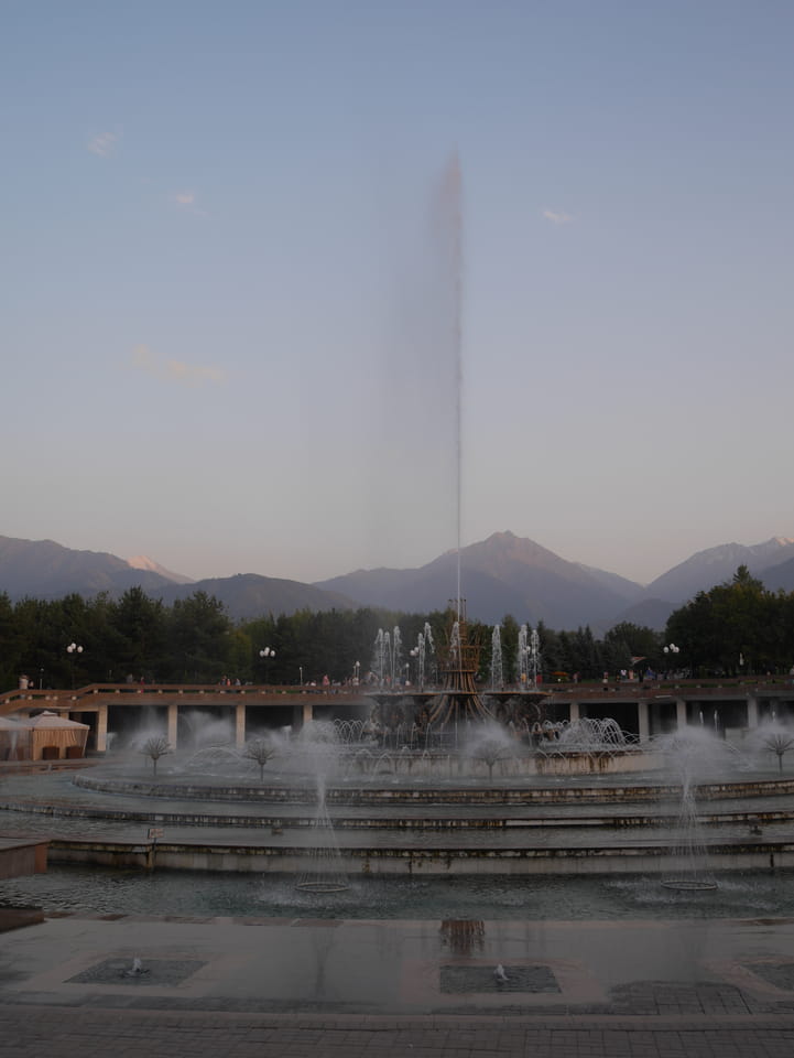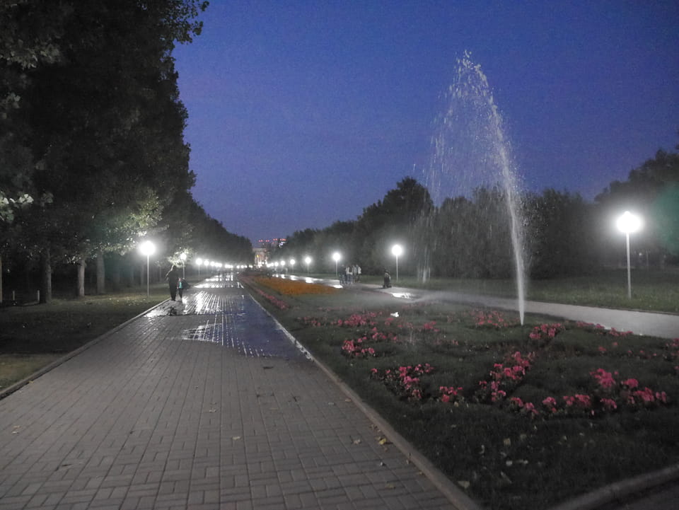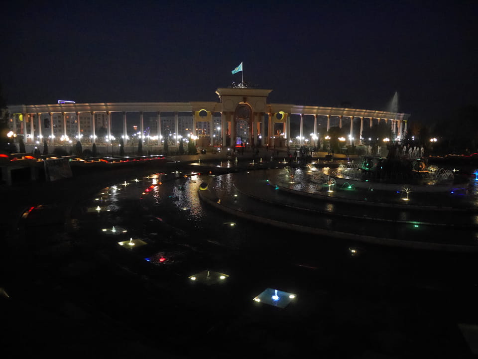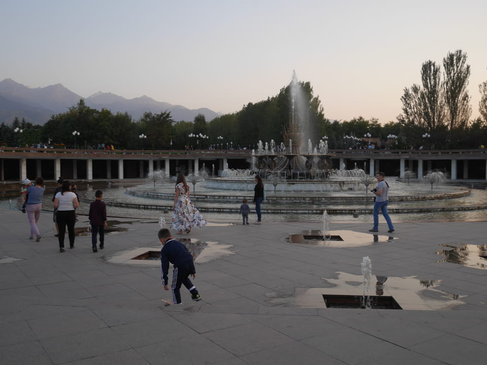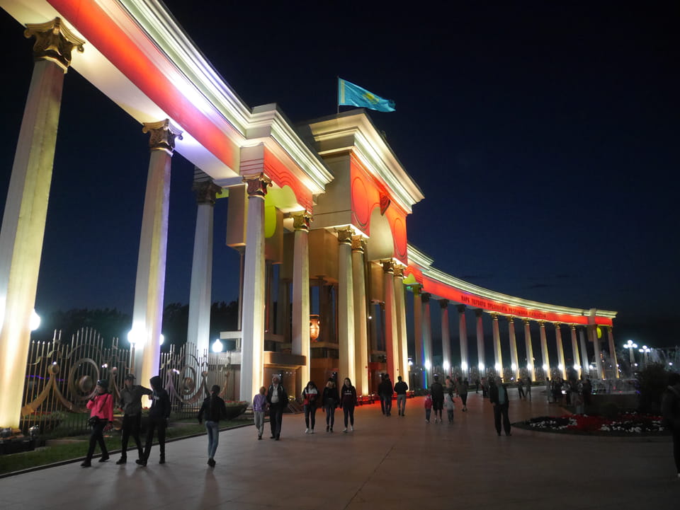 Der Präsident Park ist dem ersten und damit auch letzten / derzeitigen Präsidenten Kasachstans gewidmet. Die Kasachin sprach Korruption und ganze Misswirtschaft an. Ich wollte da nicht drüber reden, weil man als Tourist besser mit politischer Kritik spart. Die jungen Leute wollen eben auch Ex-Sovjetrepubliken verlassen. Man ist hier eben weit weg vom Schuss, auch wenn das Leben meiner Meinung nach schon OK ist. Na gut, wir spazierten herum, es gab wieder Photos, weswegen ich ja hier bin. Schnelle Verabschiedung dann und ich zurück in’s Hostel. Ich erfuhr von einem riesigen Eichhörnchen, was die Einheimischen als Geldverschwendung und Korruption auf die Palme brachte.