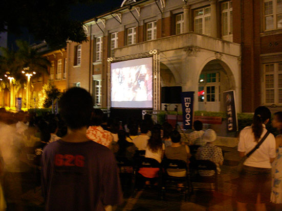 Ich erinnerte mich an ein Plakat vor dem Moca, was auf einen Event von 19:00-21:00 deutete. Mit der Metr zurück nach Zhongshan und zum Museum. Die Stühle waren gefüllt, es lief ein Mangafilm. Kostenloses Freiluftkino also. Ich verstand nichts von den Chinesischen und kannte den kriegerischen Samuraifilm auch nicht. In einem Restaurant nebenan bestellte ich irgendwas. Was es war, weiß ich nicht. Irgendeine Suppe mit kleinem Darmrollen. Sah fast nach Luftröhre aus. Schmeckte aber anders als die Lunge, damals in Neuseeland. Es wurde aufgegessen. Hunger eben.