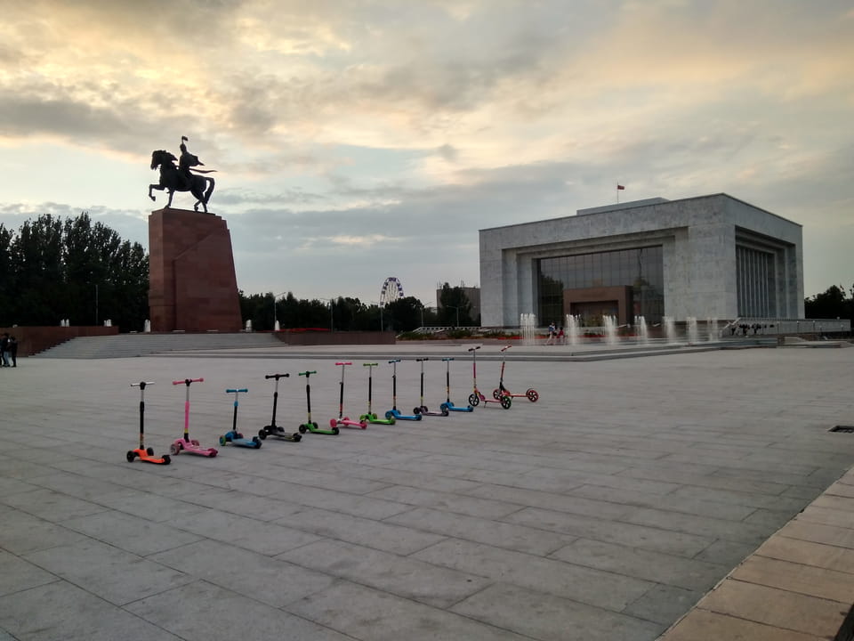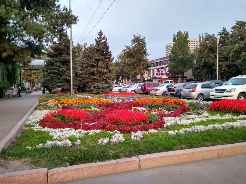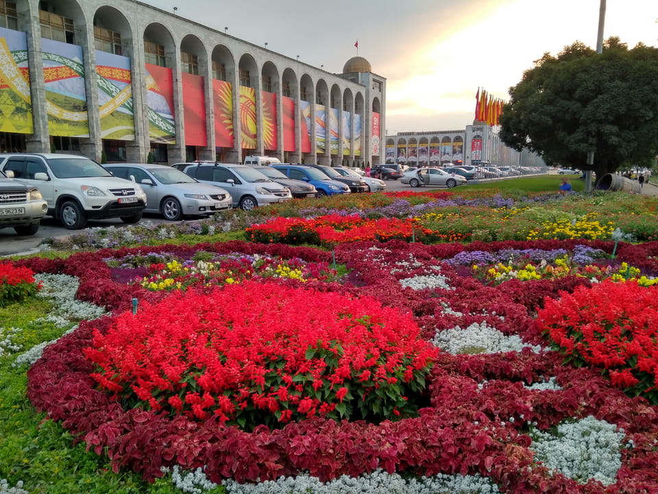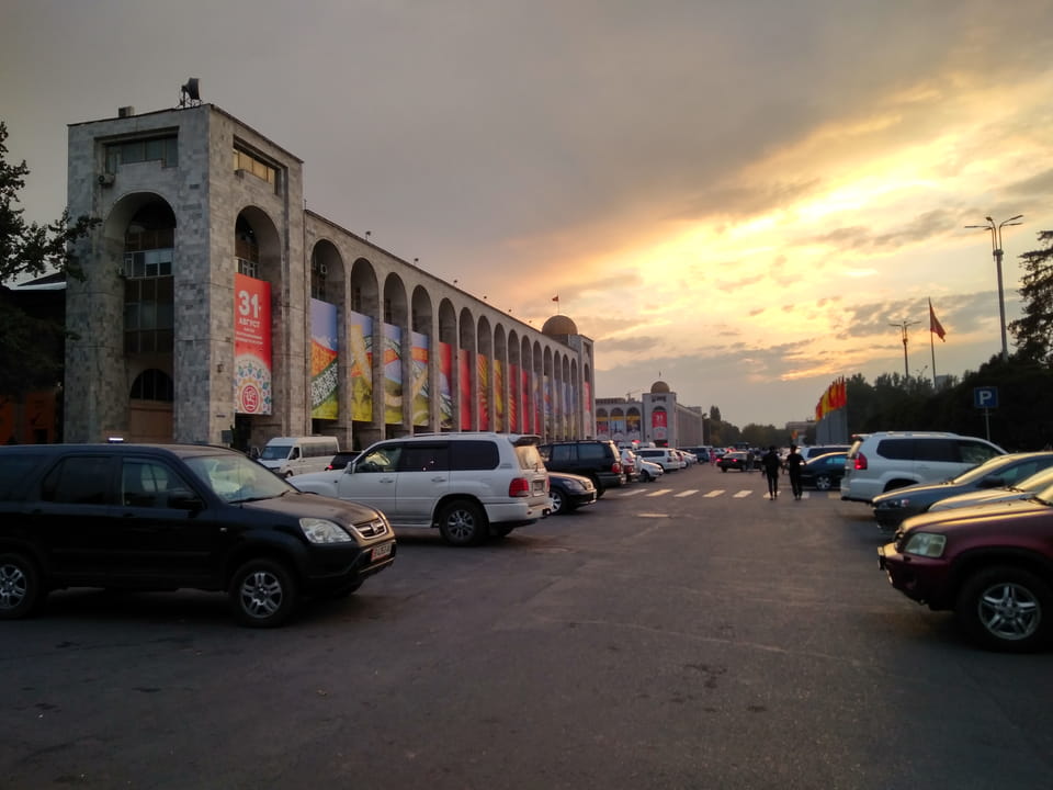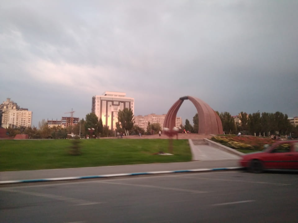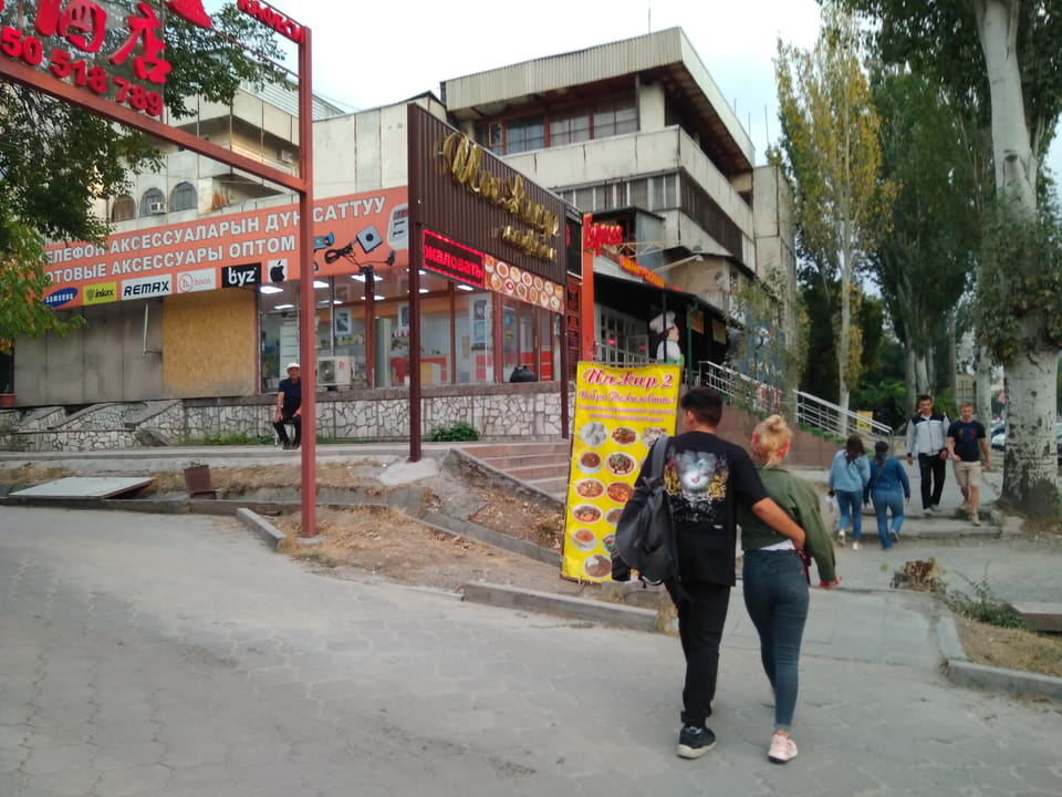 Bishkek war nicht so weit weg, doch die Fahrt brauchte auch eine Weile. Am ZUM wurde ich mit „Konjez“ und „Zentr Gorod“ bissel rausgeworfen, doch mein Hostel war noch gut 2,5km weiter weg. Na gut, ich ging raus, auch weil meine Taschen etwas zu viel für ’nen vollen Minibus waren.