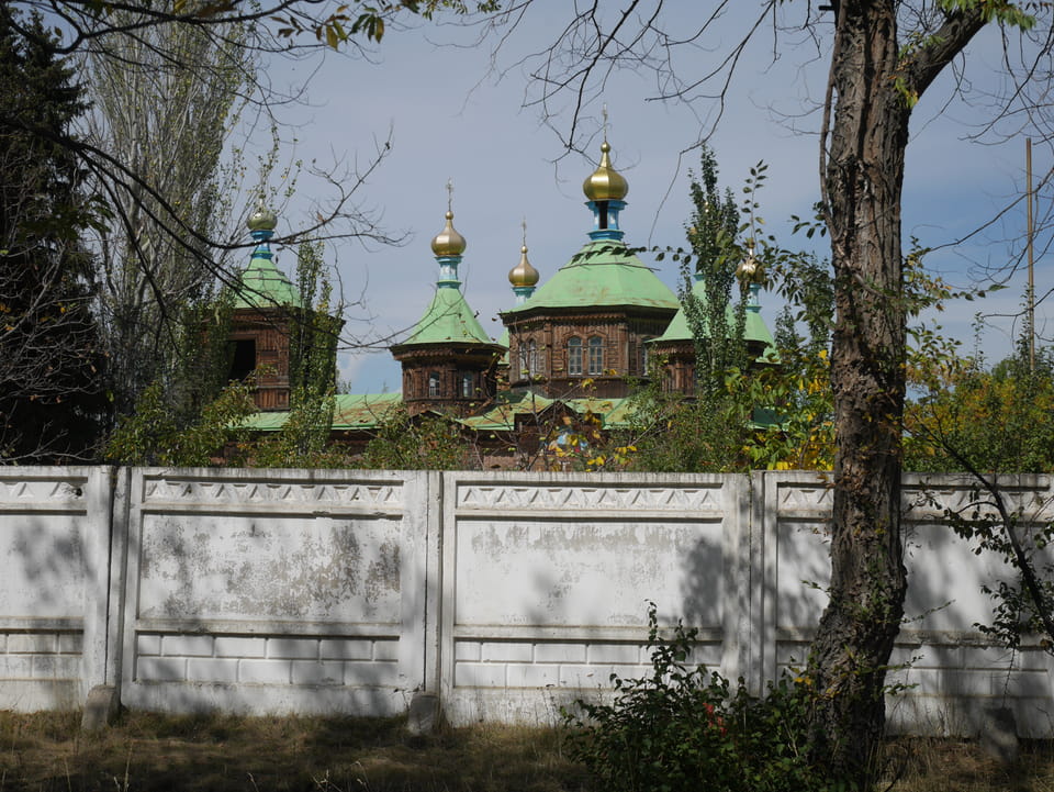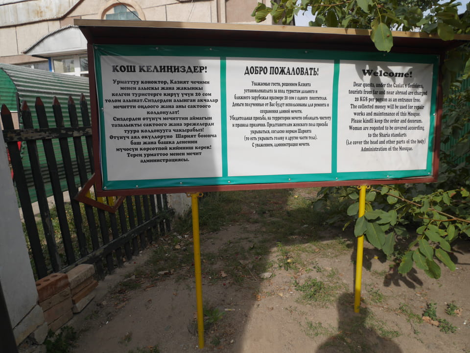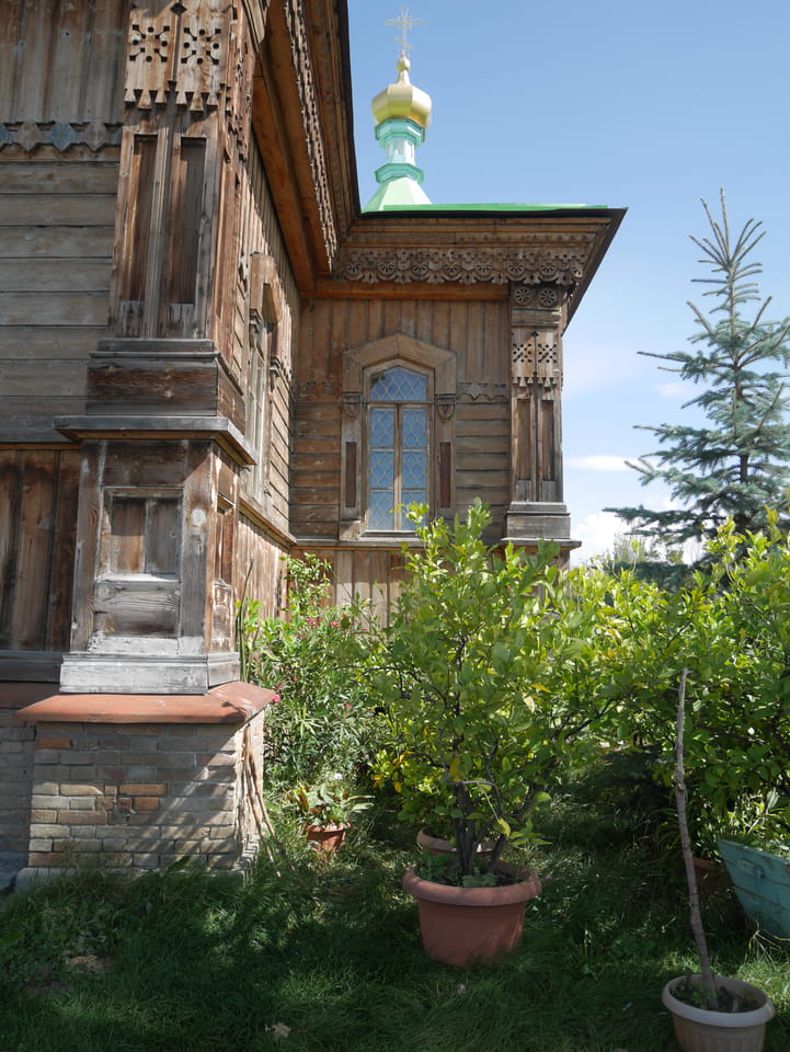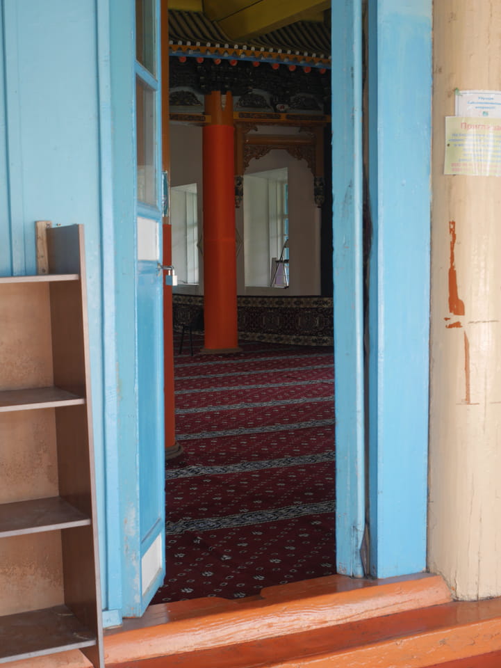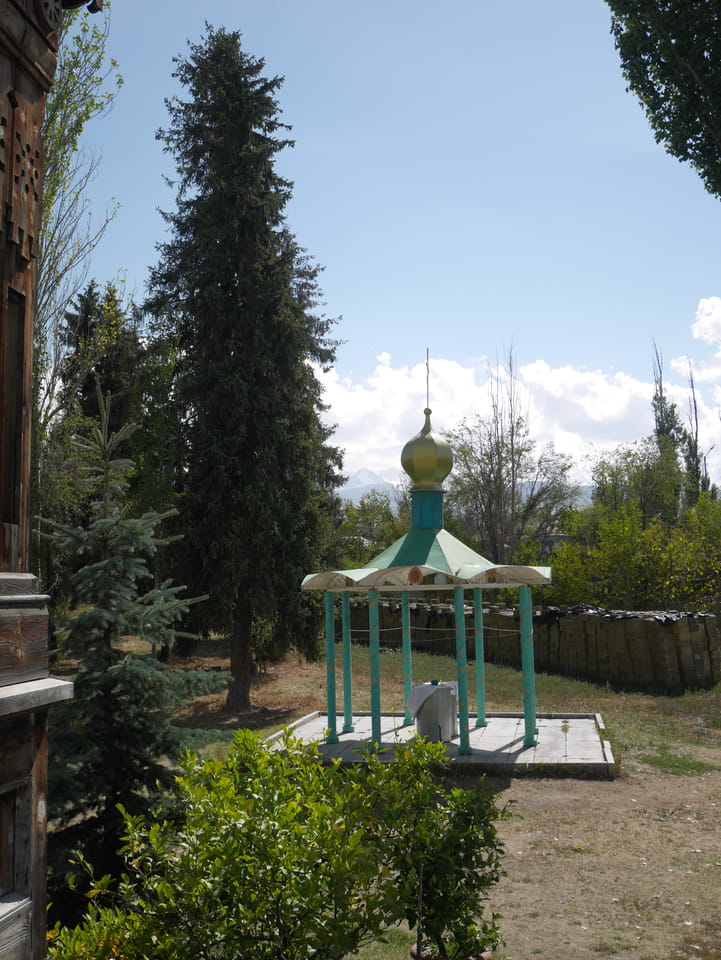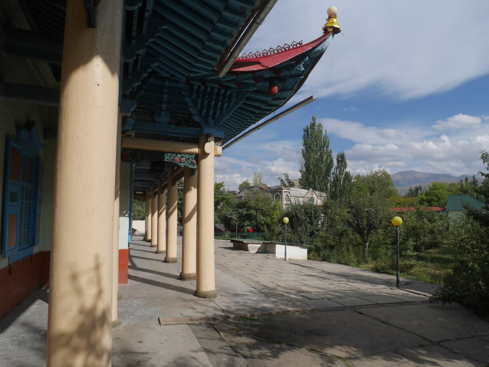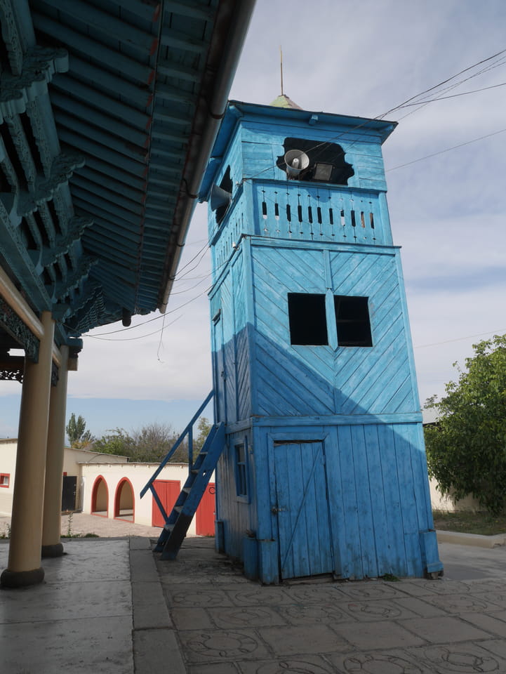 Die Runde ging weiter zur Moschee des Dungan Volkes. Einst aus China vetrieben, hatten sie hier eine Moscheen gebaut, die einem aiatischen Tempel ähnelt. Dann einfach ein schiefes Minarett noch hingezimmert und fertig war’s. Eintritt wollte man von Ausländern auch, wobei ich das eher aufdrängen musste.
