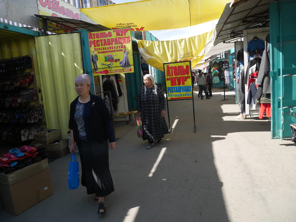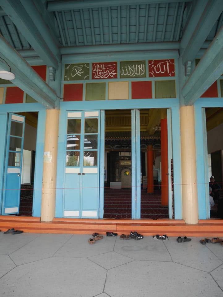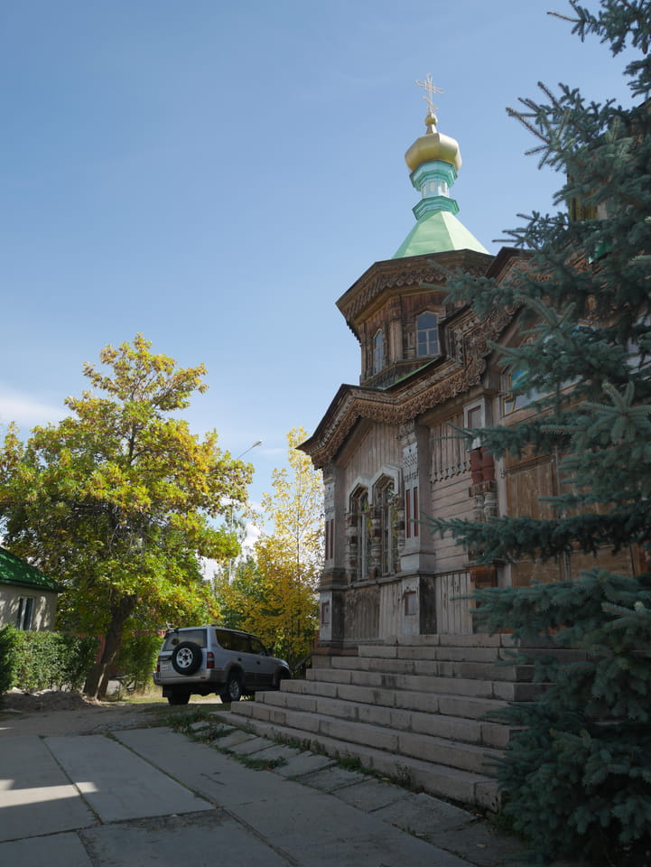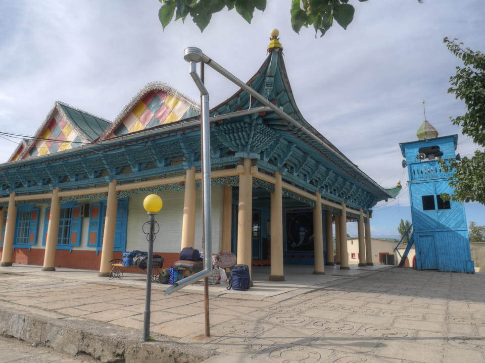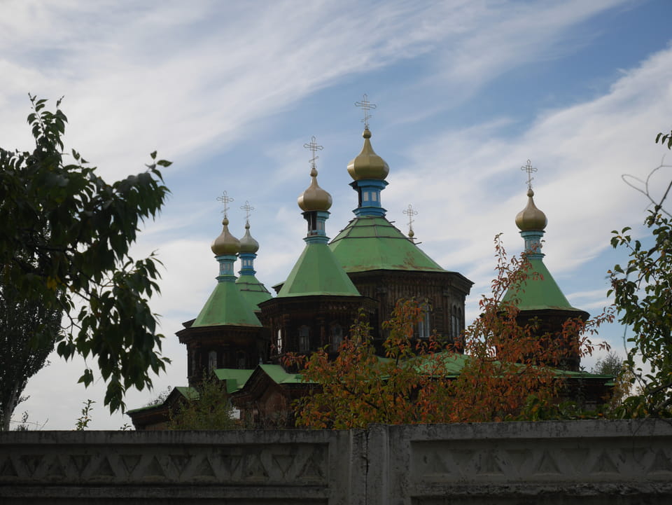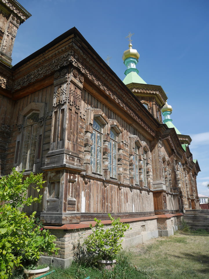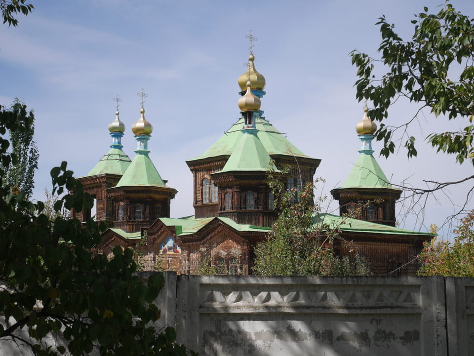 Die Runde ging weiter zur Moschee des Dungan Volkes. Einst aus China vetrieben, hatten sie hier eine Moscheen gebaut, die einem aiatischen Tempel ähnelt. Dann einfach ein schiefes Minarett noch hingezimmert und fertig war’s. Eintritt wollte man von Ausländern auch, wobei ich das eher aufdrängen musste.