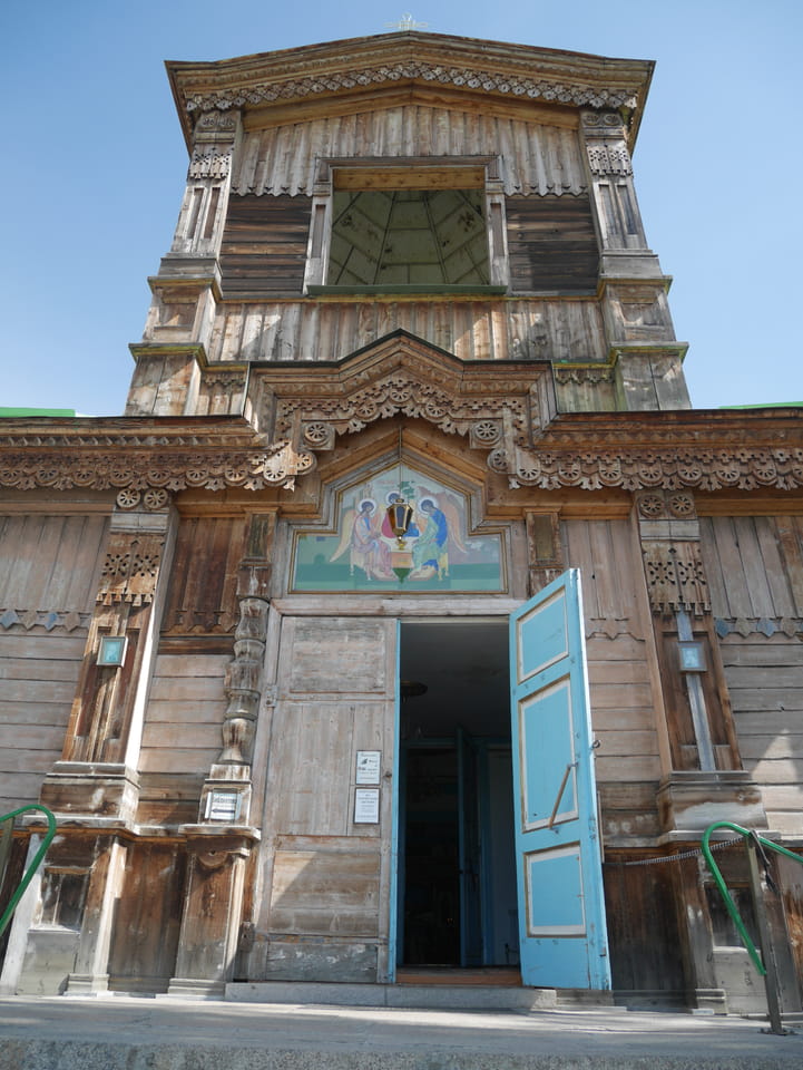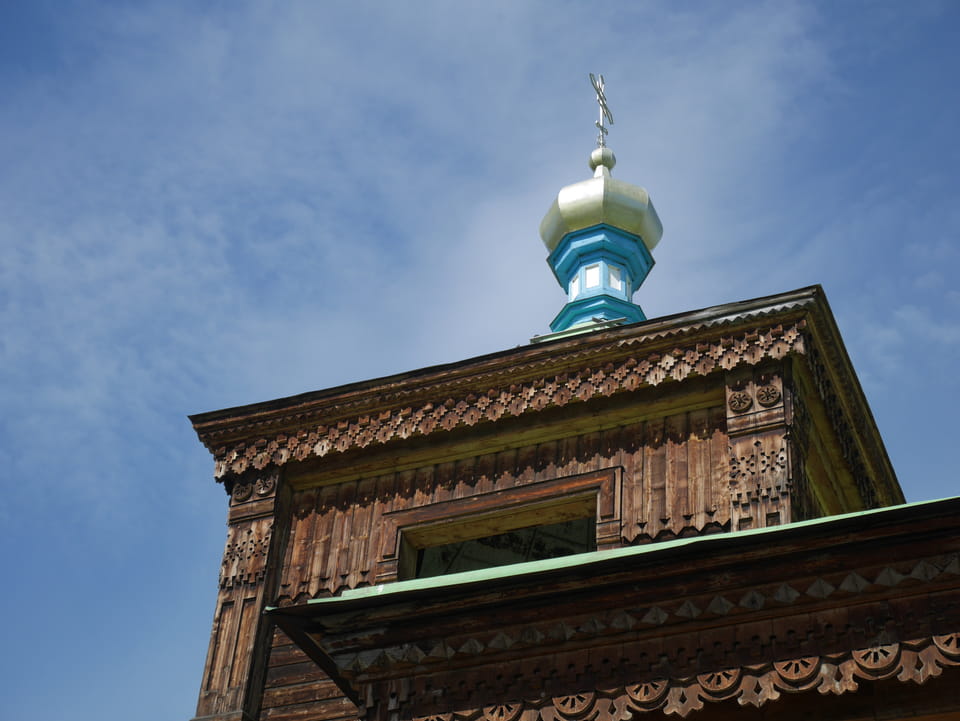 Der kleine Ort hier hat touristisch ein paar Sachen zu bieten. Da wäre zum ersten eine hölzerne Kirche, die gleich in Hostelnähe stand.