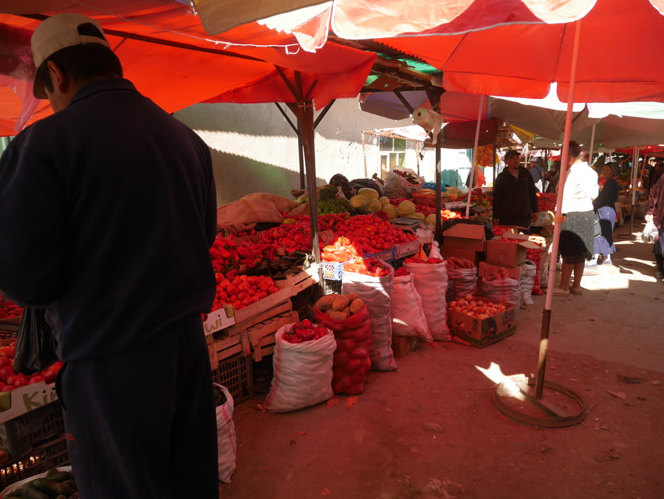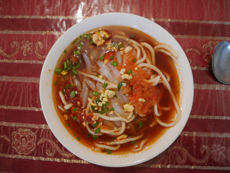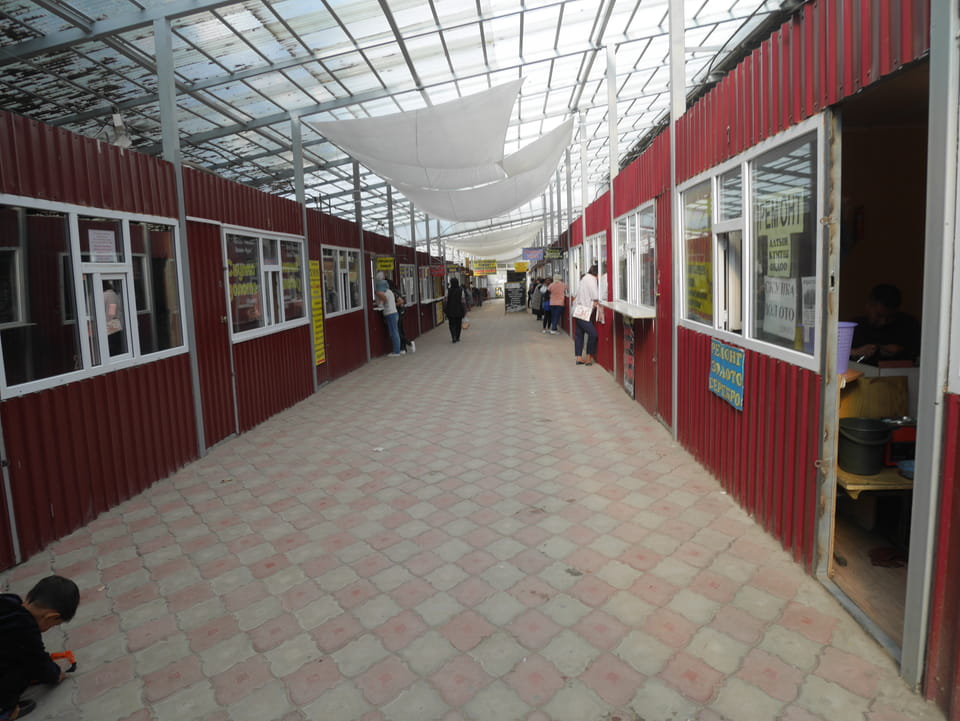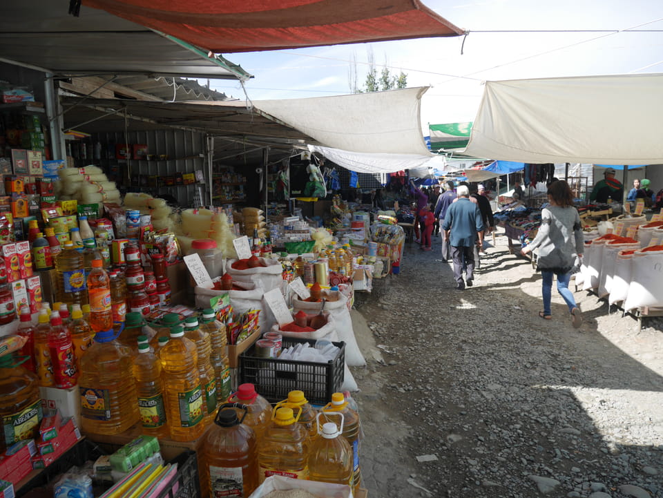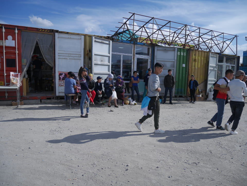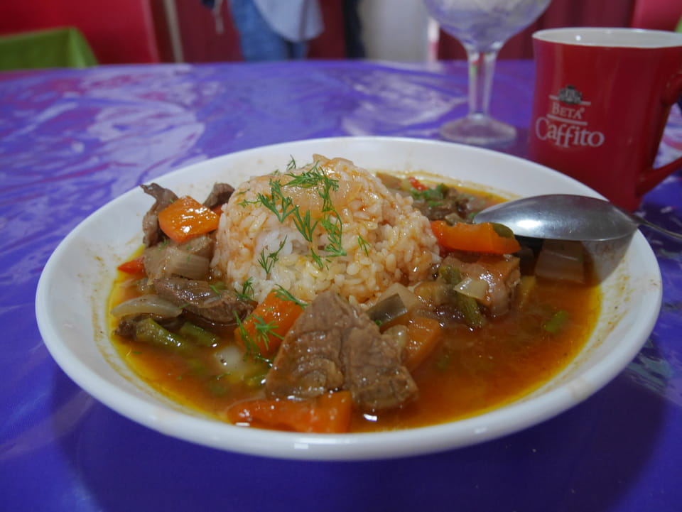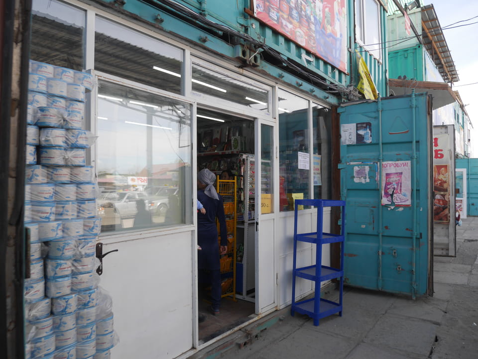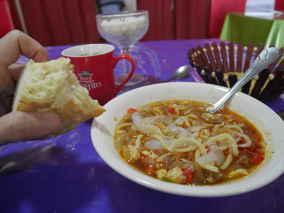 Der große Markt bestand auch hier meist aus Containern. Diese waren sogar in zwei Etagen aufeinander gestapelt. Ich kaufte ein paar Bananen und ging im Kafe Rajana was essen. Günstig ist’s hier.
