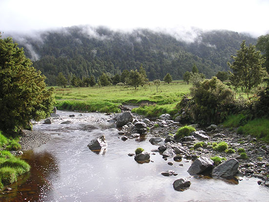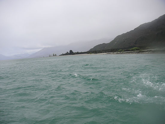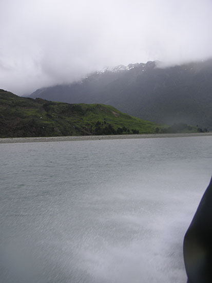 Danach ging es weiter nach Süden. Die Südinsel hat ja richtige Alpen und wir fuhren auch am Fox Gletscher vorbei. Zum Morgen war die Luft klar und die Wolken hingen weit oben in den Bergen fest. Das Wetter war ttypisch regnerisch aber es sollte besser werden. Gegen Mittag sagte der Fahrer bescheid, dass man Jetboat fahren kann. Da war ich natürlich dabei – und nur drei andere aus dem Bus. Wir bekamen wieder eine wasserdichte Jacke und Schwimmwesten und schon rörte der Motor. Sonenbrille nicht vergessen – aber nicht wegen Sonne. Mit einem Affenzahn heizten wir über den Fluss. Dann wurden Tiwsts also 360 Grad Drehungen gemacht. Wir fuhren so schnell – der Regen stach wie Nadeln ins Gesicht – es fülte sich heftiger wie Hagel an. Man konnte den Mund aufmachen und bekam was zu trinken. Der Fahrer machte auch richtig krasse Manöver. Im Slalom an versunkenen Bämen vorbei oder wie Kamikaze aufs Ufer zu, um dann ganz spät noch abzudrehen. Wirklich cool und es machte viel Spaß.