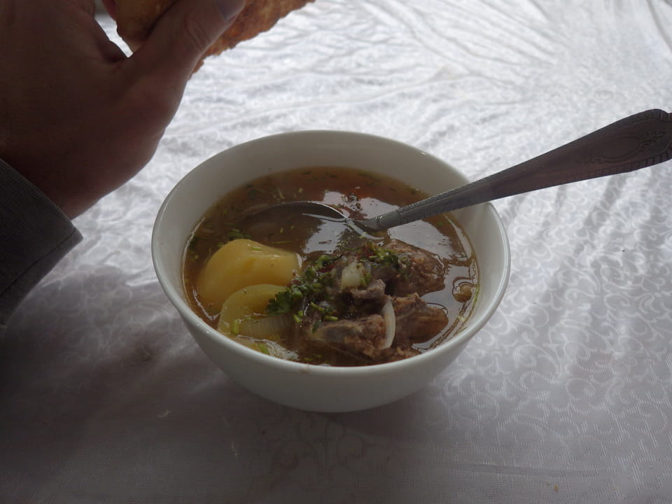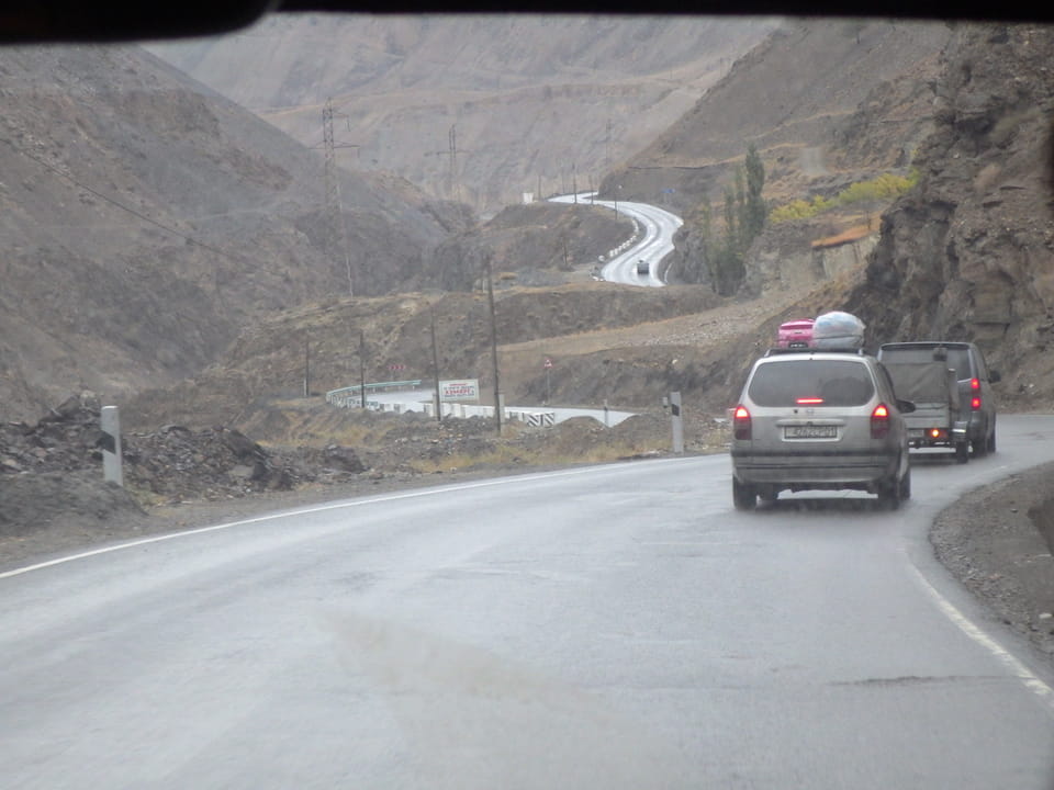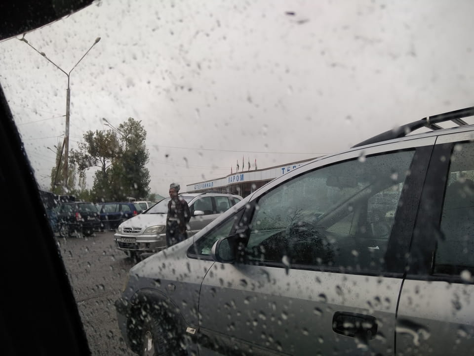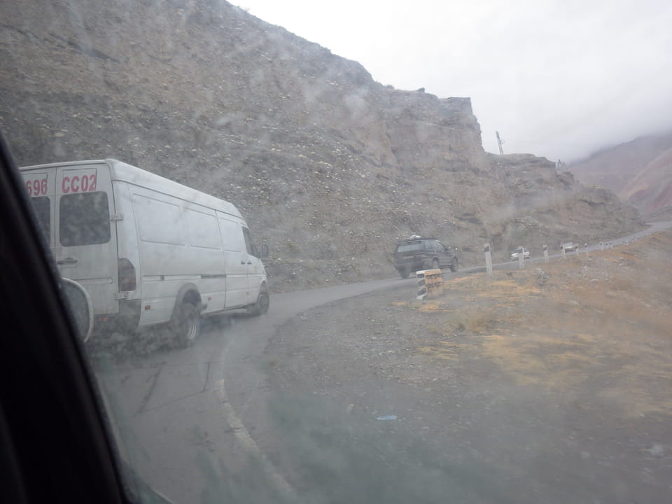 Visa Ausdruck dauerte wegen Internjet. Regenwetter, 100 Som Taxi, Treffe Salom Hostel besitzer im Regen wohl, dann nochmal in Panjakent. Extrem kalt, neblig auf dem Weg – ungeheiztes Restaurant für Suppe. Rede mit Belgiern, die Hike wegen Schnee abbrachen. Dusche warm – Nacht kalt