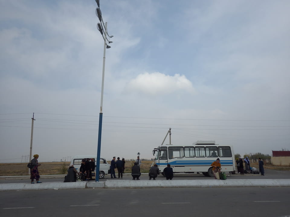 Trotz viel Schlaf heute nicht ausgeschlafen. Ich war leicht benommen und nahm mir Zeit mit dem Frühstück und Auschecken. Ein Taxi fuhr mich zu den Taxis Richtung Grenze. Es ging nach Usbekistan.